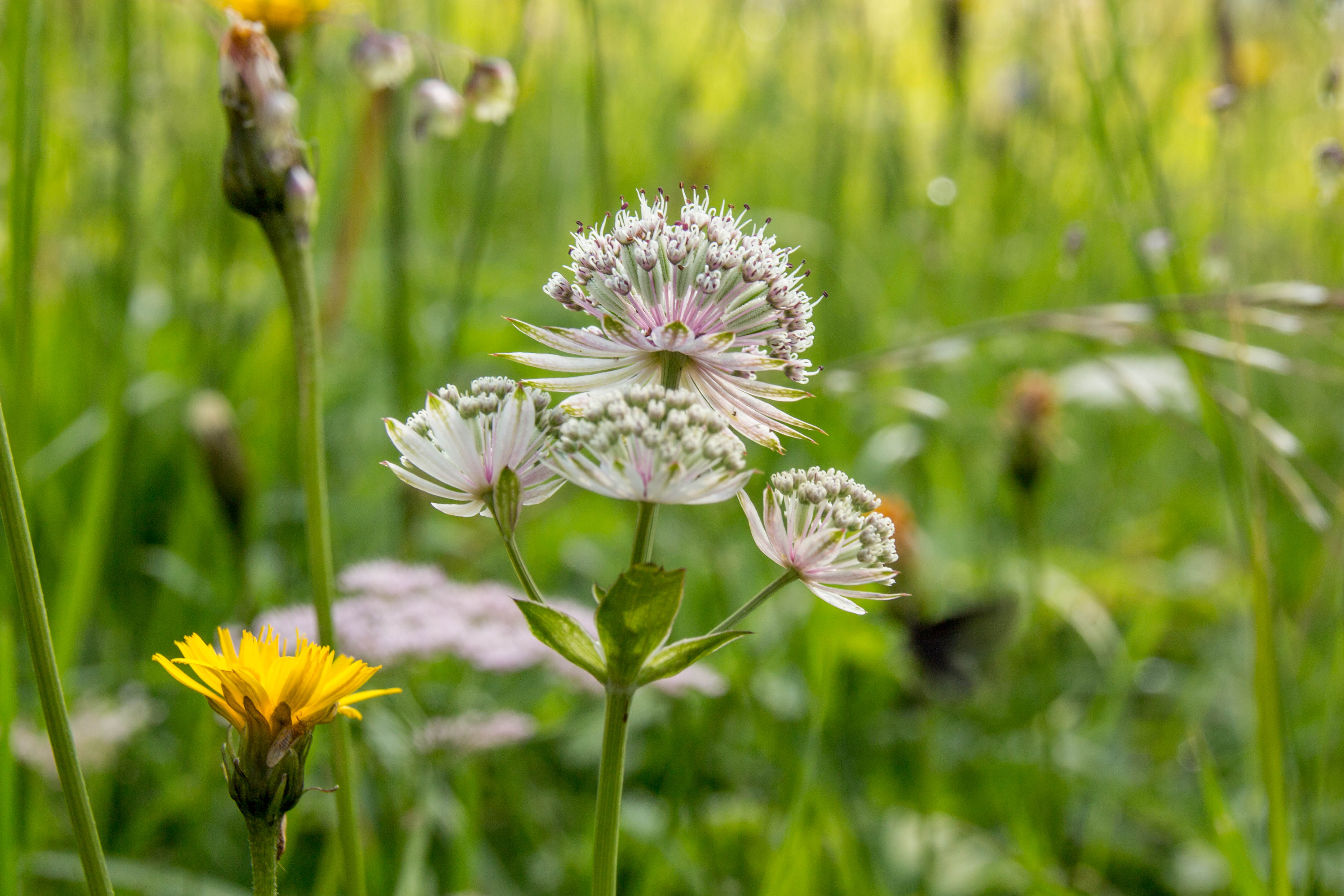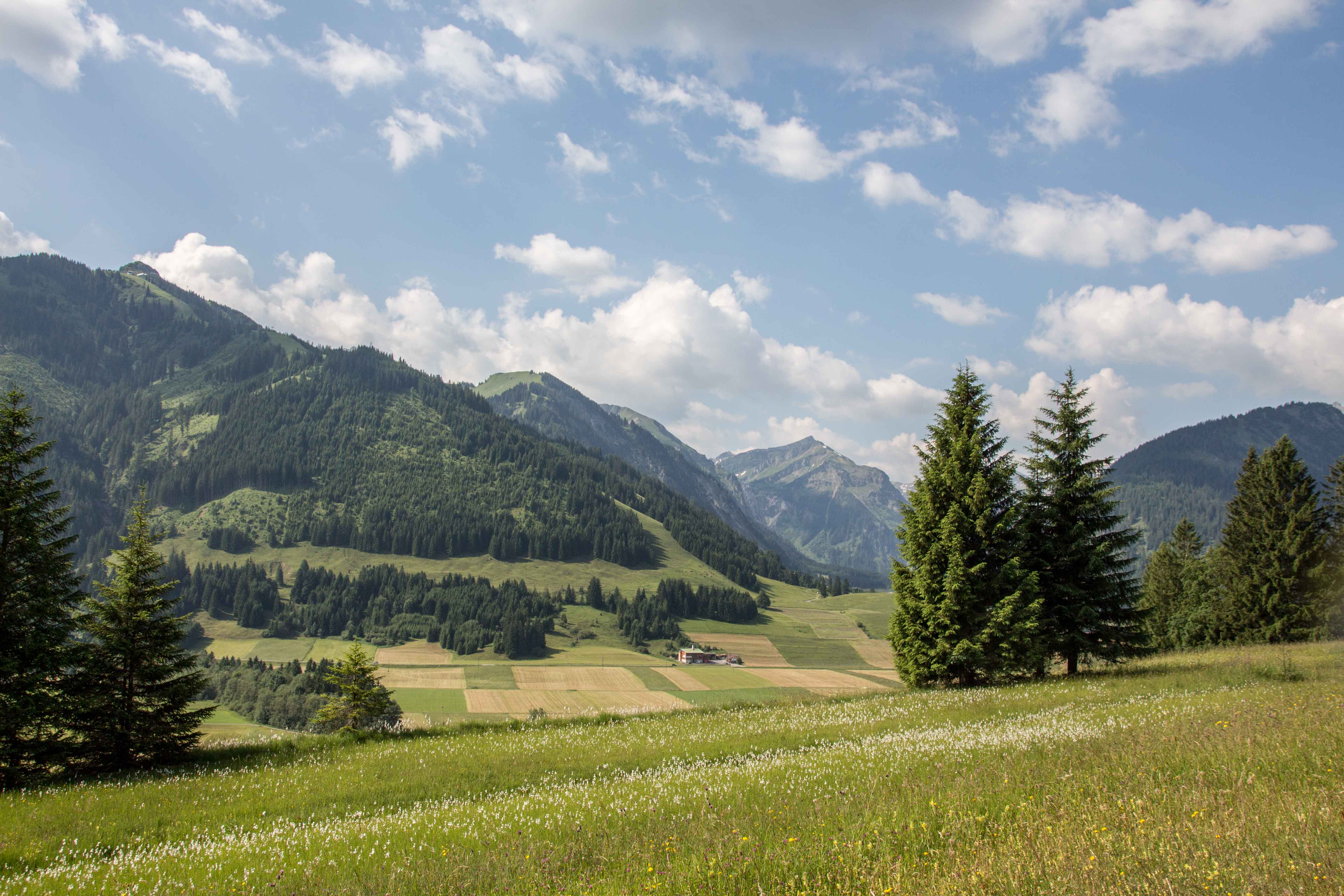 Sommertag. Schon am frühen Morgen bilden sich die ersten zerfranzten Wolken, lokale Gewitter sind vorhergesagt. Heute fahren wir ins TANNHEIMER TAL, laut Eigenwerbung das schönste Hochtal der Alpen. Oberhalb von GRÄN parken wir und folgen dem „Vater-unser-Weg“ hinunter in den Talgrund nach INNERGSCHWEND. Hier stärken wir uns im Wirtshaus Beim Öfner. Wir freuen uns, dass noch einige Wiesen nicht gemäht sind. Hoch stehen die vielen unterschiedlichen Gräser am Wegesrand, dazwischen leuchten die Sommerblumen. An einigen sumpfigen Stellen hält das Wollgras seine Fäden in den Wind, im Zinnkraut glitzern die letzten Tautropfen wie kleine Diamanten. Hoch reichen die Wolken, am Abend ist der Himmel jedoch wieder blank geputzt, das ersehnte Gewitter bleibt heute aus.