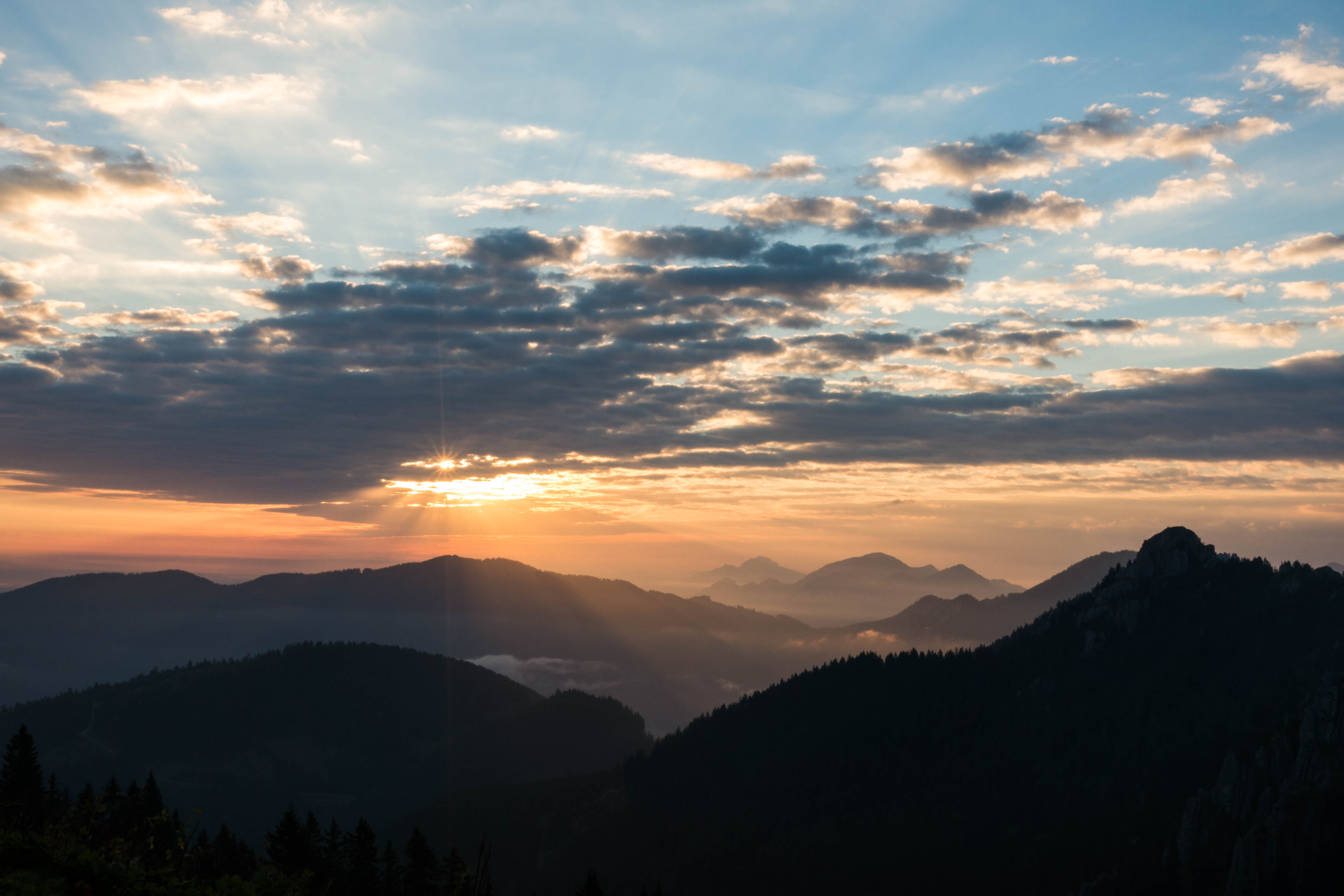 Nach einer sternenklaren Nacht und einem feuerroten Sonnenaufgang heißt es Abschied nehmen. Die letzten Wegkilometer sind angefüllt mit dem Dank für die schönen Tage in dieser beeindruckenden und beruhigenden Landschaft. Der Weg führt das erste Stück fast immer auf gleicher Höhe zum KOFEL, einem alleine stehenden Felsklotz über dem AMMERTAL. Auf den endlosen Serpentinen hinunter ins Tal kommt uns eine Vielzahl von Wanderern entgegen, viele nach frischer Seife riechend (das fällt mir seltsamerweise immer besonders dann auf, wenn ich einige Tage in den Bergen war.) Jetzt kommt auch noch etwas Wehmut und Trauer auf, gehen doch sechs wunderbare Tage in den ALLGÄUER BERGEN zu Ende. In OBERAMMERGAU gibt es noch einen Kaffee zur Stärkung. Dann wartet schon der Zug, der uns zurück in die Heimat bringt.