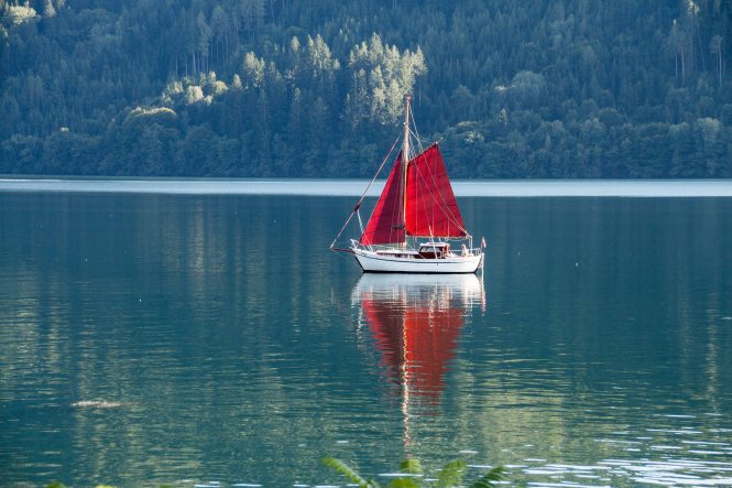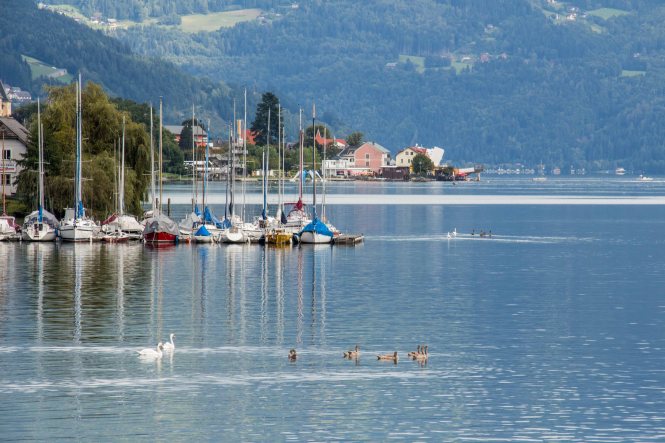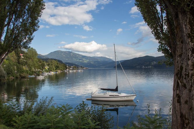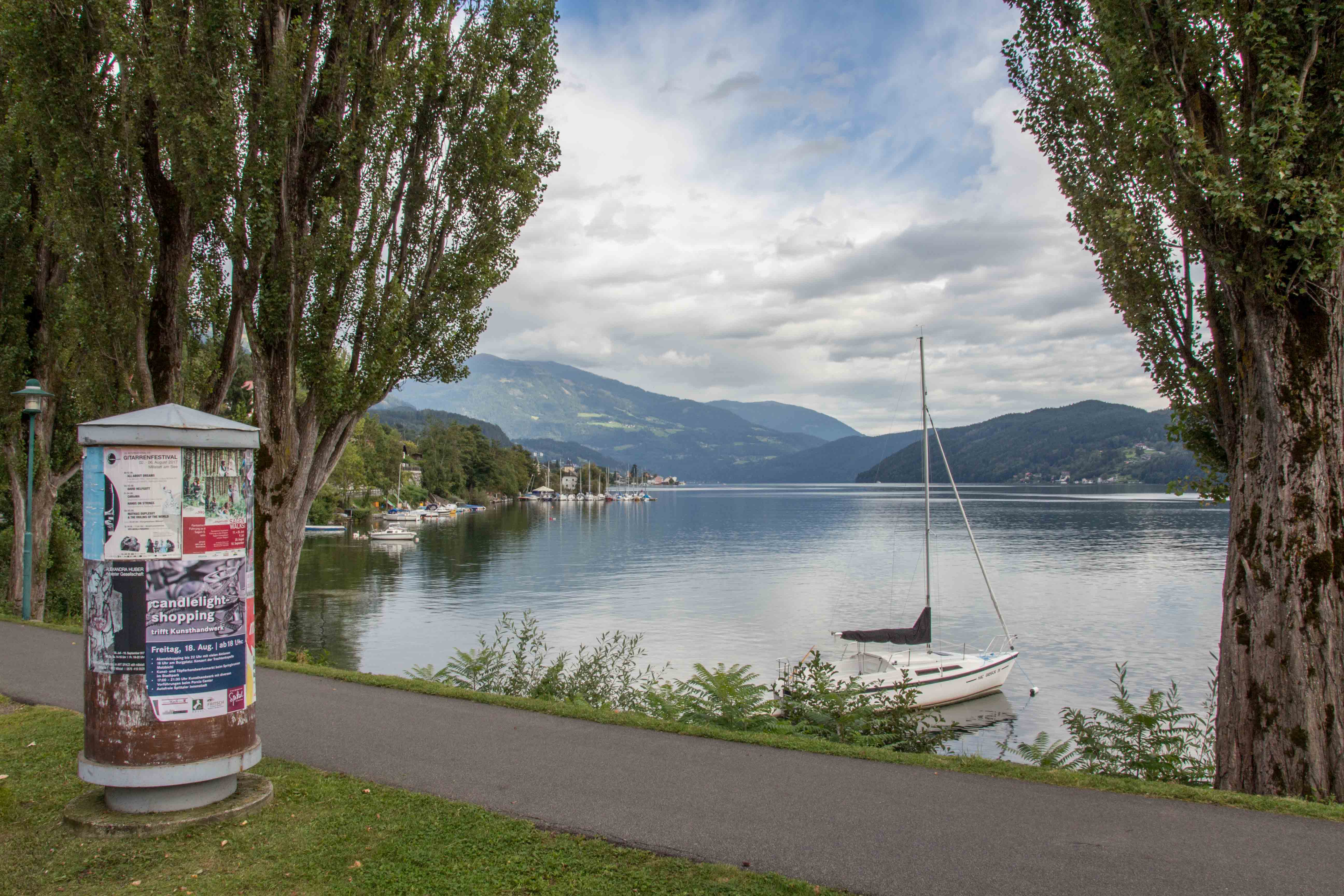 Graue Wolken schieben sich über den Himmel, nur ab und zu schafft es die Sonne eine kleine Lücke zu finden. Namhafte Städte ziehen an uns vorbei: HALLEIN, BISCHOFSHOFEN, SANKT JOHANN IM PONGAU, RADSTADT. Am KATSCHBERG queren wir den Alpenhauptkamm. Von hier fällt die Straße steil hinunter, der Dicke quält sich im 1. Gang. Am MILLSTÄTTER SEE kommen wir für die Nacht direkt am Ufer zum Stehen. Luft und Wasser haben mit 20 Grad wohl die selbe Temperatur. Da muss natürlich ein erfrischender Schwumm getan werden. Nun ist der Himmel wieder blitzblank und der volle Mond kann sein silbernes Licht verströmen.
