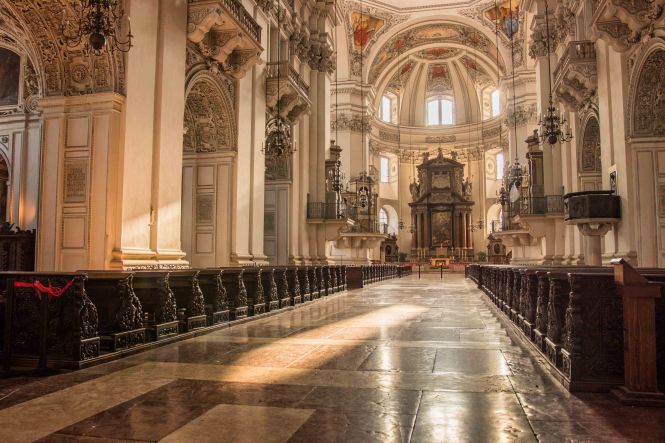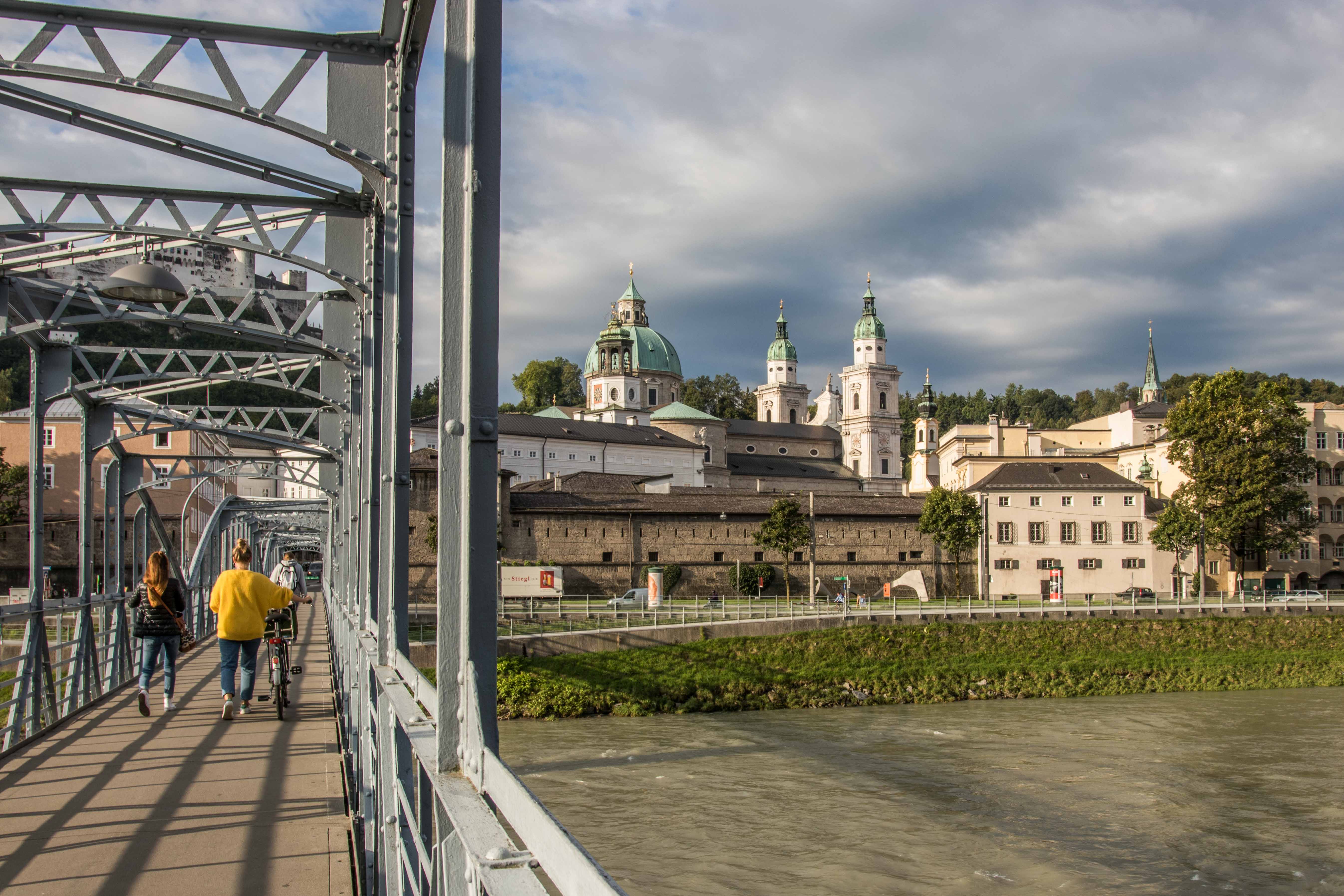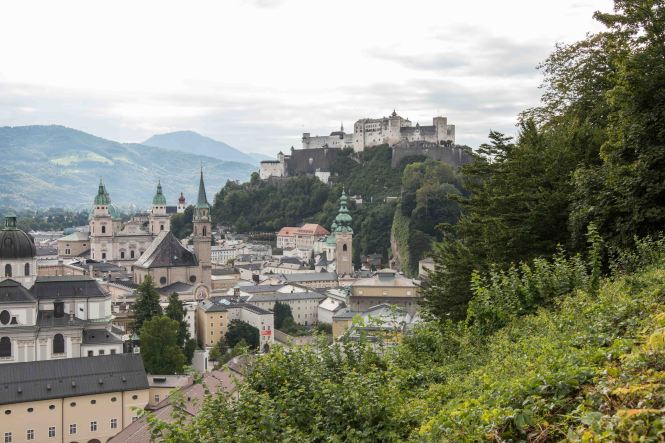 Am nächsten Morgen stehen wir bereits um 8 Uhr am Parkplatz am MOZARTSTEG direkt an der braunen SALZACH. Wir mögen es, einer Stadt beim Aufwachen zuzusehen. So schlendern auch nur wenige Frühaufsteher mit uns durch die leeren Gassen. Die Runde führt uns über DIE SALZBURG (noch geschlossen) zum MÖNCHSBERG. Hier, hoch über den prunkvollen Gebäuden der Altstadt, spazieren wir in einem wunderbaren und stillen Wald. Wieder zurück im Zentrum strömen unzählige Gruppen japanischer Touristen zu den Sehenswürdigkeiten. Es wird Zeit weiter zu fahren.