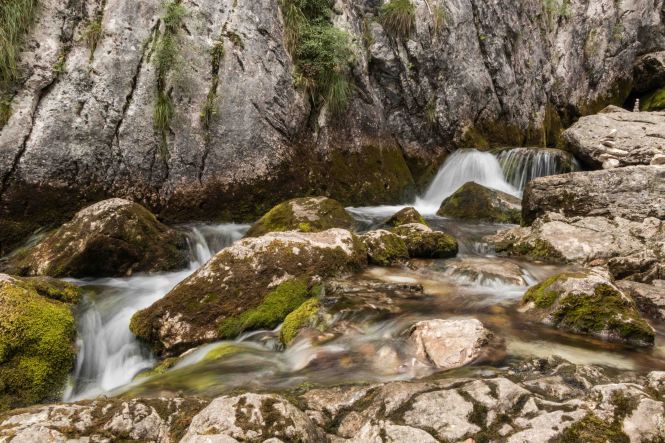 Genauso kurvenreich geht es wieder hinunter ins Tal der wunderschönen SOČA, deren Quelltopf wir einen Besuch abstatten. Aus einer Karsthöhle steigt das türkisblaue Wasser an die Oberfläche, bevor es über die Felsen in die Tiefe stürzt.