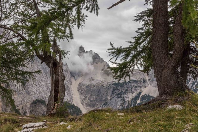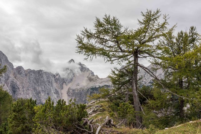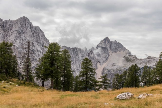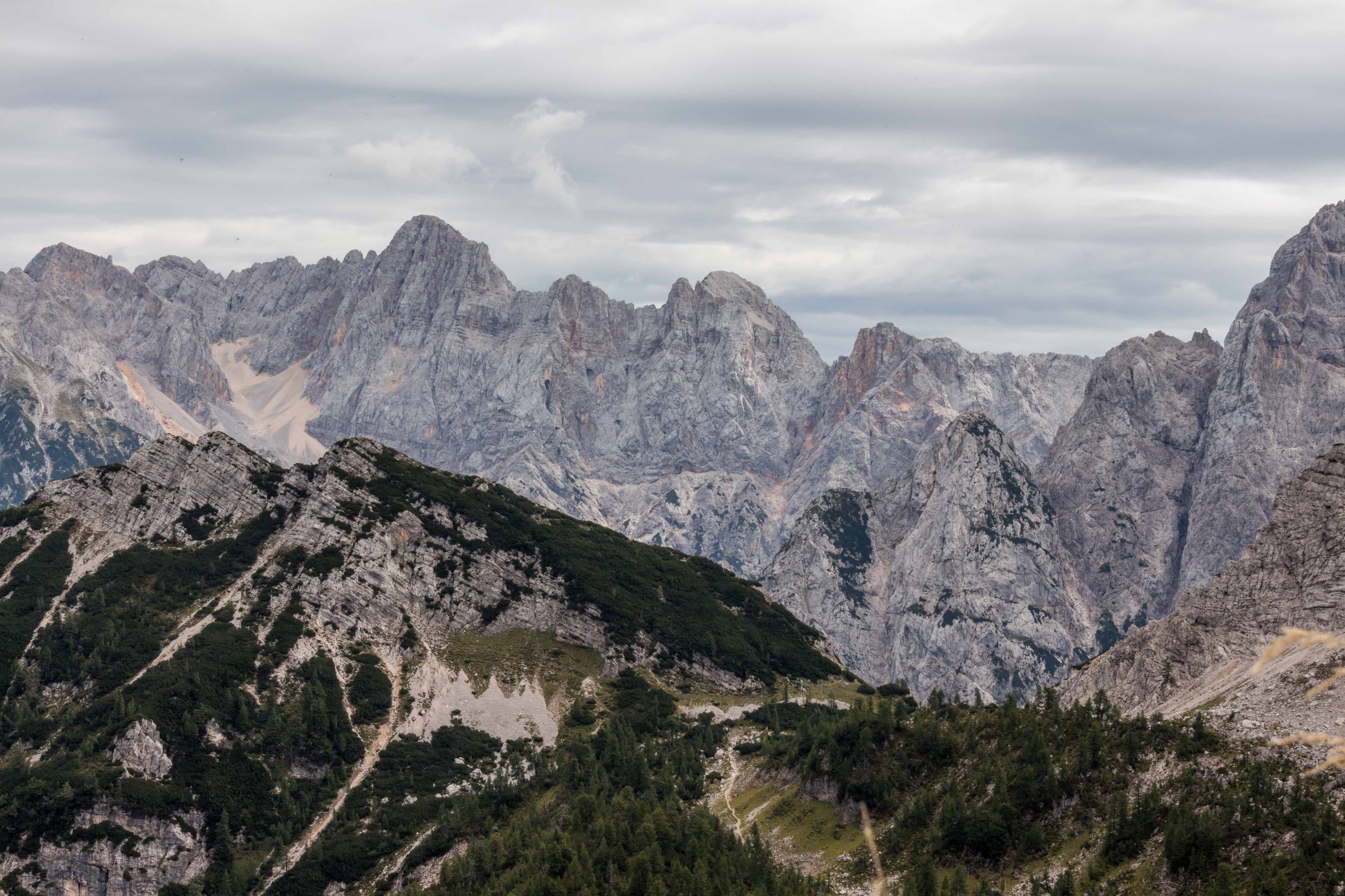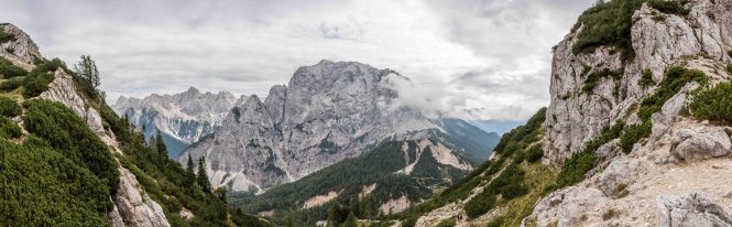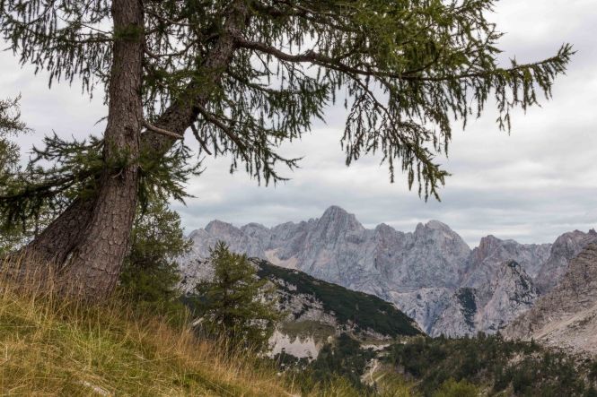 Unzählige dicke Harley Davidson mit sichtlich betagten Fahrern, die sich zu Tausenden am FAAKER SEE für die Woche treffen, knattern gemütlich auf der Straße vorbei, der auch wir folgen. Steil und kurvenreich bringt sie uns auf den 1 611 m hohen VRŠIČ-PASS. Hier schnürt Peter das erste Mal seine Wanderschuh und spaziert zum 1 909 m hohen Aussichtsberg SLEMENOVA ŠPICA. Von hier bietet sich eine Rundumsicht auf die JULISCHEN ALPEN und einen ihrer schönsten Berge, den JALOVEC.