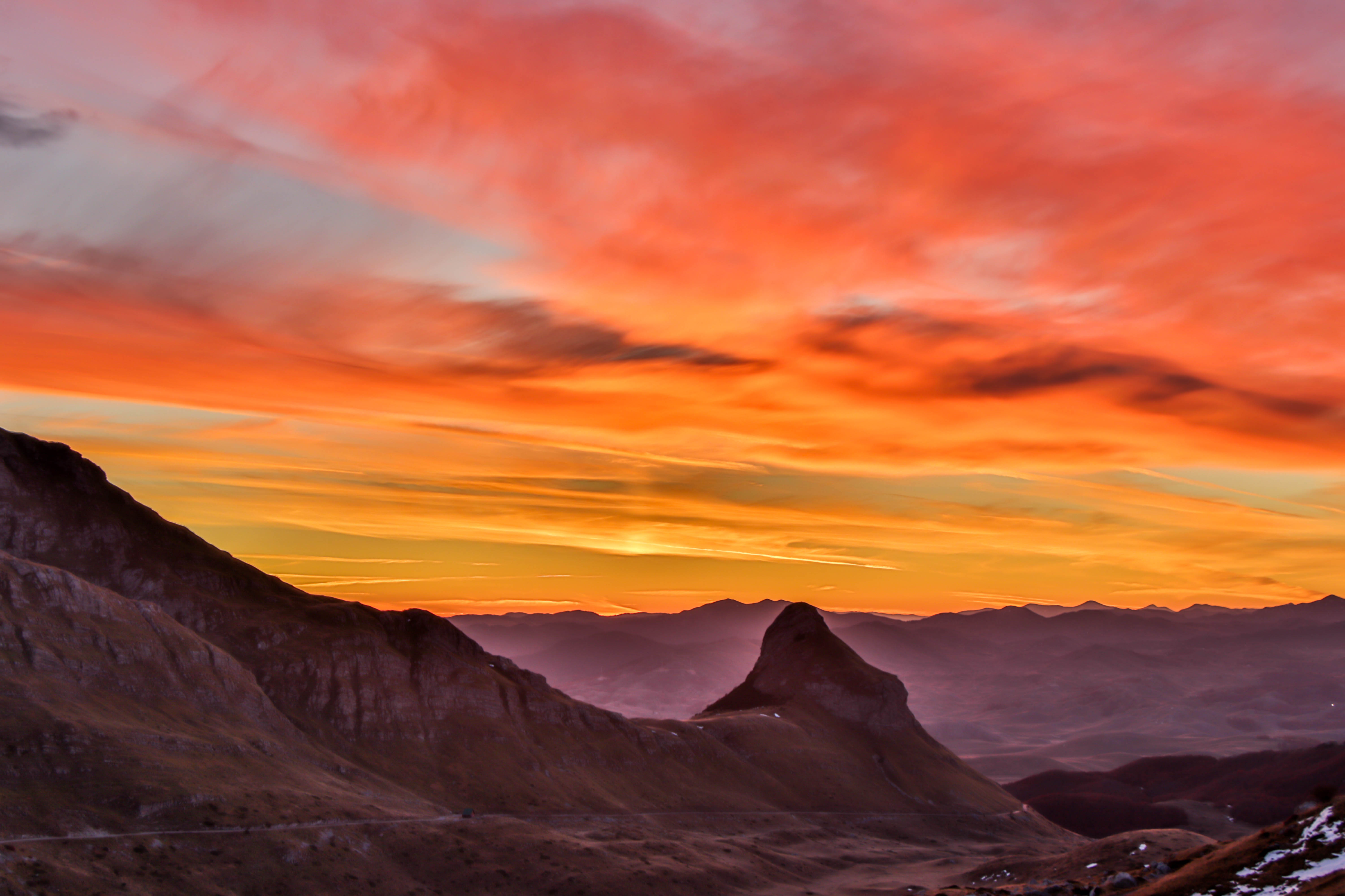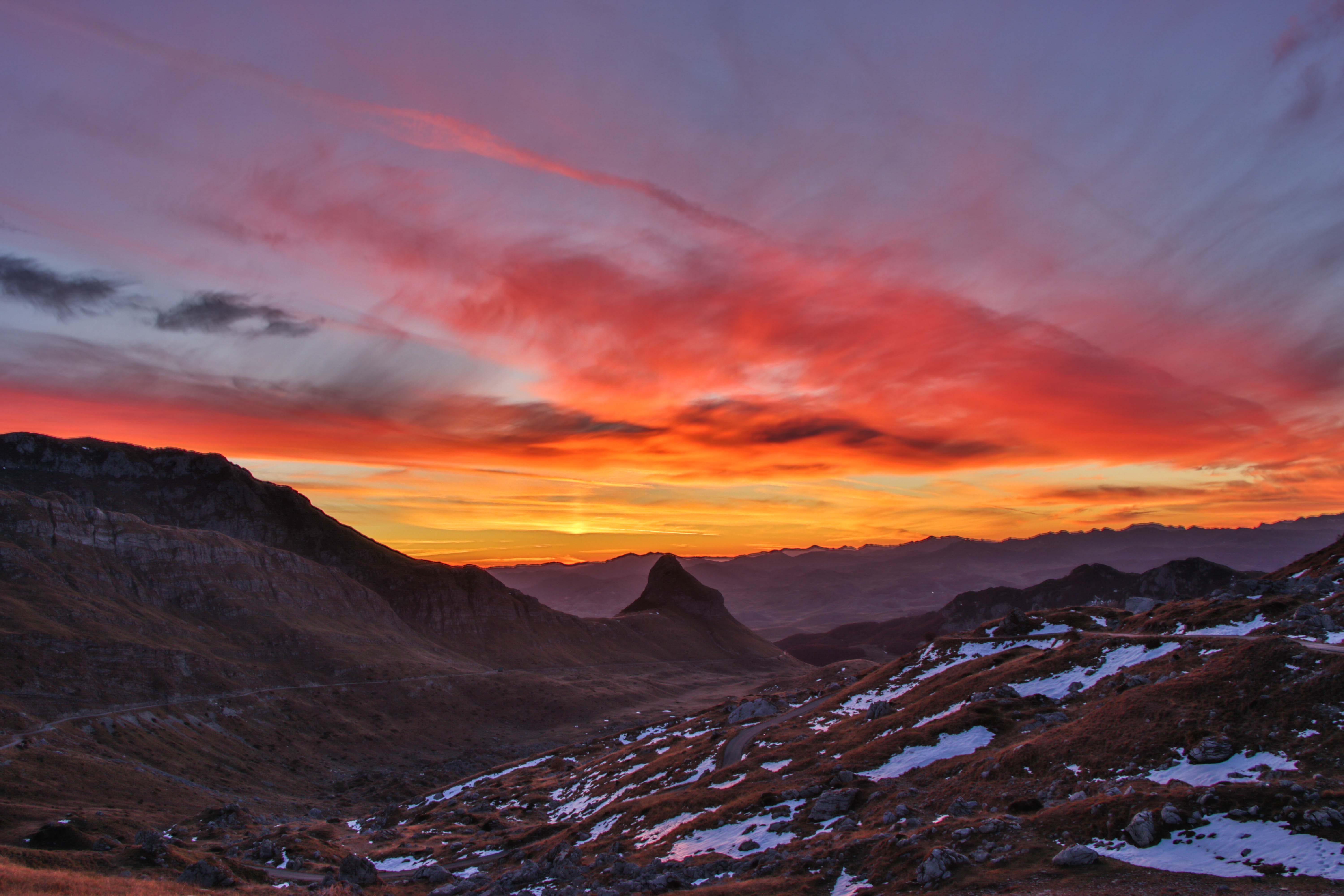 Der Vorteil des späten Sonnenaufgangs: wir erleben ihn. Staunend sehen wir dem Farbenspiel zu. Obwohl wir auf fast 2000 m übernachtet haben, ist es am Morgen gar nicht so kalt. Was haben wir für ein Glück mit dem herbstlichen Wetter. Wir sind genau zur richtigen Zeit hier unterwegs.