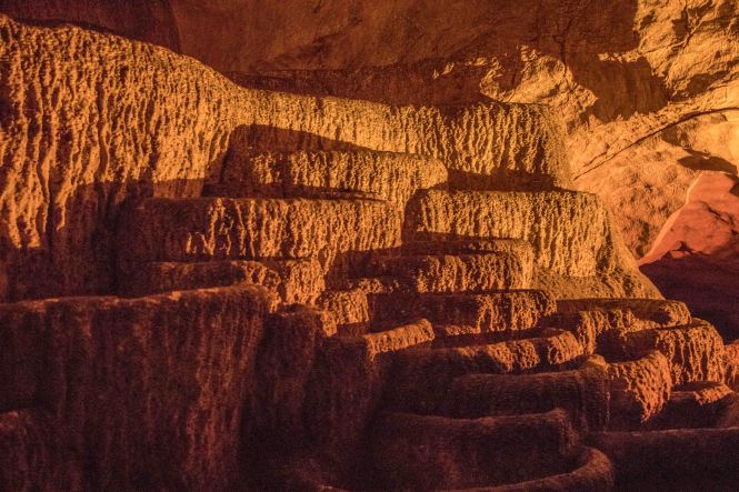 Von der Höhe auf breiter und guter Straße herunter kommend, reicht der Blick über die weite Ebene. Am Fuße der Berge entspringt der WEISSE DRIN, direkt an dem Fluss finden wir einen stillen Platz neben einem einladenden Restaurant. Die Quelle sprudelt zwar heftig, viel Wasser für die Trinkwasserversorgung wird jedoch abgezweigt. So plätschert vor unsere Haustüre nur ein kleines Bächen. In der RADAC-HÖHLE, ehemals vom DRIN durchflossen, bekommen wir eine Exklusivführung.