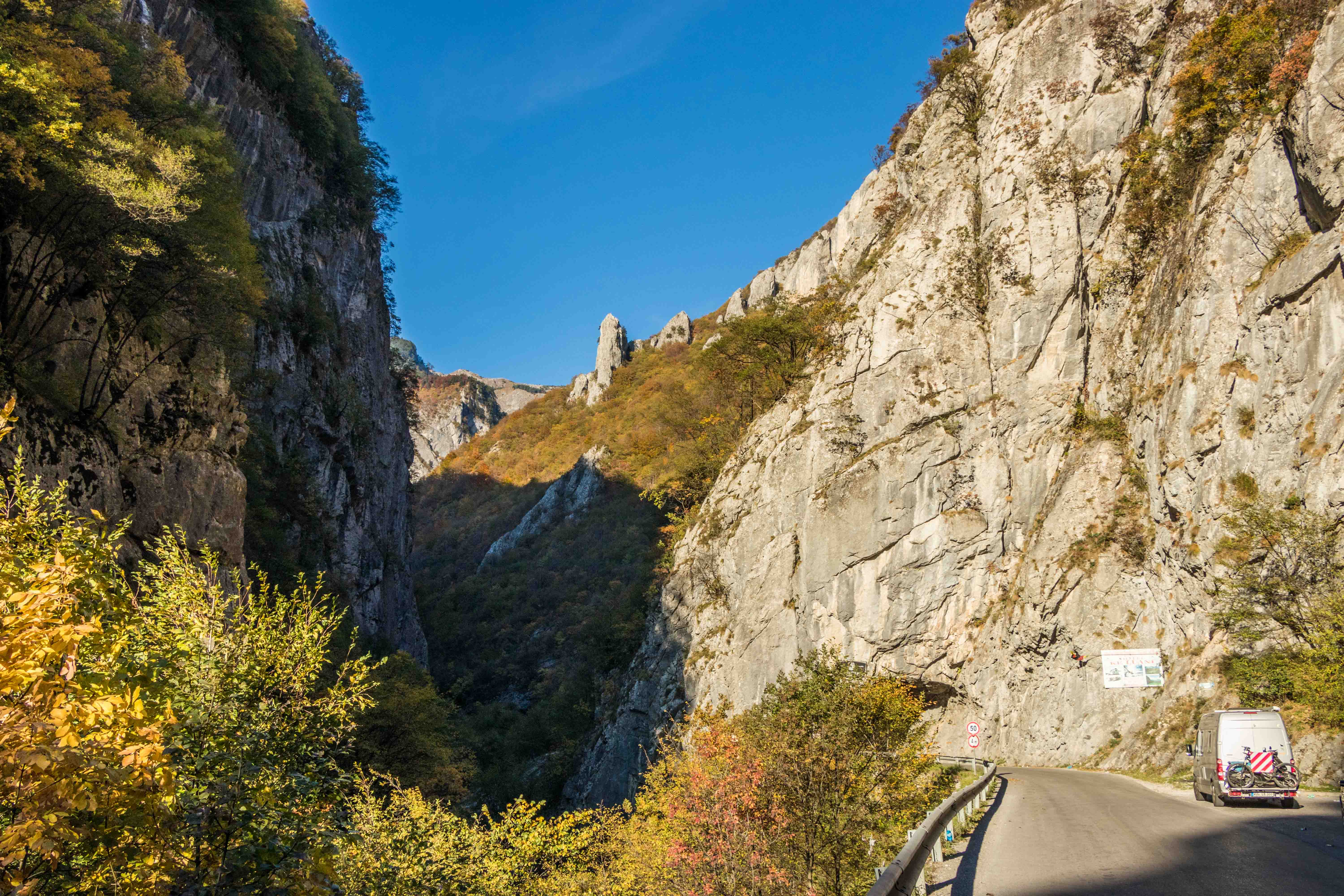 Von der Höhe auf breiter und guter Straße herunter kommend, reicht der Blick über die weite Ebene. Am Fuße der Berge entspringt der WEISSE DRIN, direkt an dem Fluss finden wir einen stillen Platz neben einem einladenden Restaurant. Die Quelle sprudelt zwar heftig, viel Wasser für die Trinkwasserversorgung wird jedoch abgezweigt. So plätschert vor unsere Haustüre nur ein kleines Bächen. In der RADAC-HÖHLE, ehemals vom DRIN durchflossen, bekommen wir eine Exklusivführung.
