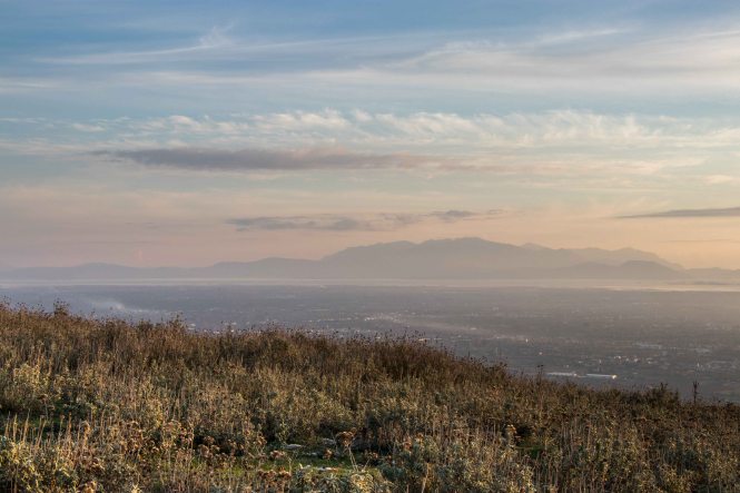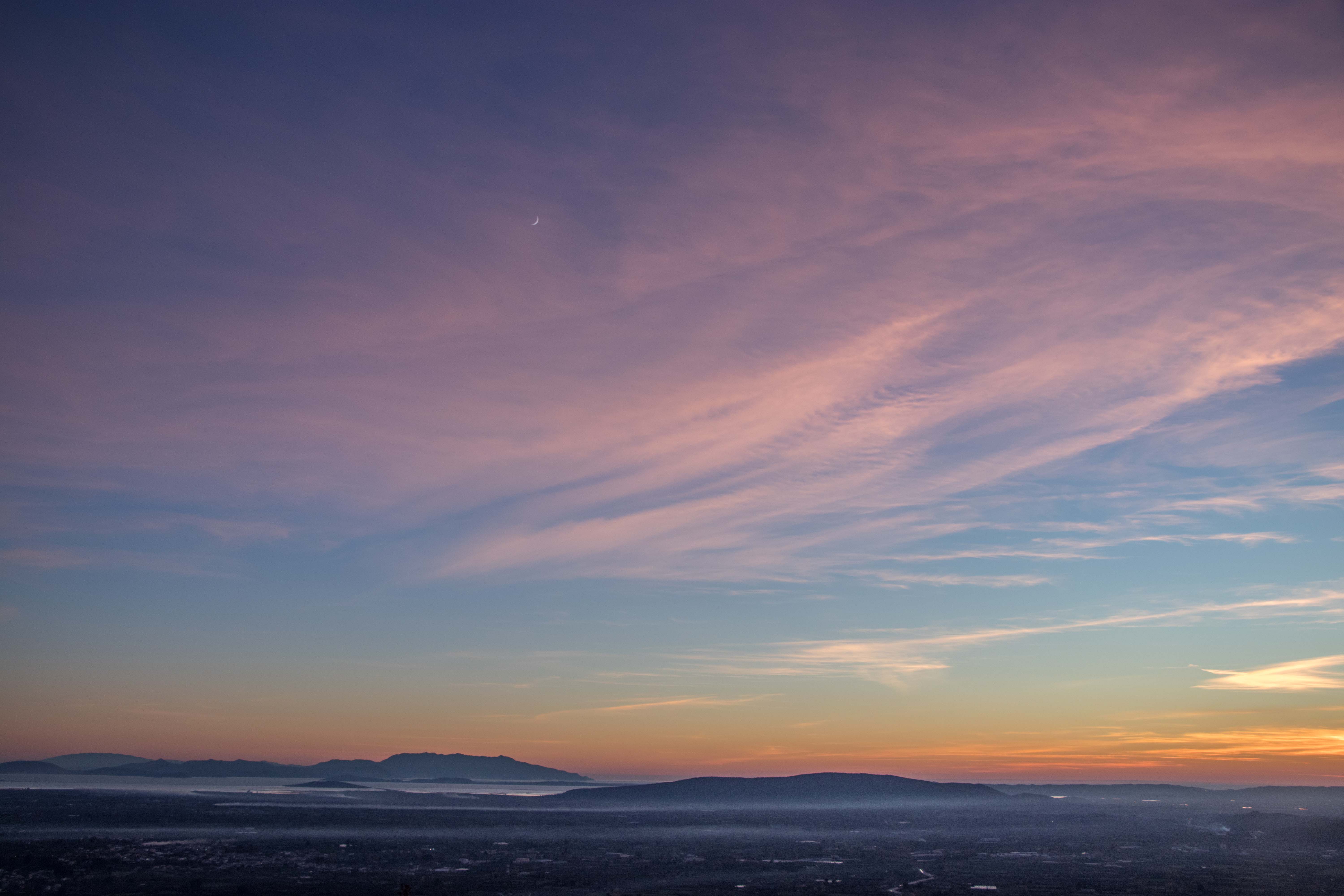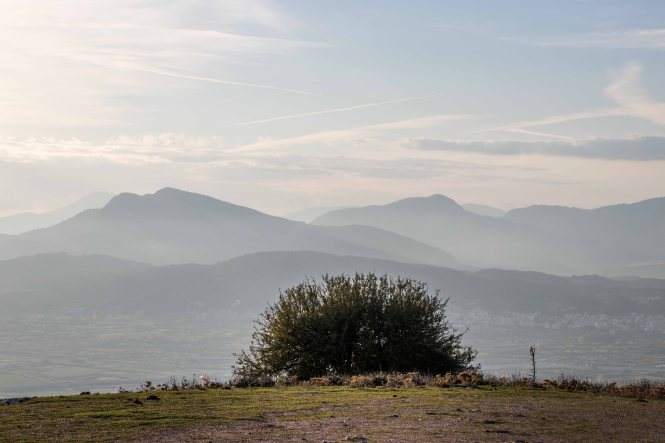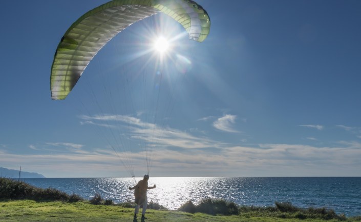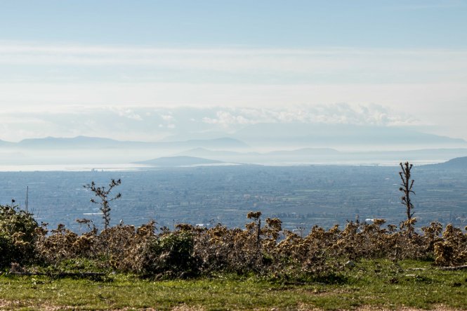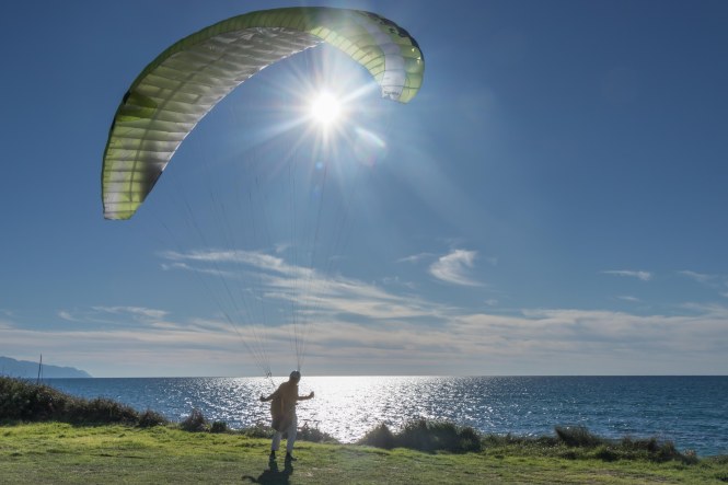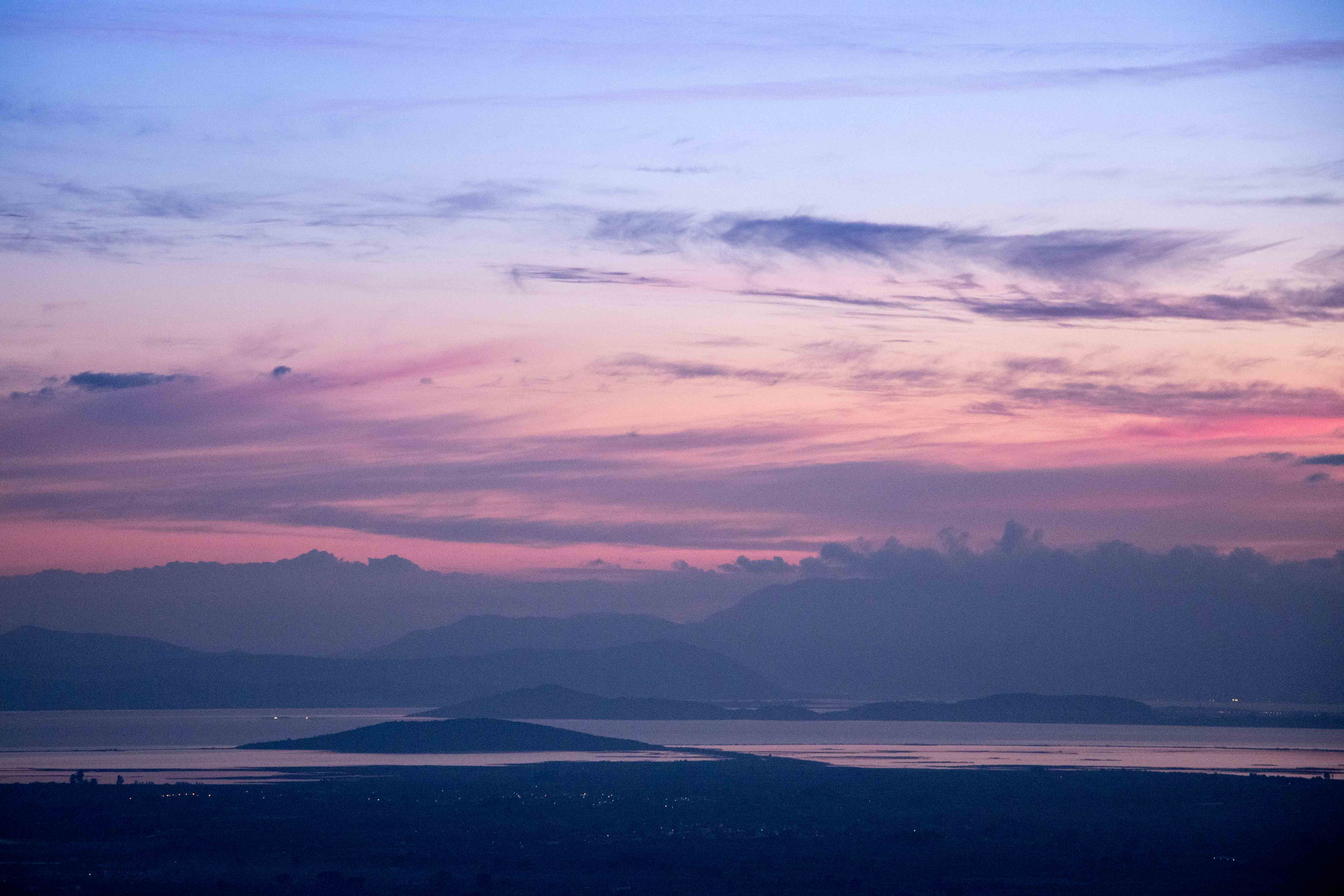 Am Strand von KANALI gibt es einen kleine Hügel, der sich wunderbar zum Spielen mit dem Gleitschirm eignet. Der Seewind steht perfekt an, so dass sogar ein paar Hüpfer mit kleinen Kurven gelingen. Kostas, ein griechischer Gleitschirmlehrer, kommt mit einigen Schülern zum Üben vorbei. Er gibt uns den Tipp, die nächsten Tage nach CHANOPOULO zu fahren, der Wind würde perfekt passen und wir könnten am Startplatz mit unserem Dicken übernachten. Nachdem das Starten, trotz langer Pause, immer noch gut gelingt, fahren wir das Stück ins Landesinnere. Sofort gefällt uns der Platz. Wir stehen auf 333 m Höhe mit fantastischem Rundumblick. Kurz nach Mittag setzt sich der Seewind durch und schafft wunderbar angenehme Flugbedingungen. Kostas kommt wieder mit ein paar Schülern und braucht Jemanden zur Hilfe am Start, er muss am Landeplatz stehen. Ob ich nicht helfen könnte? Die Verantwortung zu Übernehmen ist aufregender als selbst zu Fliegen. Am Vortag schaffte es der eine Schüler trotz Fluglehrer nach ungezählten Startversuche nicht in die Luft zu kommen. Nun soll ich das schaffen. Aber, siehe da, bereits der zweite Start gelingt und er ist in der Luft. Was für eine Erleichterung. Aus Angst, zum Hilfsfluglehrer ernannt zu werden, fliege ich los und lande erst, als alle wieder in der Luft sind. Und auch sonst ist es hier oben einfach traumhaft, vom stimmungsvollen Sonnenaufgang bis zum farbenprächtigen Sonnenuntergang. Doch die Wolken zeigen die Wetterveränderung bereits an, ab morgen soll es wieder regnen. Wir werden wieder ein Stück weiter fahren.