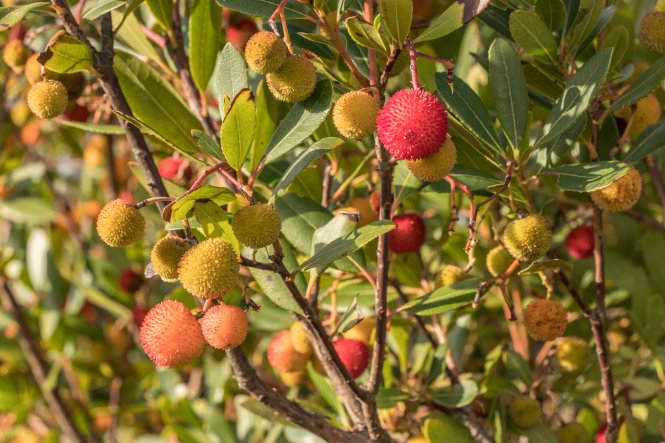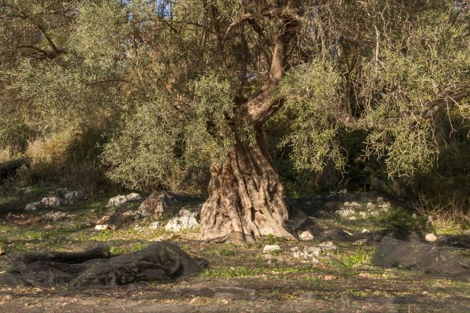 Das Wetter ist wie vorhergesagt abwechselnd wolkig und sonnig. Wir ziehen ein paar Kilometer weiter. Die Fahrt geht durch Olivenhaine, Netze zur Ernte sind überall ausgelegt, am Rand stehen Erdbeerbäume mit reifen Früchten und die Heide steht in voller Blüte.