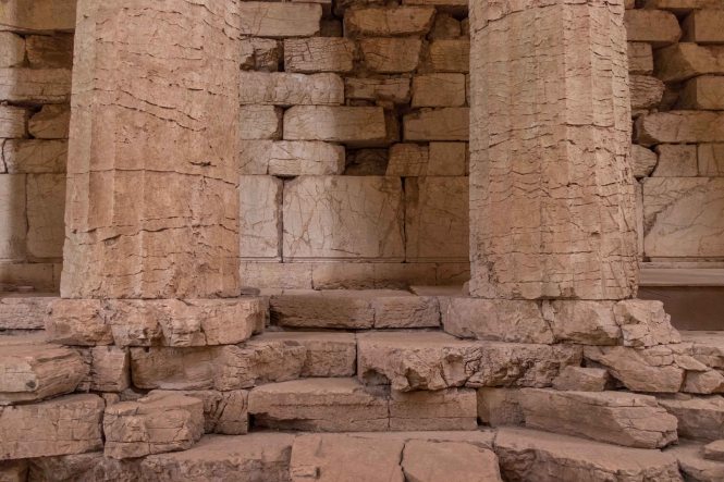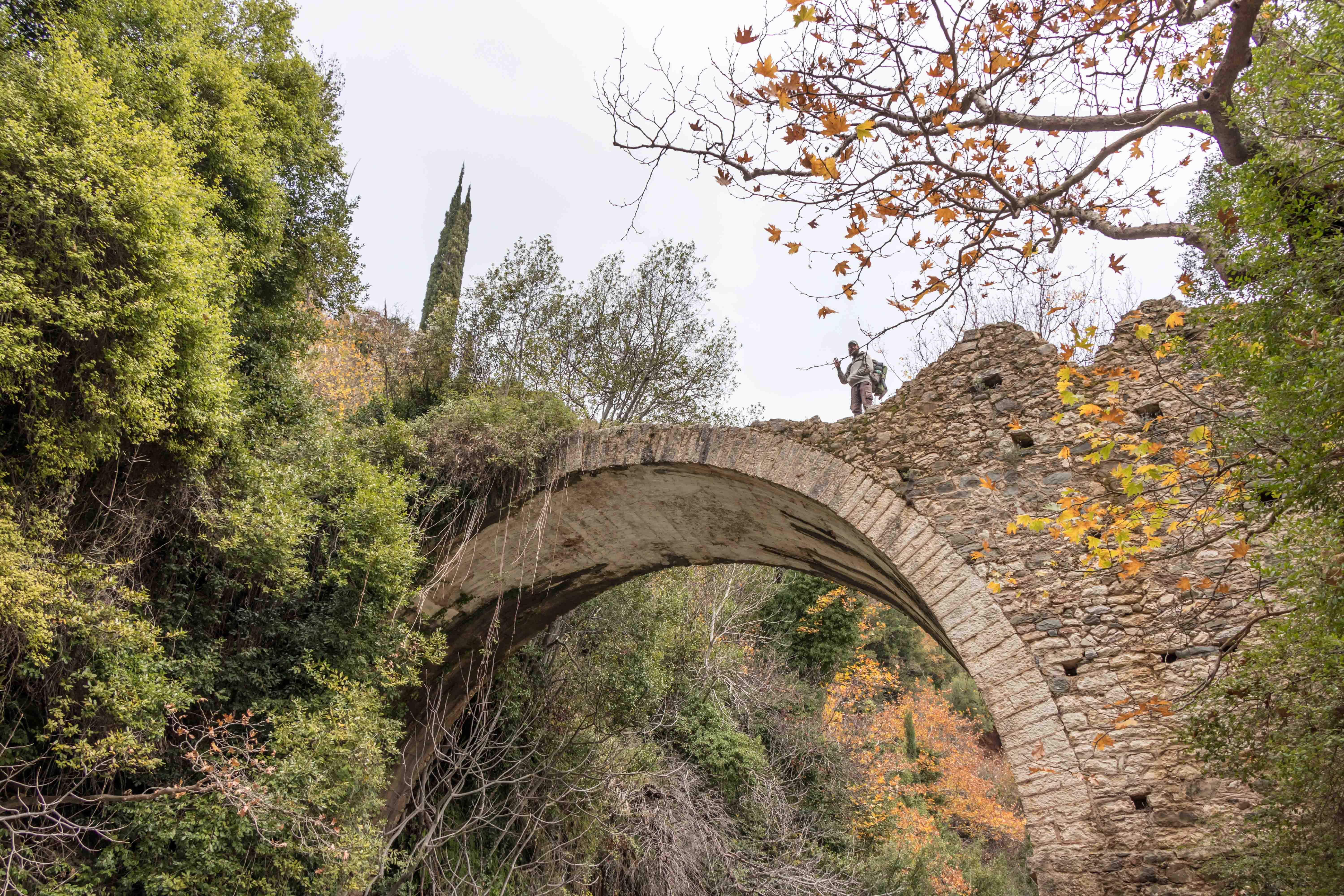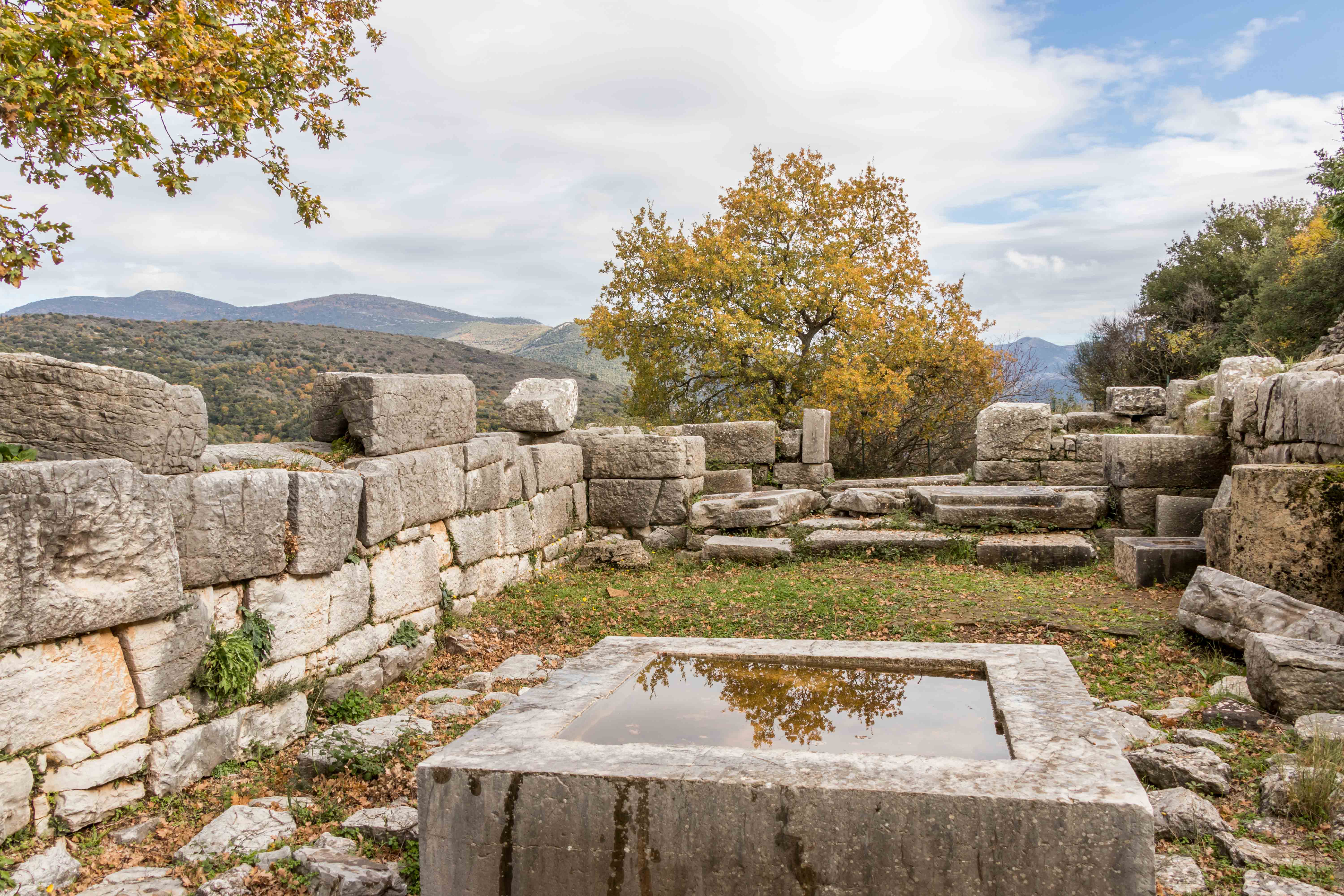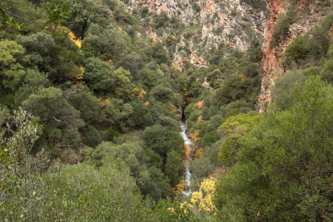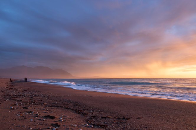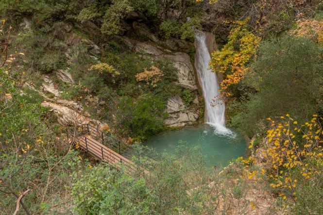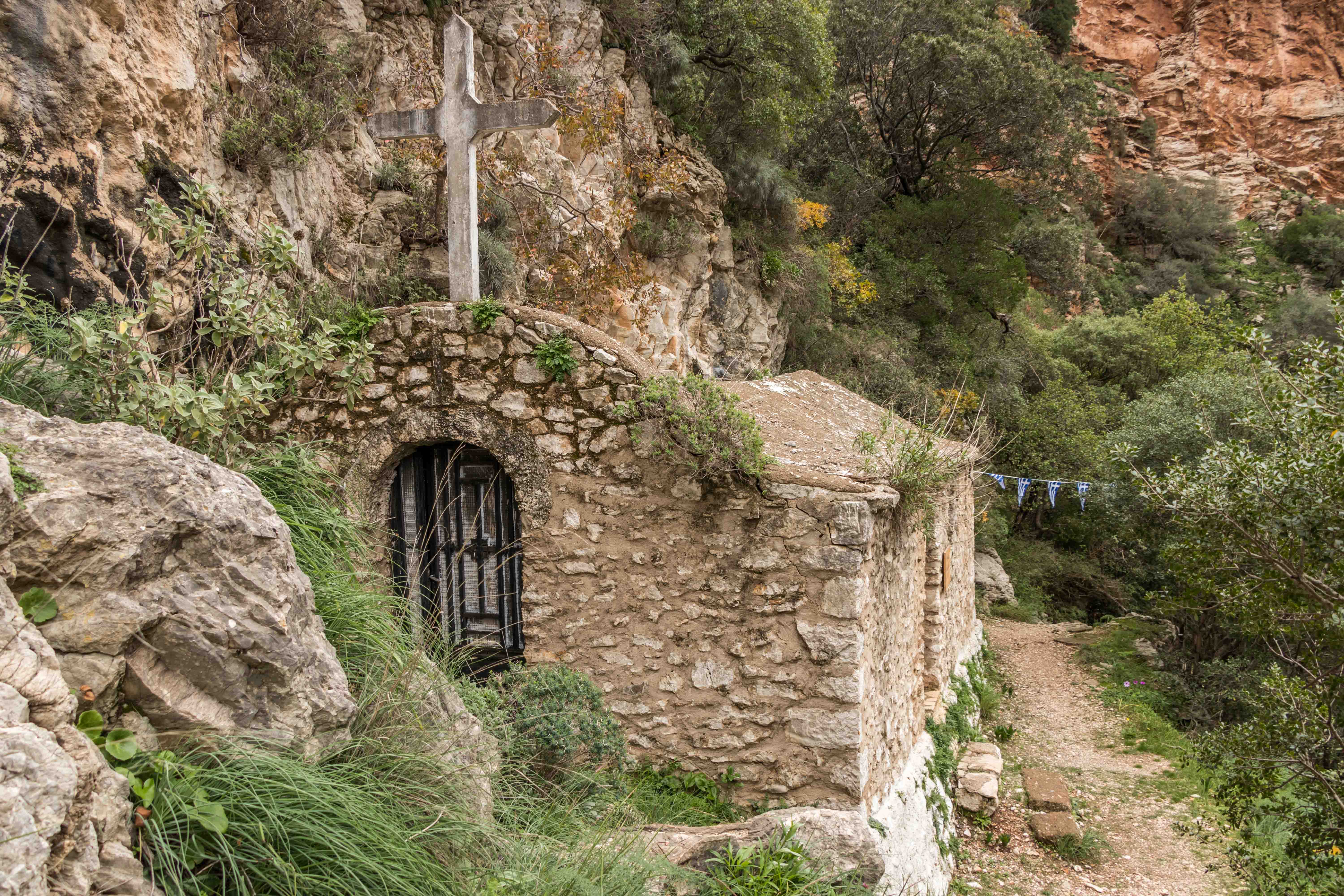 Kaum sind wir mit der Sonne aufgestanden, kommt einer der Dauercamper mit drei Hunden vorbei und erzählt uns begeistert von seinen Wohnmobilreisen um die halbe Welt. Da es warm ist, machen wir einen kleinen Abstecher ins Landesinnere. Die Temperatur nimmt, je höher wir kommen, nur wenig ab. An einem mächtigen Brunnen füllen wir unsere Wasservorräte auf. Dann bringt uns unser Dicker auf breiter Straße auf über 1100 Meter zu dem imposanten Apollotempel in BASSAE, der zum Schutz in ein riesiges Zelt eingepackt ist und UNESCO-Weltkulturerbe ist. In FIGALIA halten wir zu unserer Mittagsrast. Ein Engländer auf einem Motorrad hält und erzählt uns von seinem Leben im nächsten Dorf und den Eigenheiten der Einwohner. Peter macht eine kleine Wanderung zu den Wasserfällen der NEDA. Auf einem kleinen Hügel steht ein kleiner Heratempel. Der weitere Weg führt durch einen kleinen Olivenhain, die Äste beugen sich unter der Last der vielen kleinen Früchte. An der eleganten Brücke über die NEDA treffe ich einen jungen Finnen mit kleinem Rucksack, der überlegt, ob er liebte in die Türkei oder nach Ägypten reisen sollte. Schwierige Entscheidungen. Entlang des Weges blühen die ersten Blumen, es ist Frühling. Bei dem kleinen Wasserfall mit dem einladenden Wasserbecken schmiegen sich eine kleine Kirche und eine winzige Einsiedelei an die Felsen über der tiefen Schlucht. Zurück finde ich einen kleinen Steig. Grabkammern liegen am Weg, unter den Büschen türmen sich die mächtigen Steine der ehemaligen Stadtmauer. Fast stolpere ich über eine Schildkröte, die hilflos auf dem Rücken liegt. Wieder in eine angenehmere Position gebracht, marschiert sie auf den nächsten Abhang zu. Als ich bei Susanne ankomme, wird es schon langsam dunkel. Zurück an dem weiten Strand gönnt uns die Sonne noch ein farbenprächtiges Spektakel. Uns wird es nicht langweilig.