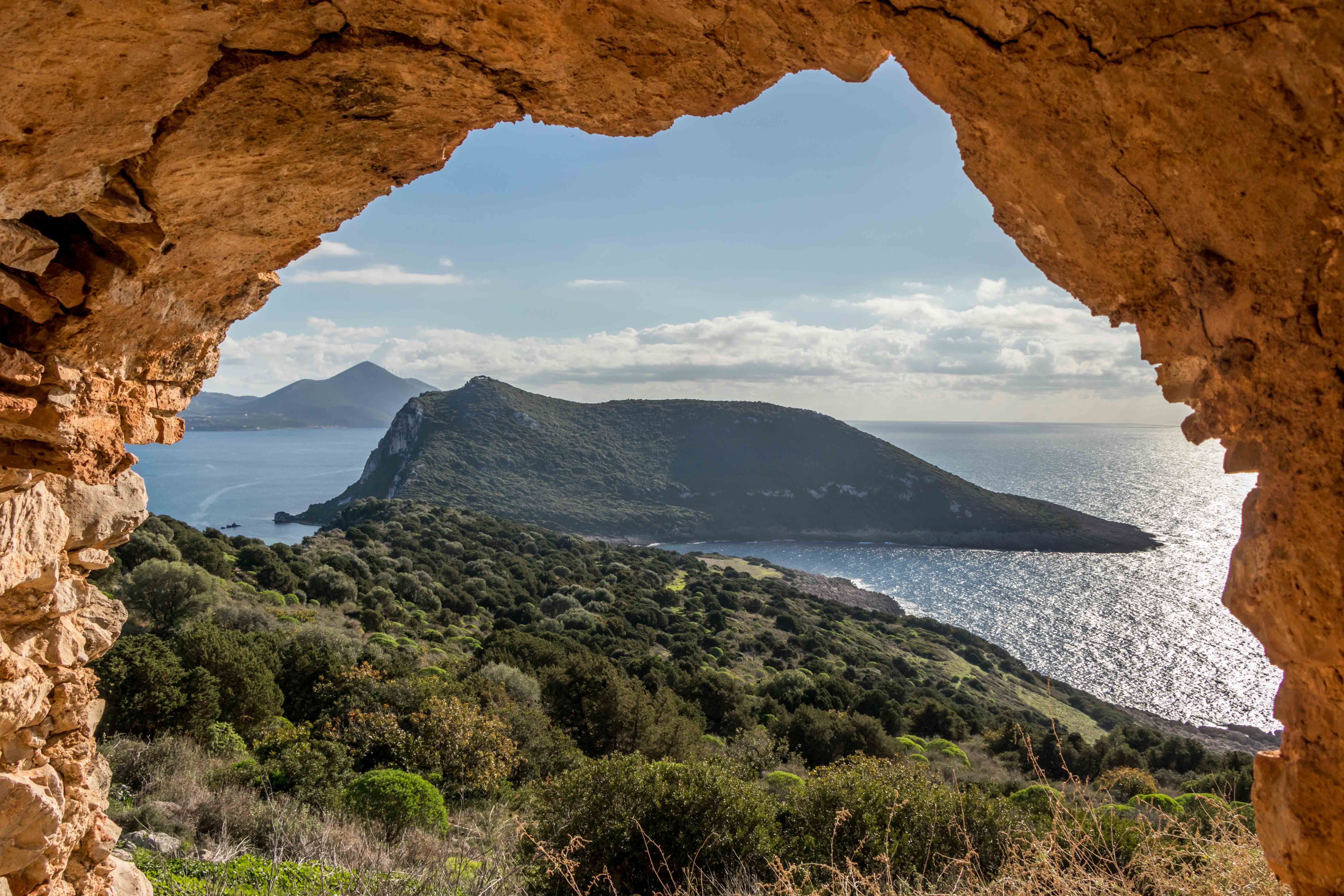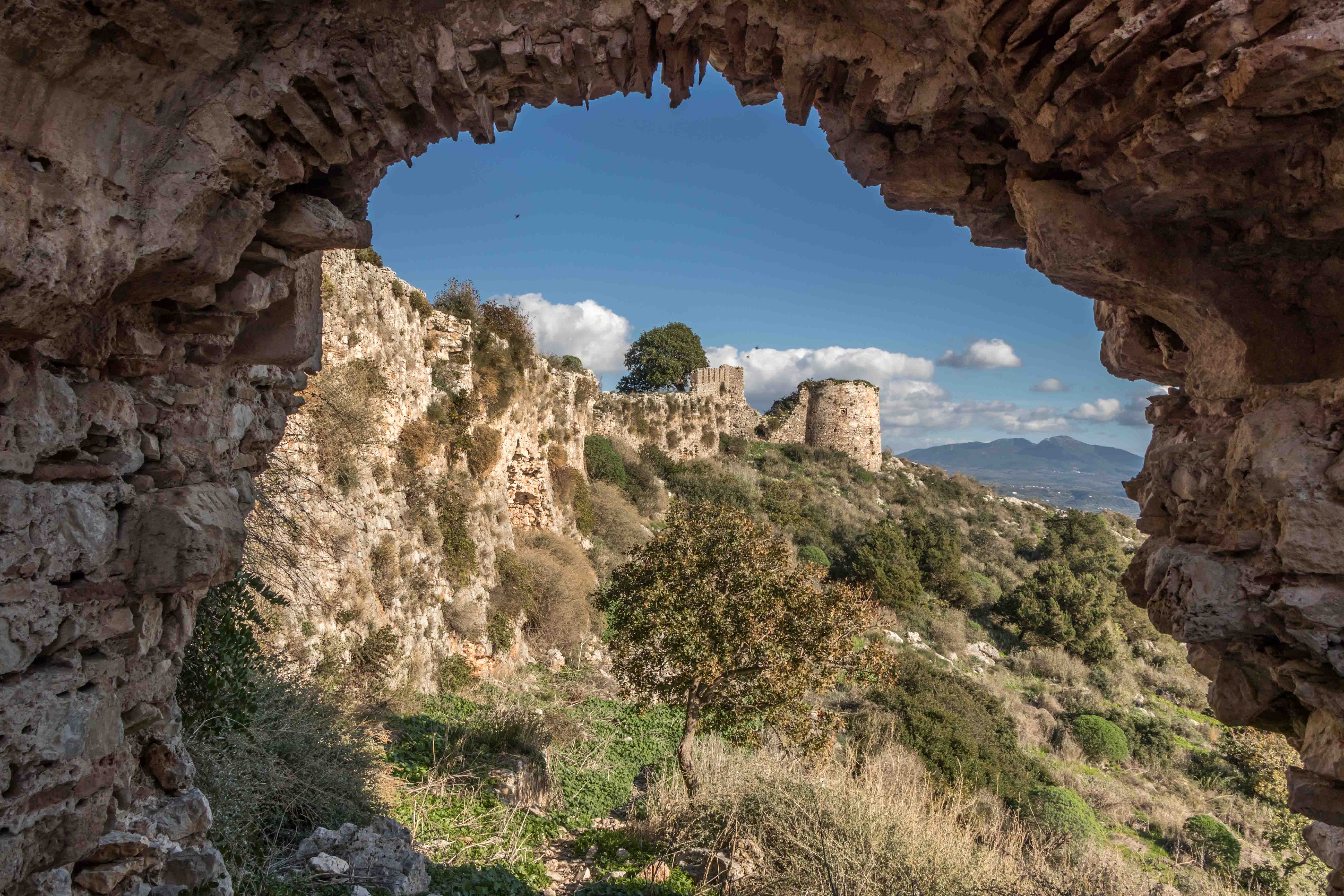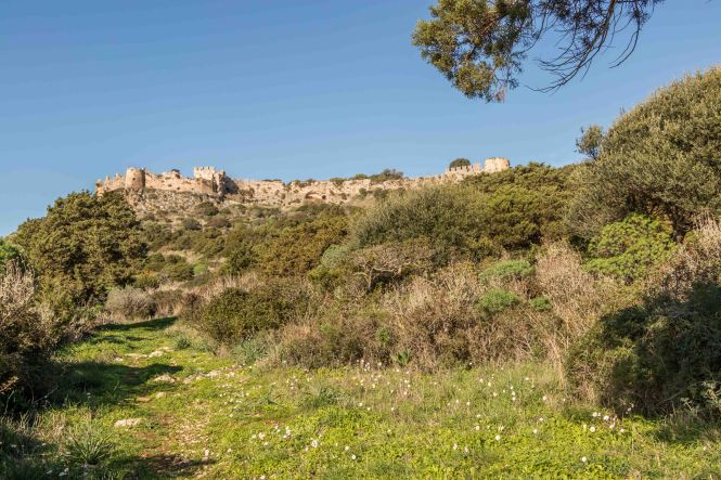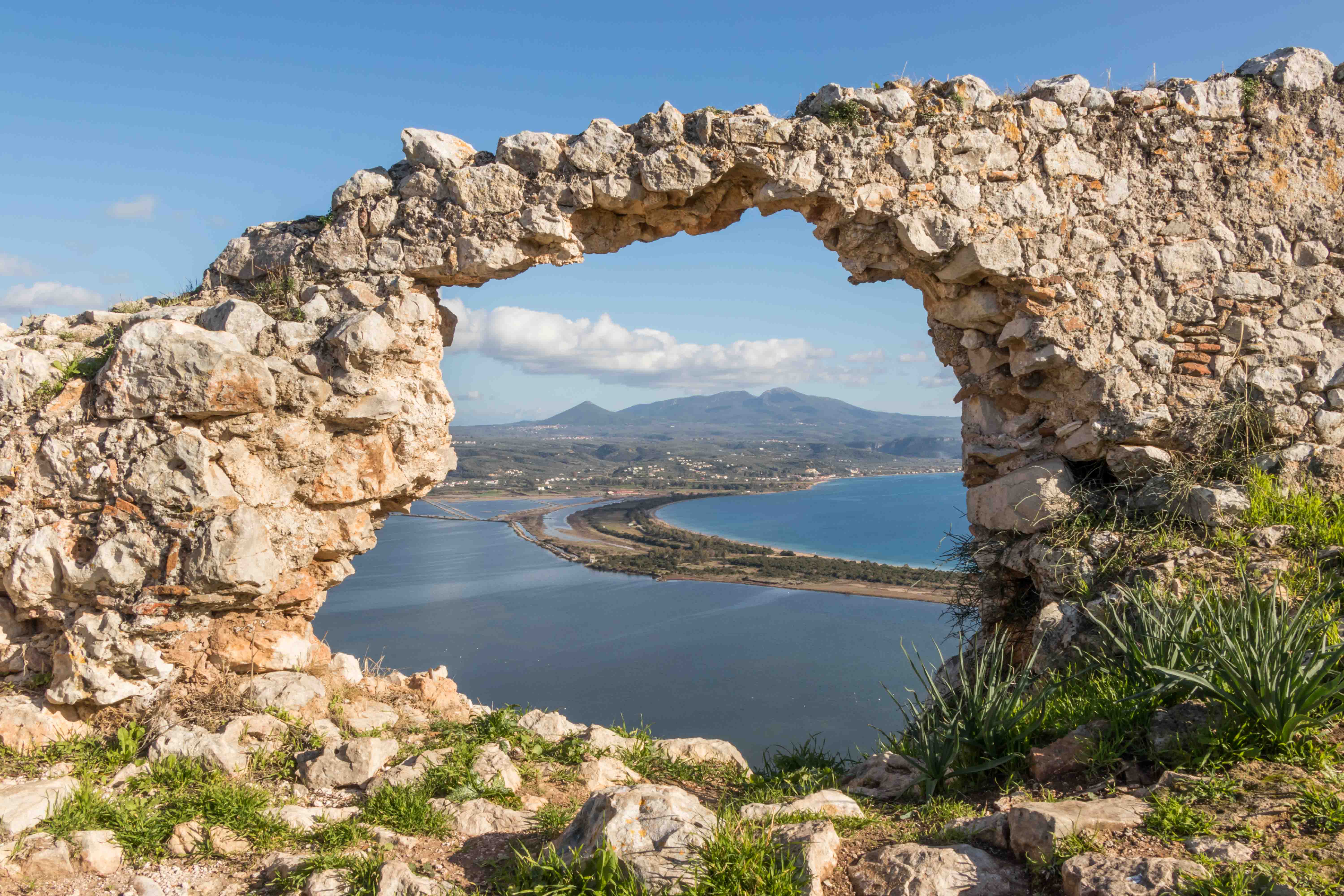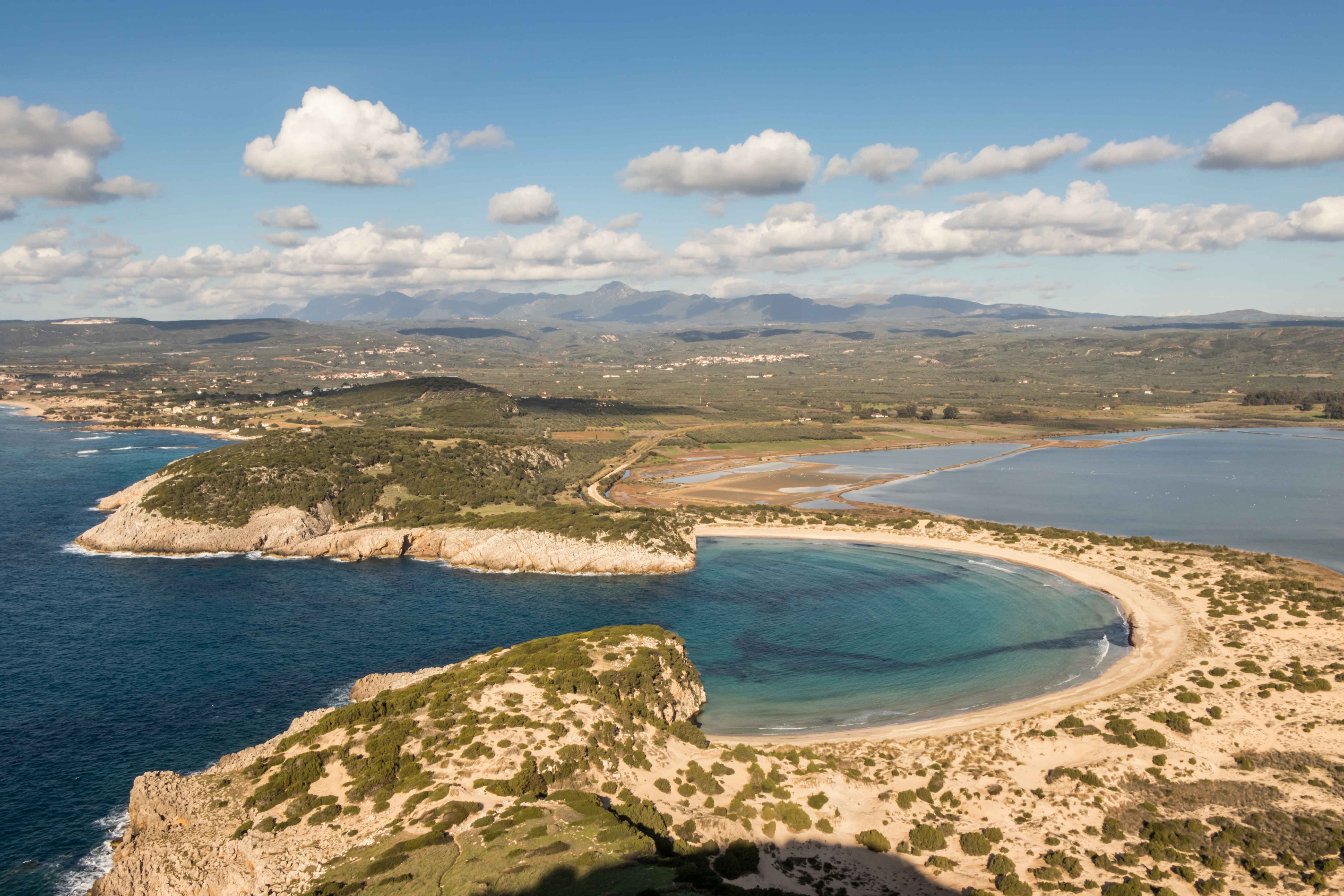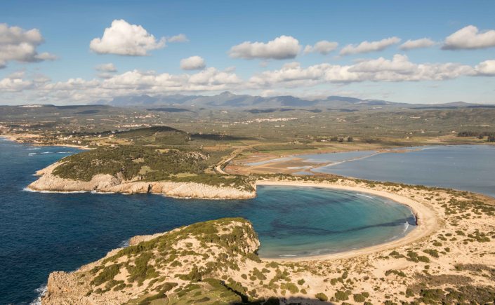 Entlang der Bucht führt der Weg bequem hinauf zum PALEO KÁSTRO, einer riesigen Burg auf der Halbinsel KORYPHÁSION, gegründet von Slawen, ausgebaut von Franken und abwechselnd beherrscht von Venezianern, Genuesen und Türken. Von hier ist die OCHSENBAUCHBUCHT ein Traum. Gleich unterhalb liegt die Höhle des Nestor, in der er seine Rinder untergebracht hat. Dann ist auch schon die wundervolle Bucht erreicht und der Schweiß der Wanderung kann im klaren und frischen Wasser abgewaschen werden.