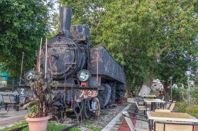 In KYPARISSIA drehen wir eine Runde durch den stillgelegten Bahnhof der Schmalspurbahn. Eine vor sich hin rostende Dampflok fristet ihr trauriges Dasein als Blickfang für eine Taverne, Ziegen grasen auf den Bahnsteigen. Das tut dem Spross einer Eisenbahnerfamilie in der Seele weh.