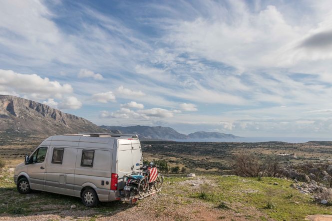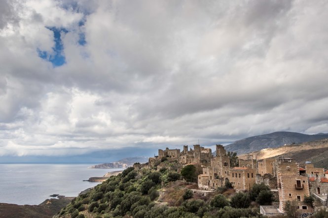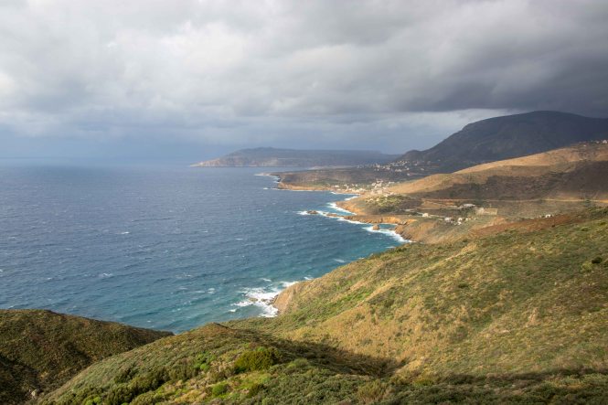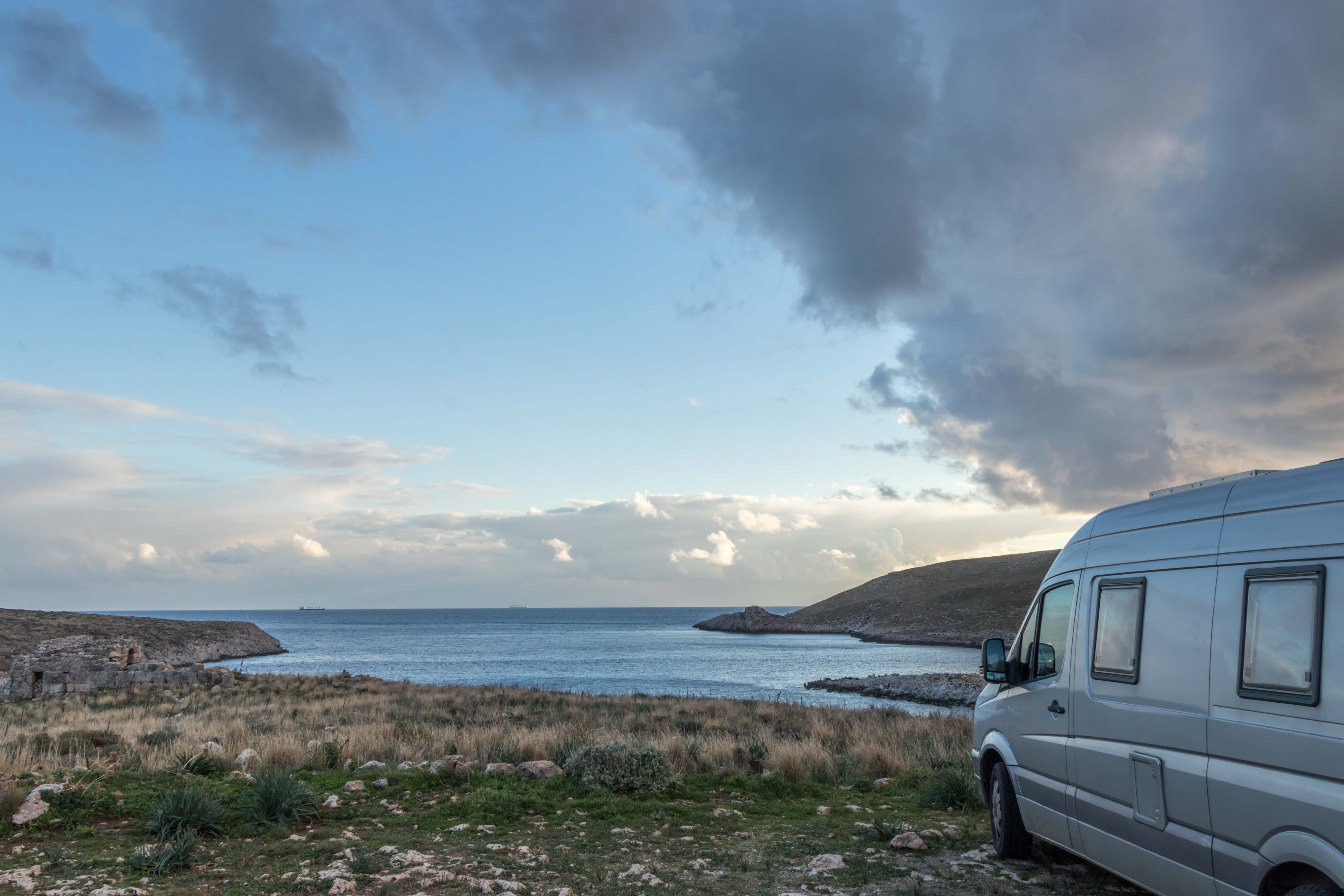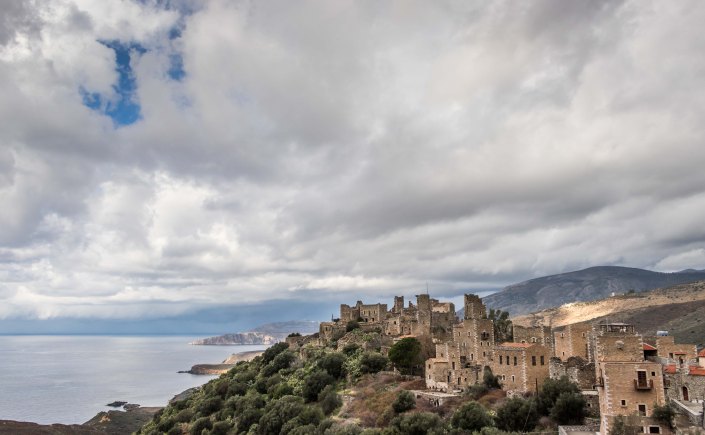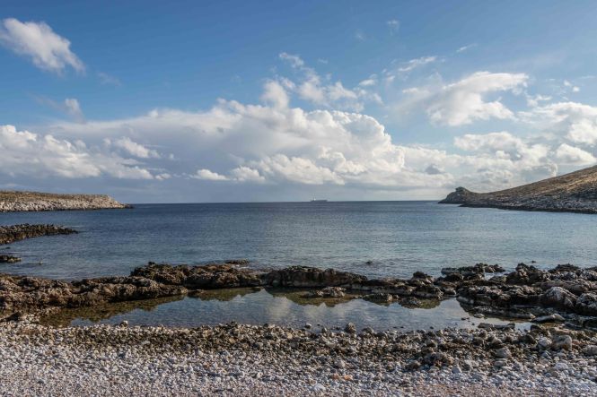 Die MÀNI, der mittlere Finger des Peloponnes, ist eine schroffe Landschaft mit trutzigen Dörfern, die von wehrhaften Türmen beherrscht werden. Über die Feiertage tingeln wir durch diese pittoreske Landschaft, übernachten in einer lauschigen kleinen Bucht oder auf kleinen Aussichtsbalkonen. Peter wandert auf den ein oder anderen Berg und erkundet einige der zahlreichen kleinen Kapellen und verlassenen Städte. Selbst in die zum Kuhstall umfunktionierten Gotteshäuser sind die verblassten Gemälde zu sehen, antike Säulen liegen herum. Hinter dem verlassenen VÀTHIA kommen wir ans Ende der Welt, zum KAP METAPAN oder TENARO, wie es die Manioten noch heute nennen. Wir fahren bis zum antiken TENARO, einer einst blühenden Stadt, von der nicht viel übrig blieb und halten beim Heiligtum und Totenorakel des Poseidon. Herkules zerrte hier den Höllenhund Kerberos ans Tageslicht, in den kleinen Buchten ankerten römische Handelsschiffe und die Kreuzfahrer bunkerten Proviant und rekrutierten Söldner. Am 28. März 1941 siegte die britische Royal Navy in einer Seeschlacht zwischen dem Kap und Kreta über die italienische Regia Marina, die sich danach nicht mehr auf dem Mittelmeer sehen ließ. Peter wandert zum (fast) südlichsten Punkt Europas, gerade einmal 40 Kilometer ragt Gibraltar weiter in den Süden, sogar Tunis und Algier liegen nördlicher. Nahe dem Kap ist das CALYPSOTIEF, mit 5 121 Metern der tiefste Punkt des Mittelmeeres. Dann sitzen wir im Dicken, warten den ein oder anderen Regenschauer ab und beobachten die vielen riesigen Schiffe, die vorbei ziehen. Bei Sonnenschein springen wir sogar kurz in die klaren Fluten. In der Nacht schlägt das Wetter wieder um. Der stürmische Südwind bringt Wärme, graue Wolken und Regen, nur ab und zu spitzt die Sonne am Morgen noch einmal hervor. Das neue Jahr soll uns laut Wetterbericht mit Sonne begrüßen. Dann hoffen wir, dass die Wettermodelle der Meteorologen diesmal stimmen.