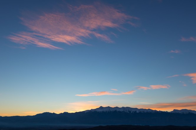 Nach der ruhigen Silvesternacht, gerade einmal drei Böller machten Krach, wachen wir am Morgen gut ausgeschlafen bei traumhaftem Wetter auf: blauer Himmel, Windstille, leuchtend weiße Berge und am Nachmittag 20,5 Grad. So kann das Wetter bleiben, auch auf die Gefahr hin, dass die Bilder etwas langweilig werden.