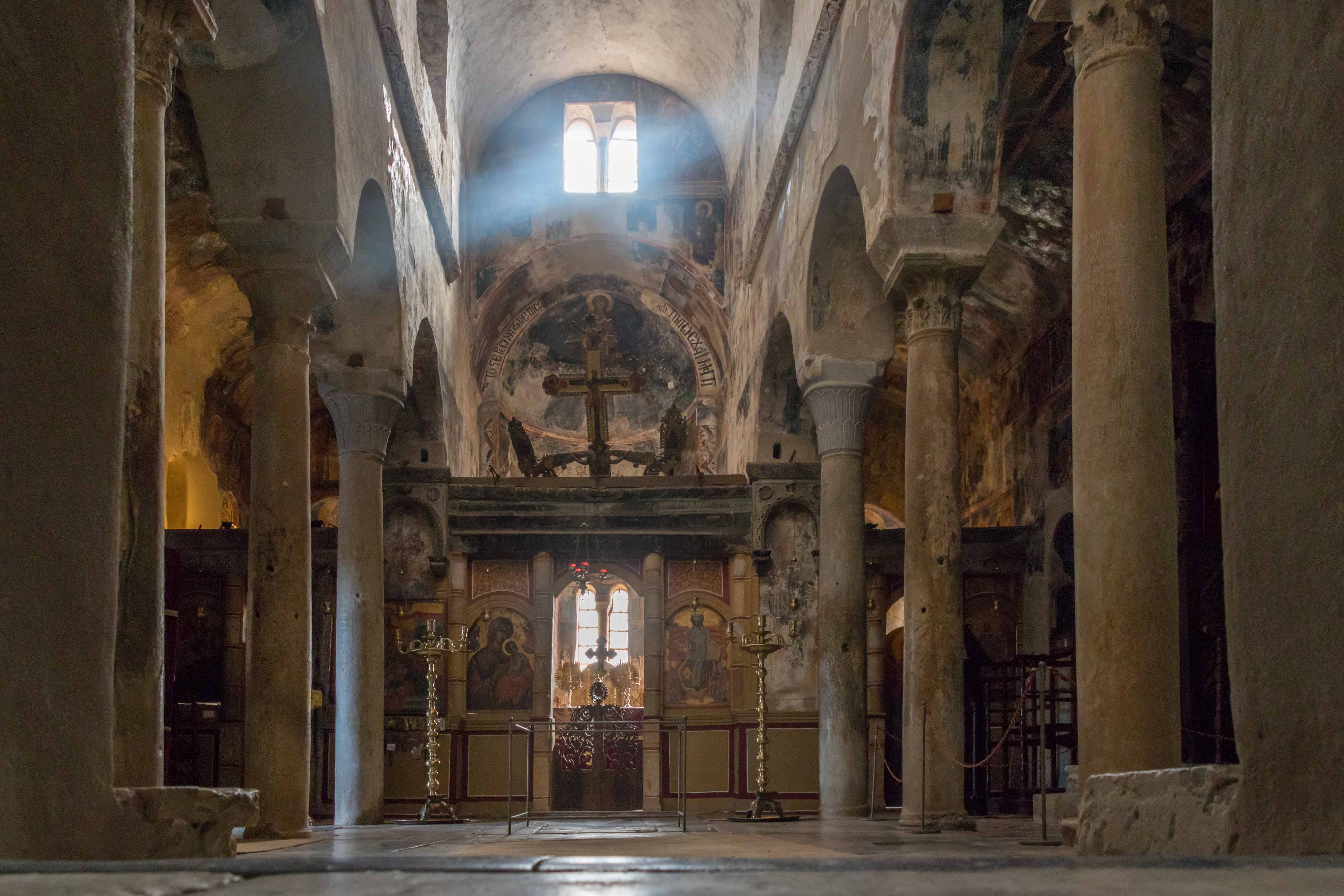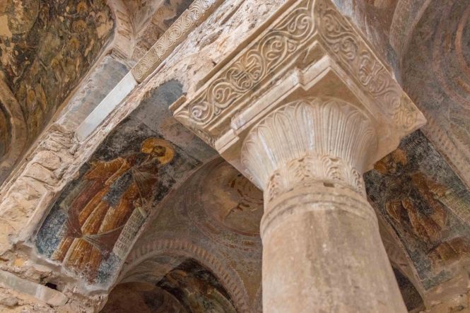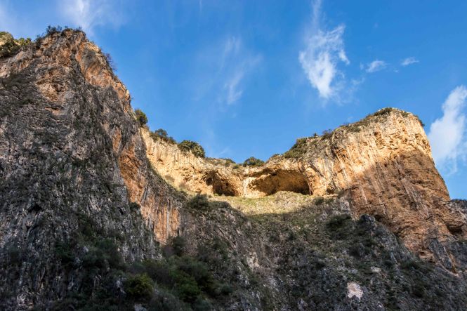 Am 2. Januar freuen wir uns auf den Einkauf beim Lidl, alle unsere „heimischen“ Produkte sind aufgebraucht. Doch wir stehen vor verschlossenen Toren. Auch alle anderen Geschäfte haben heute geschlossen. In SPARTA finden wir einen offenen Bäcker, so bekommen wir zumindest ein frisches Sesambrot. Da die einst mächtige Stadt mit ihrer ehemals besonderen militärisch ausgerichteten Staatsform sonst wenig zu bieten hat, fahren wir zur LANGODIOTISSA-SCHLUCHT weiter. Dies war möglicherweise der Ort, den die antiken Spartaner Apothetai nannten. Der mächtige Ältestenrat begutachtete alle Neugeborenen und entschied über deren Lebenswert für den Staat. Schwächliche Kinder mussten von den Eltern im Apothetai ausgesetzt werden und hier jämmerlich sterben. Vielleicht war es der Ort, an dem heute die Höhlenkapelle PANAGIA LANGADIOTISSA steht, mit Fresken aus dem 14. Jahrhundert.