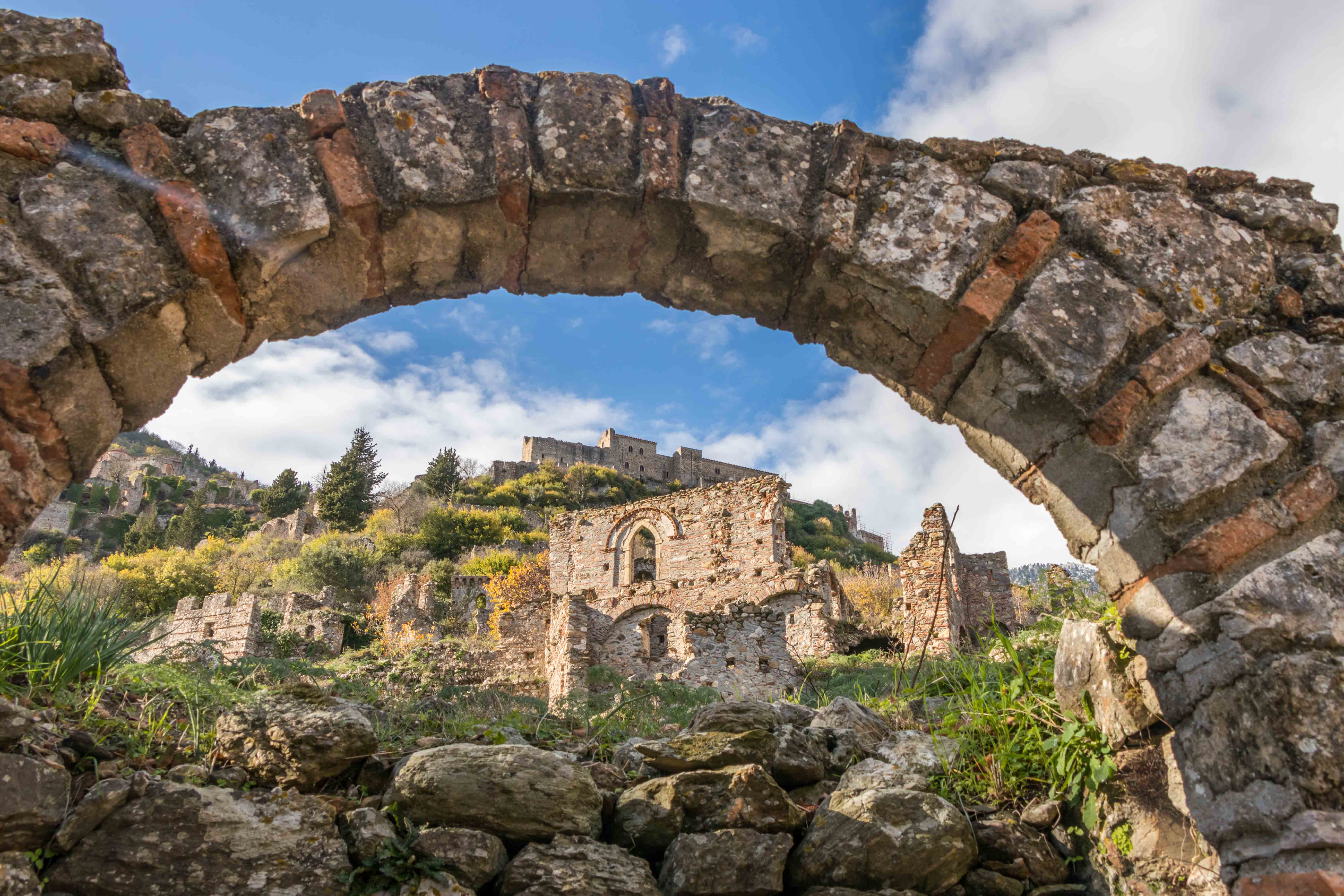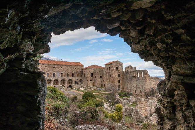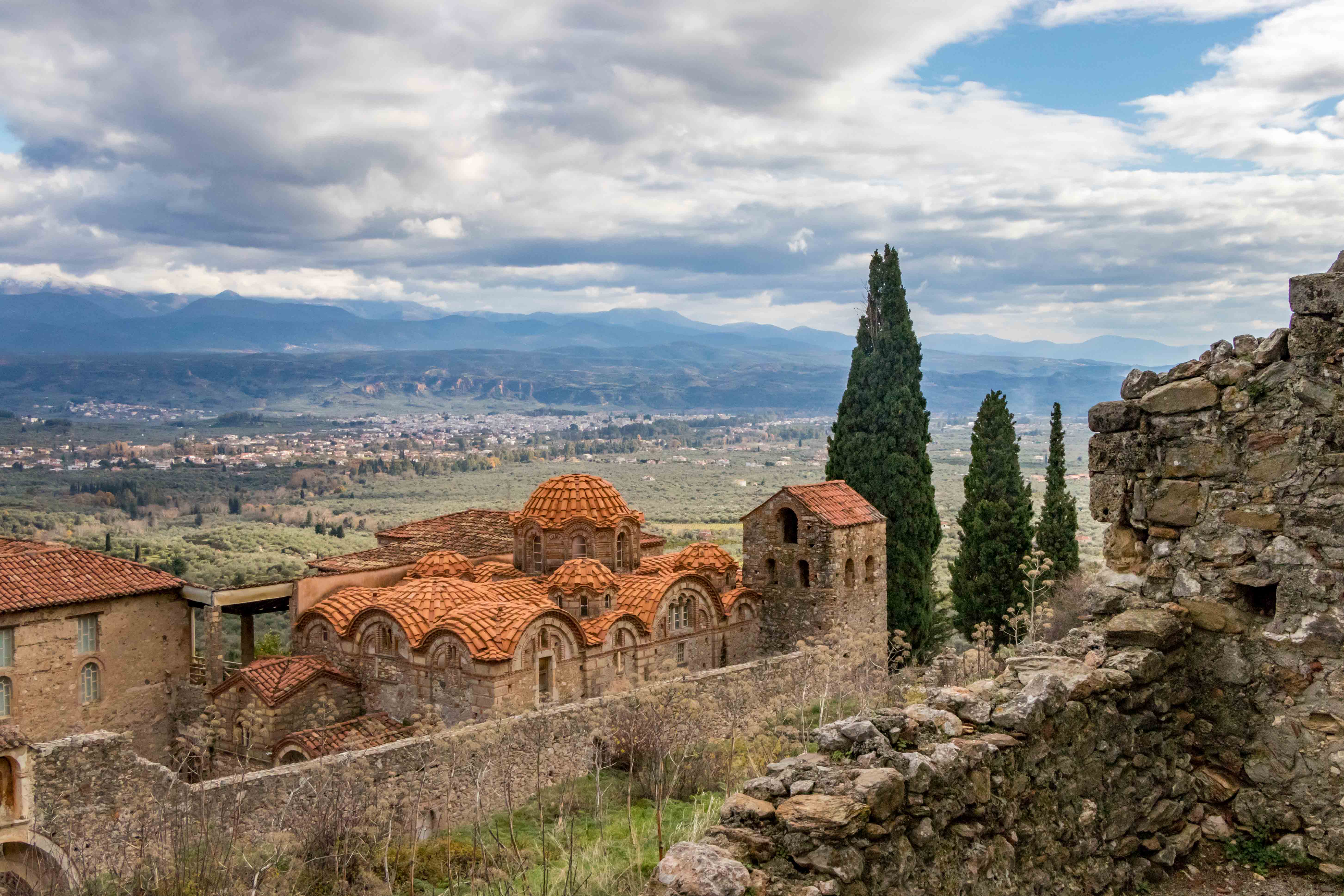 Hoch auf einer der vielen Vorgipfel des TAÝGETOS steht die weithin sichtbare fränkische Festung MISTRAS, die Guillaume II. de Villeardouin im Jahre 1249 über den Ruinen des antiken Sparta erbaute. Lange konnte er sich nicht der grandiosen Aussicht seiner Burg erfreuen, ließ er sich doch vom byzantinischen Kaiser gefangen nehmen und nur durch die Herausgabe seiner Burg kam er wieder auf freien Fuß. Im heute wieder aufgebauten Despotenpalast wurde der letzte byzantinische König am 6. Januar 1449 gekrönt. Danach kamen die Osmanen, anschließend die Venezianer und wieder die Türken. Im griechischen Freiheitskampf wurde MISTRAS so stark zerstört, dass man lieber das verlassene SPARTA wieder aufbaute. Heute sind von den vielen Gebäuden vor allem die vielen Kirchen und Klöster erhalten und teilweise restauriert. Stundenlang streunen wir durch die Ruinen an dem steilen Hügel, schauen in jede der zahlreichen Gotteshäuser und bedauern die Einwohner, die jede Flasche Wein die vielen und steilen Treppen hinauf tragen mussten.