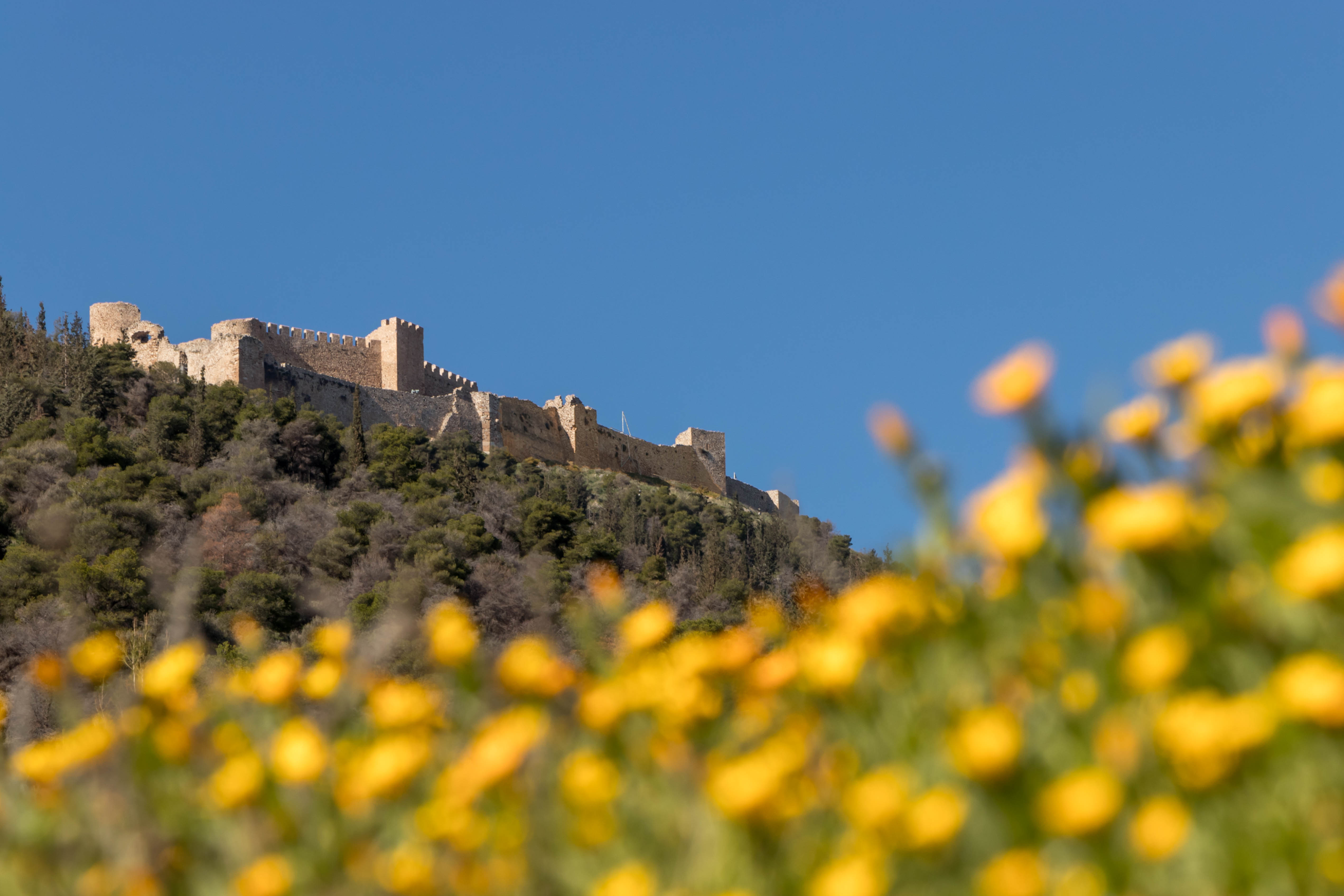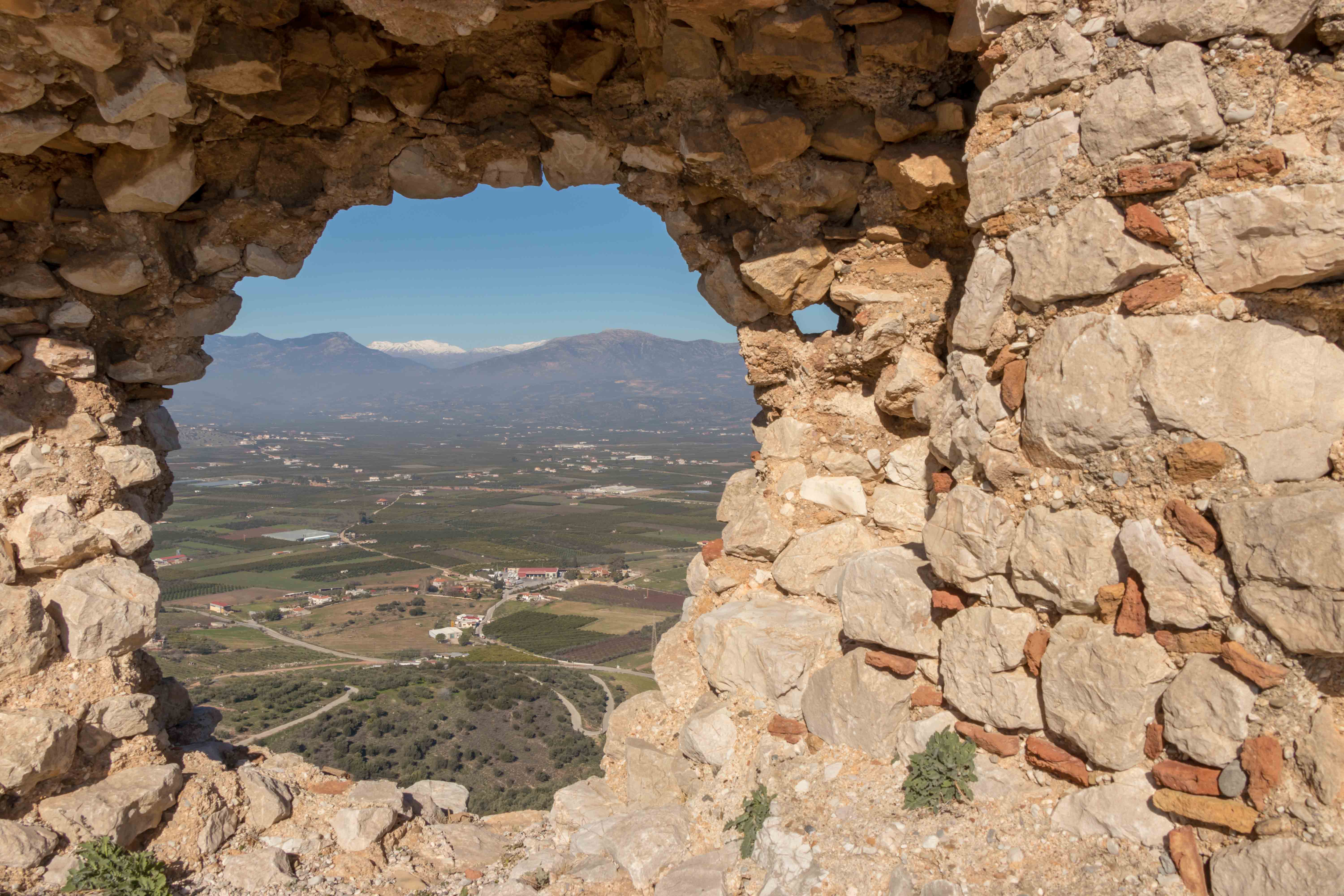 Um nicht wieder im Nebel aufzuwachen, fahren wir knappe 300 Höhenmeter hinauf zur Festung Lárissa. Die in letzter Zeit mit 1 Mio. € renovierte Burg, auch EU-Mittel sind dabei, ist wieder zugänglich. Auf antiken Fundamenten erbauten Byzantiner im 10. Jh. die Burg in der heute noch erhalten Form. Da der Blick von hier auf den ARGOLISCHEN GOLF und in die schneebedeckten Berge so grandios ist, richten wir uns gleich für den restlichen Tag ein.