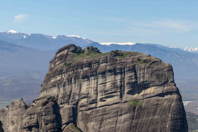 Der „Steinerne Wald“ von METÉORA gehört zu den schönsten und bizarrsten Landschaften Griechenlands. Das fanden wohl auch die Mönche, die ab dem 9. Jh. erst als Eremiten in den unzähligen Höhlen lebten und ab dem 12. Jh. 23 Klöster auf die Felsnadeln bauten. Und der Name Metéora wird seiner Bedeutung durchaus gerecht: „In der Luft zwischen Himmel und Erde schweben.“ Heute sind noch ein halbes Dutzend der Gotteshäuser erhalten und auch wieder von Mönchen und Nonnen bewohnt. Weltweit bekannt wurde diese Landschaft durch den James-Bond-Film „In tödlicher Mission“, indem Roger Moore als 007 in einem Netz das Kloster AGÍA TRÍADA entert. So sind die frommen Bewohner weit von der Weltabgeschiedenheit entfernt, die sie einst als Eremiten hier suchten.