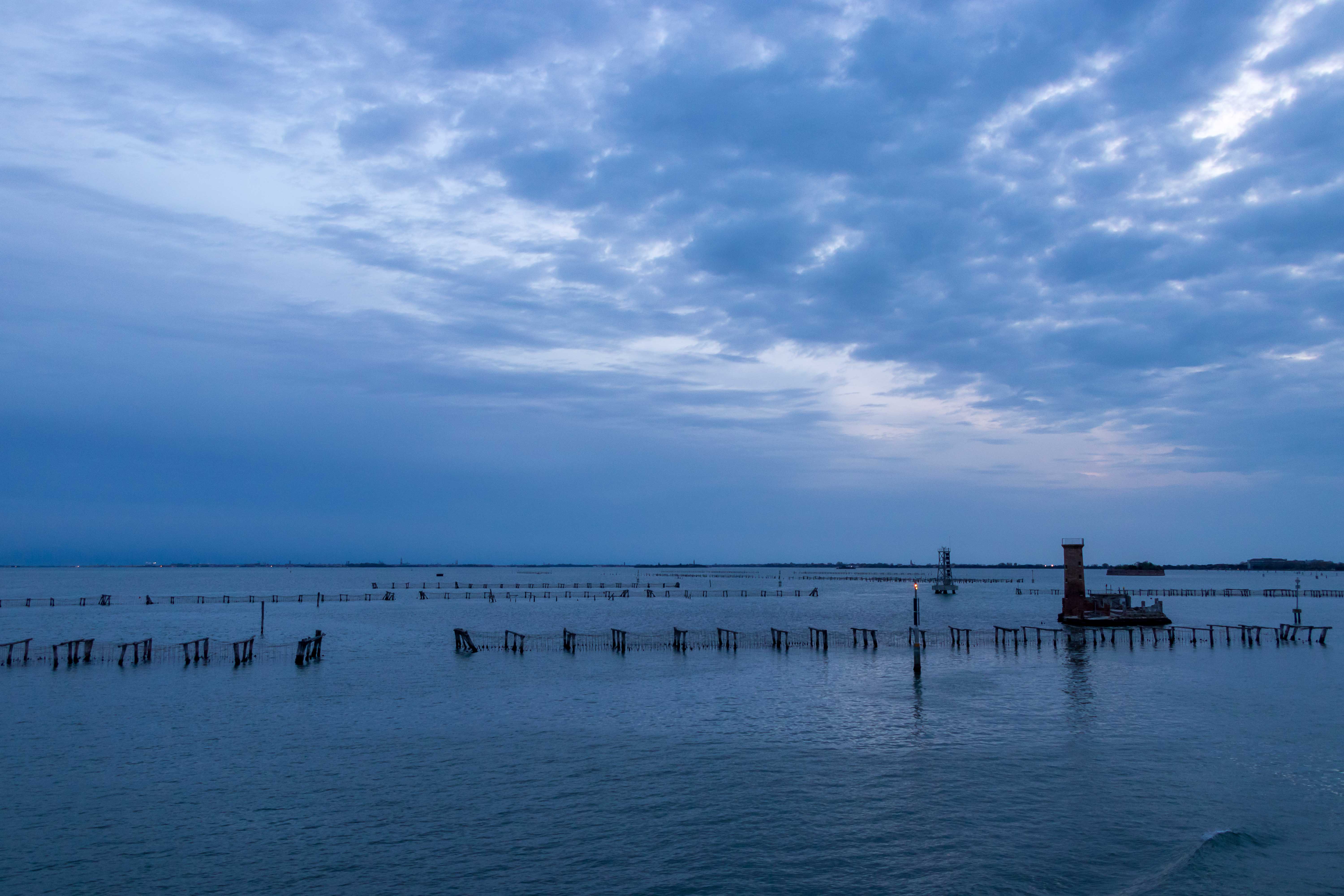 KORFU zieht vorbei, ALBANIEN verschwindet langsam im dichten grauen Dunst des Saharastaubes. Susanne erspäht ein paar Delfine, macht den fertig gekochten Sauerbraten warm, ansonsten passiert nicht viel, wir sehen nur Wasser. Am Morgen gegen 7 Uhr, nach 1000 km ruhiger Seefahrt, erscheint VENEDIG im blauen Morgenlicht der Lagune. Leider ankern wir in MESTRE und fahren nicht wie früher am Markusplatz vorbei. Vor VENEDIG liegen bereits vier riesige Kreuzfahrschiffe, d.h. in den nächsten Stunden werden die ersten 10 000 Touristen über die Stadt herfallen.
