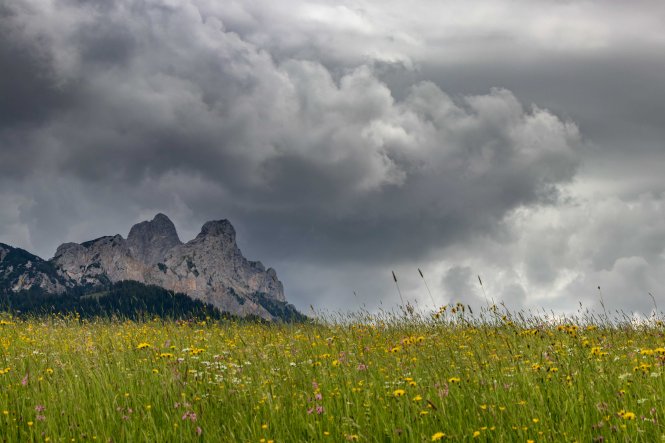 Es ist nun schon wieder einige Zeit her, Ende Mai war es, als wir das TANNHEIMER TAL besuchten. Das Wetter die Tage davor war recht durchwachsen, schwere graue Wolken brachten über den Tag Gewitter und Regen. So hofften wir, dass die Bauern die farbenprächtigen Wiesen noch nicht zu Winterfutter verarbeitet hatten. Und wir hatten Glück, überall im Hochtal, laut Eigenwerbung, das schönste in Europa, leuchteten noch die Wiesenblumen. Gelb, lila, rosa, weiß, dazwischen eine Vielzahl filigraner Gräser; die Natur hat vielfältige Arrangements zusammengestellt.
