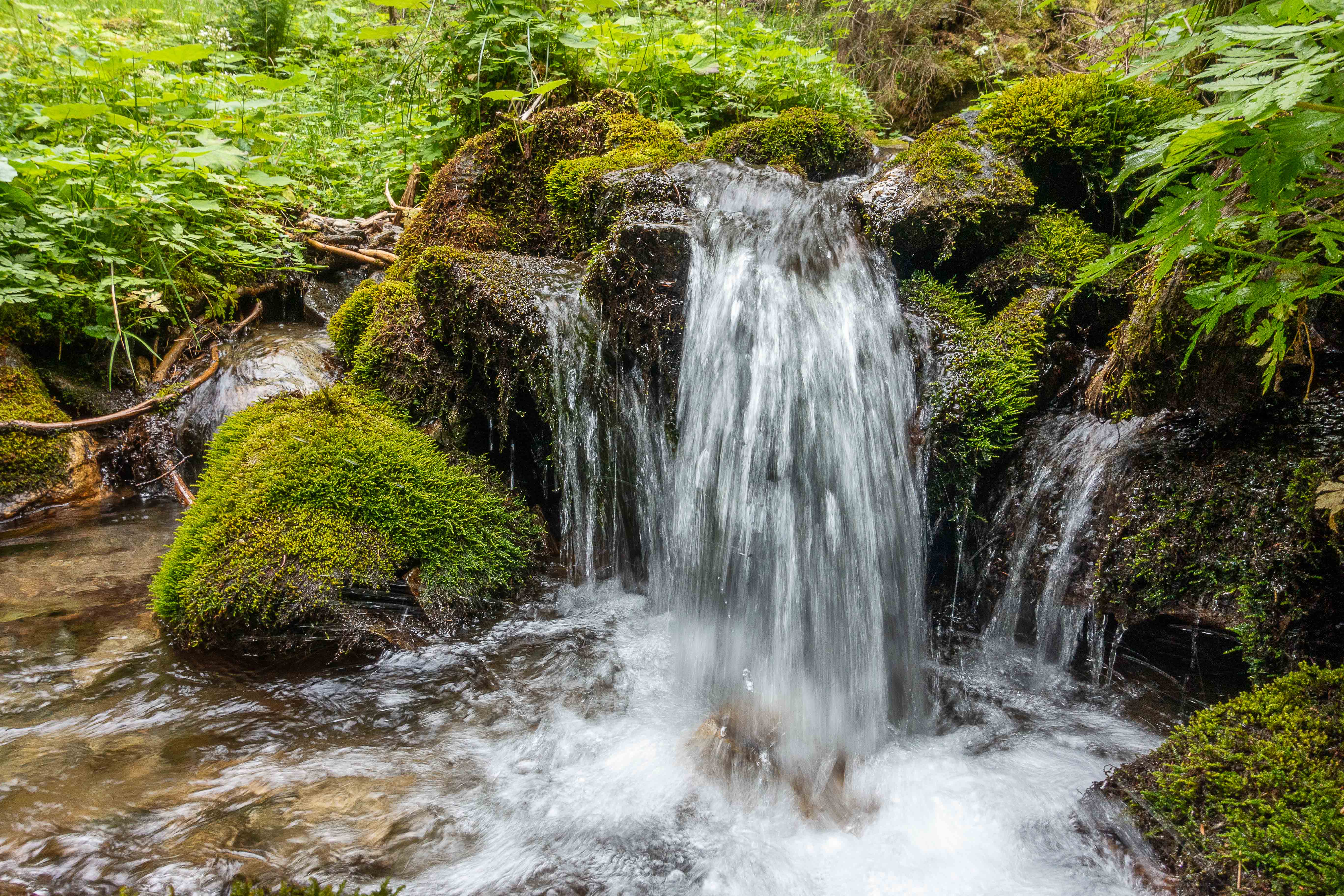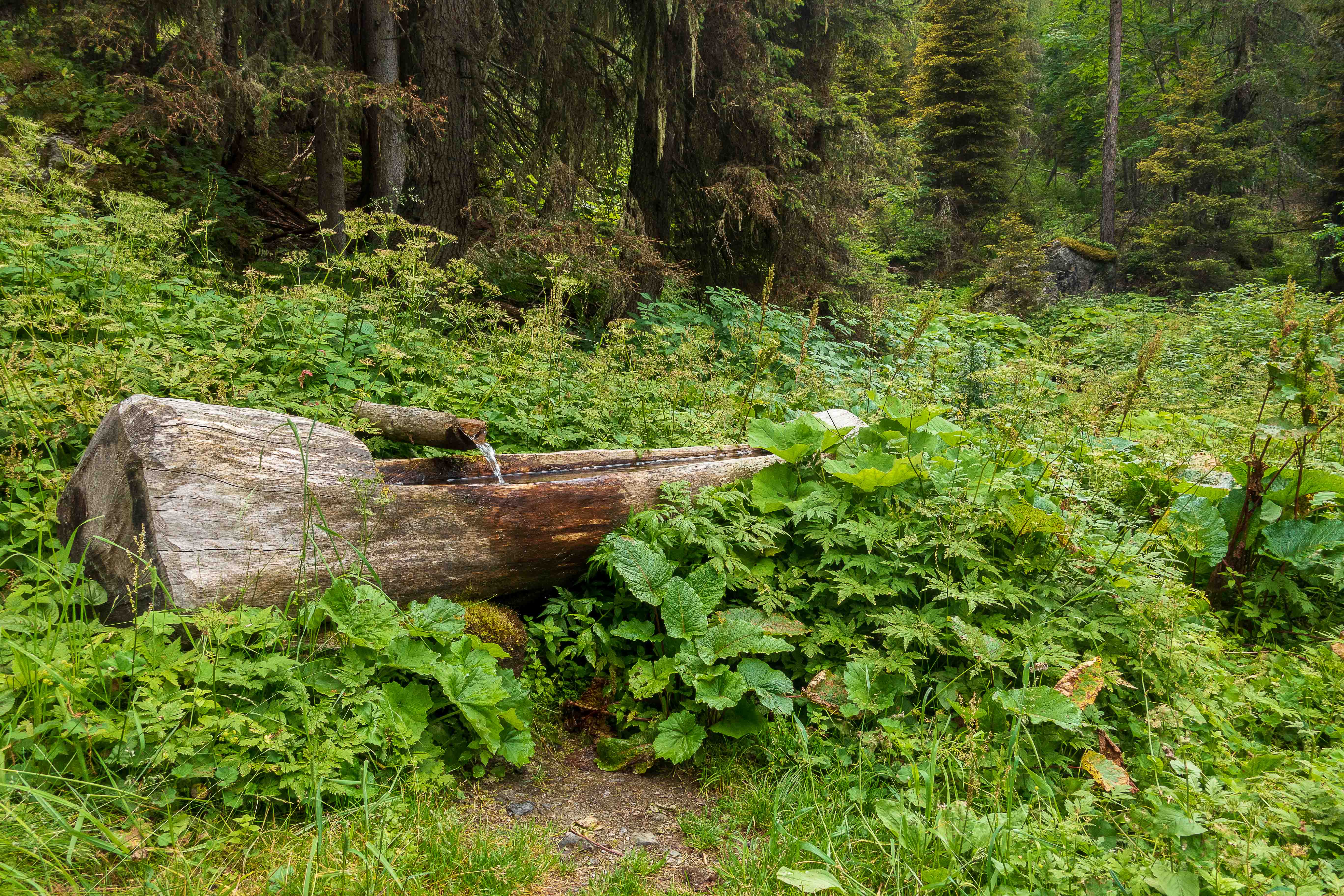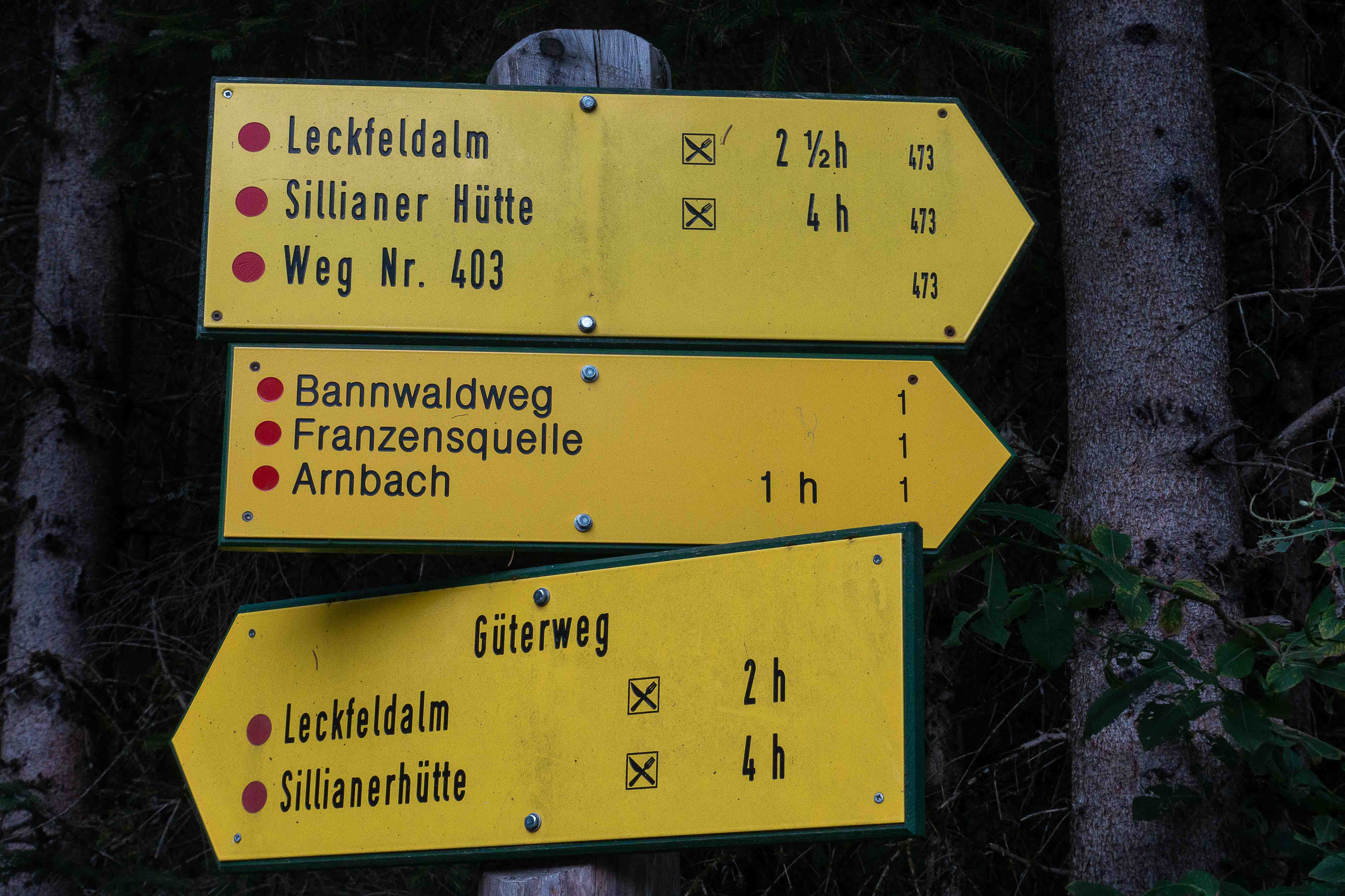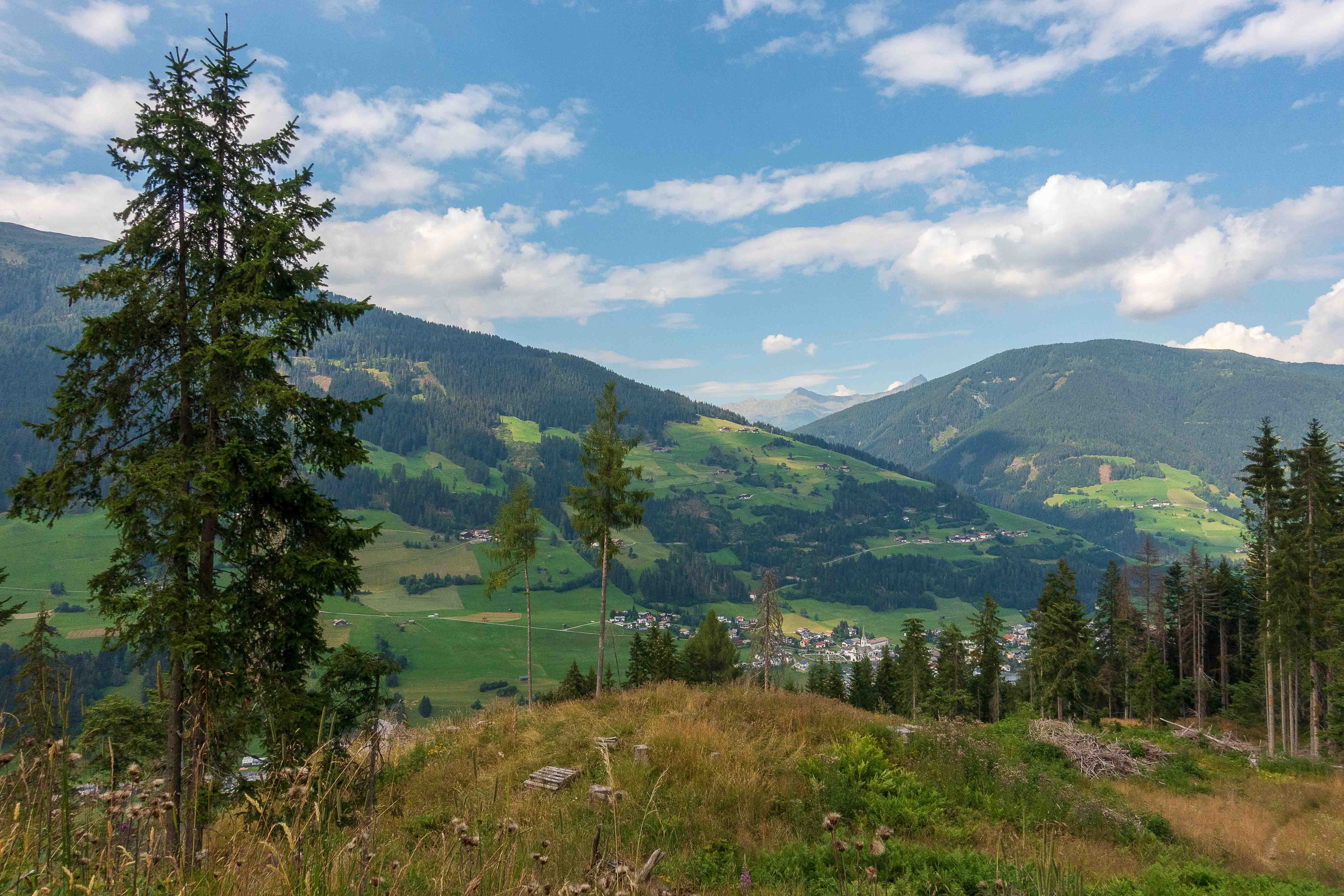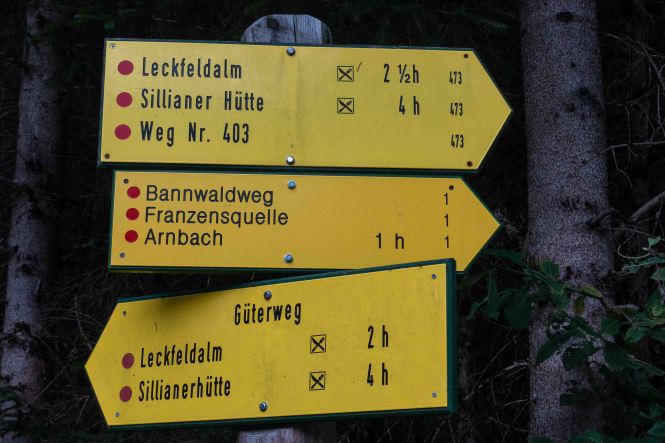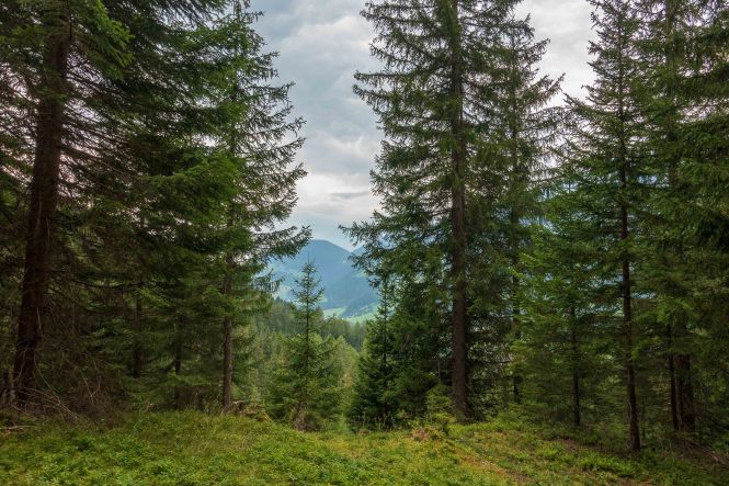 Nachdem ich noch einige Tage auf die Genesung unseres Dicken warten musste, fahre ich über die FELBERTAUERNSTRASSE nach SILLIAN. Heute ist einer der heißesten Tage in dem ehe schon lang währenden heißen Sommer. Auch im PUSTERTAL hat es auf immerhin 1100 m ü. A. (wird in Österreich verwendet und bedeutet: Meter über Adria) 32 Grad C. Als sich die bedrohlichen dunklen Wolken verziehen, starte ich am frühen Nachmittag meine Tour, es ist ja noch lange hell und ich habe viel Zeit, meine ich. Mein erstes Tagesziel ist der HELM, am westlichen Rand der KARNISCHEN ALPEN gelegen und ein wunderbarer Aussichtsberg. Es muss toll sein, dort oben die Nacht alleine und ohne die Touristenmassen zu verbringen. Hinauf führt der alte HELMWEG, der nun HEIMATWEG heißt und die einst durch die Staatsgrenze getrennten Orte SILLIAN und SEXTEN verbindet. Die mächtigen Bäume spenden zwar Schatten, aber der Weg ist steil und es ist schwül, es regnet ein paar Tropfen und die Sonne zaubert einen Regenbogen, der Schweiß rinnt in Strömen. Die reifen Brombeeren schmecken wunderbar süß, ein sprudelnder Bach verhilft zur kurzzeitigen Erfrischung. Anfangs geht das Laufen gut, auch wenn der Rucksack mit Zelt, Matte, Schlafsack und vielen Müsliriegeln schwer auf den Schultern liegt. Dann werden die Schritte kürzer, die Pausen immer mehr und länger. Gegen 20 Uhr stehe ich oberhalb der Baumgrenze, aber immer noch 200 m unter dem Gipfel des HELMS, ich kann nicht mehr. Gut, dass ich meine eigene Hütte dabei habe. Schnell ist das Zelt aufgestellt, in diesem Jahr sogar ausreichend mit Heringen befestigt, und ich liege schon flach. Von Nordosten ziehen schwarze Wolken heran, doch bis auf ein paar Tropfen bleibt es trocken. Endlich wird es etwas kühler. Als ich nachts kurz aufwache, staune ich über den gigantischen Sternenhimmel.