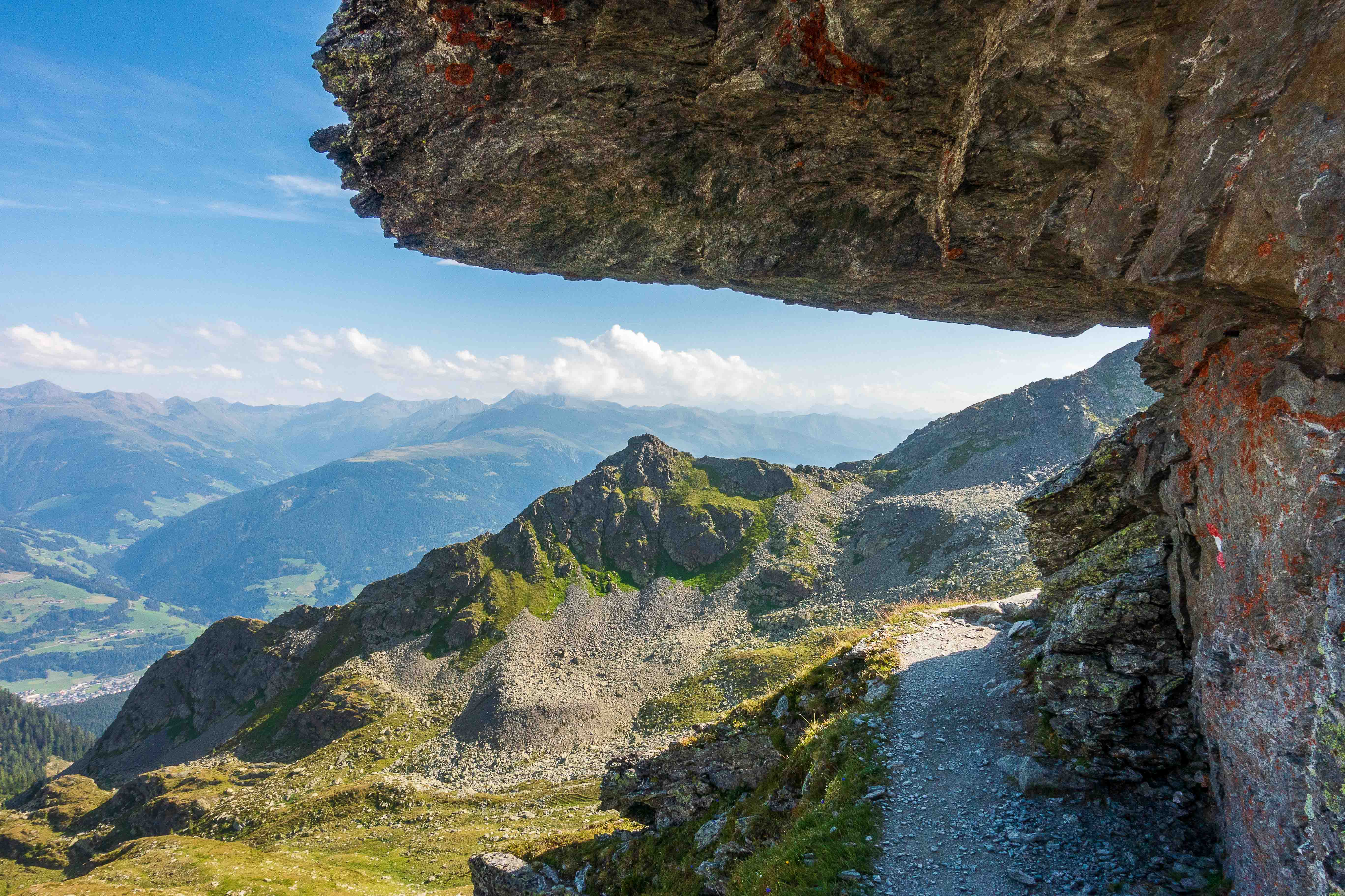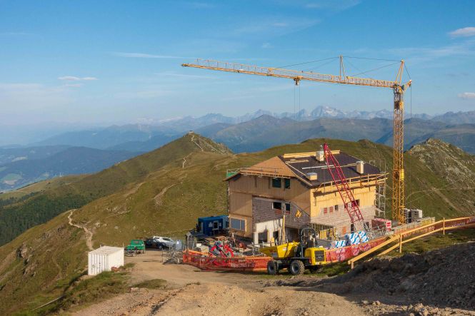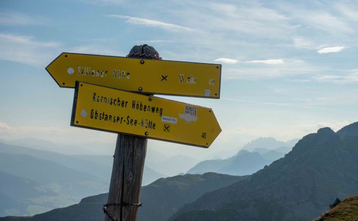 Der Weg zur SILLIANER HÜTTE ist breit, gemütlich und aussichtsreich. So kann ich unbeschwert den Blick schweifen lassen ohne auf meine Beine schauen zu müssen. An der erst 1986 eingeweihten Berghütte sind die Handwerker schon seit Stunden lautstark am Arbeiten. Nächstes Jahr soll sie im neune Glanz den Wanderern wieder zur Verfügung stehen.
