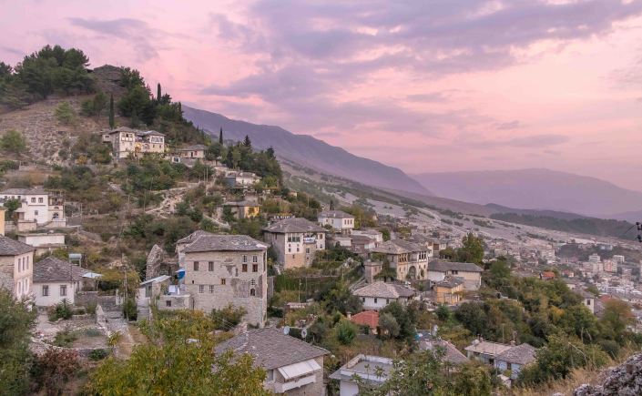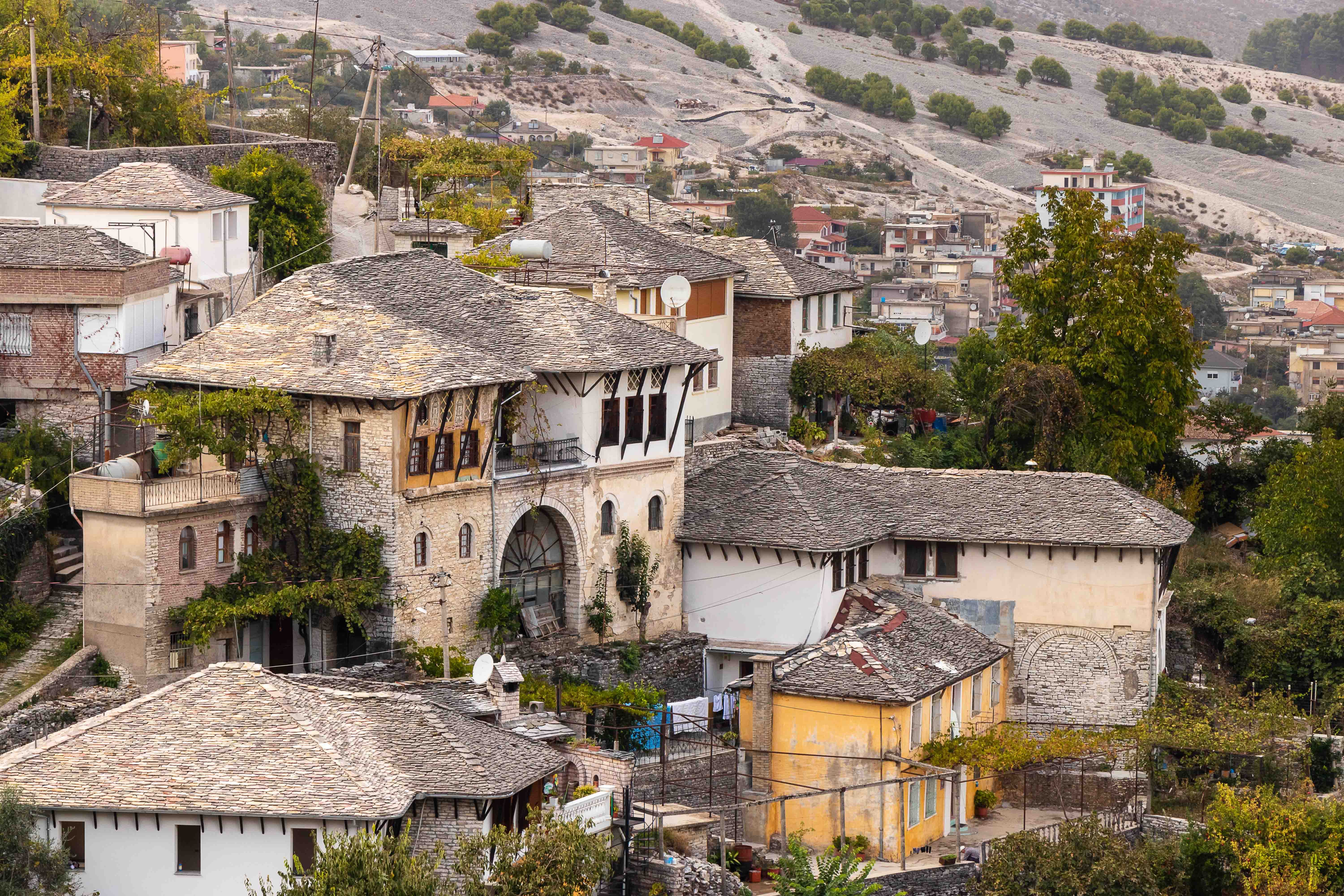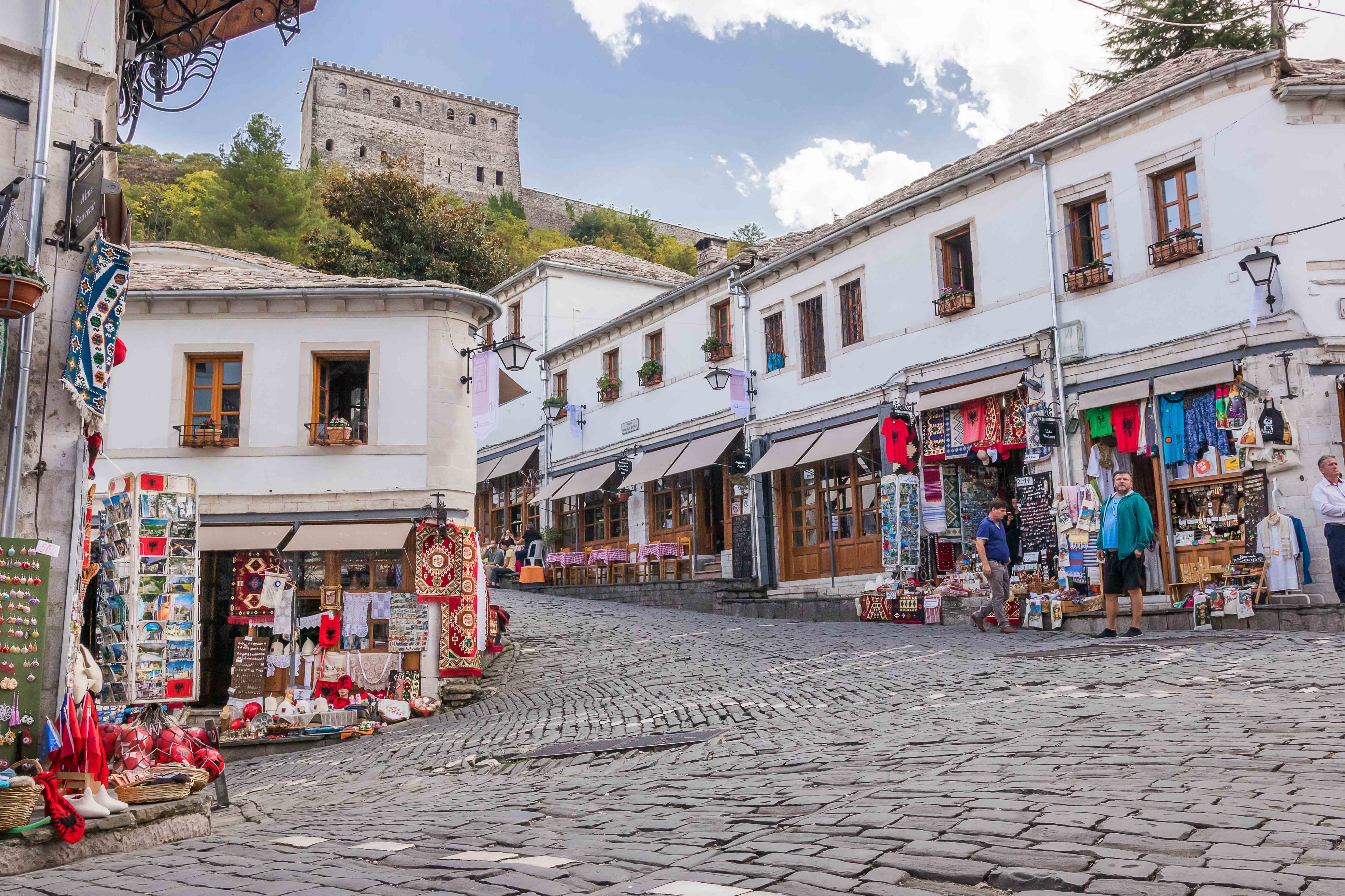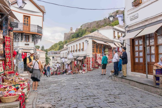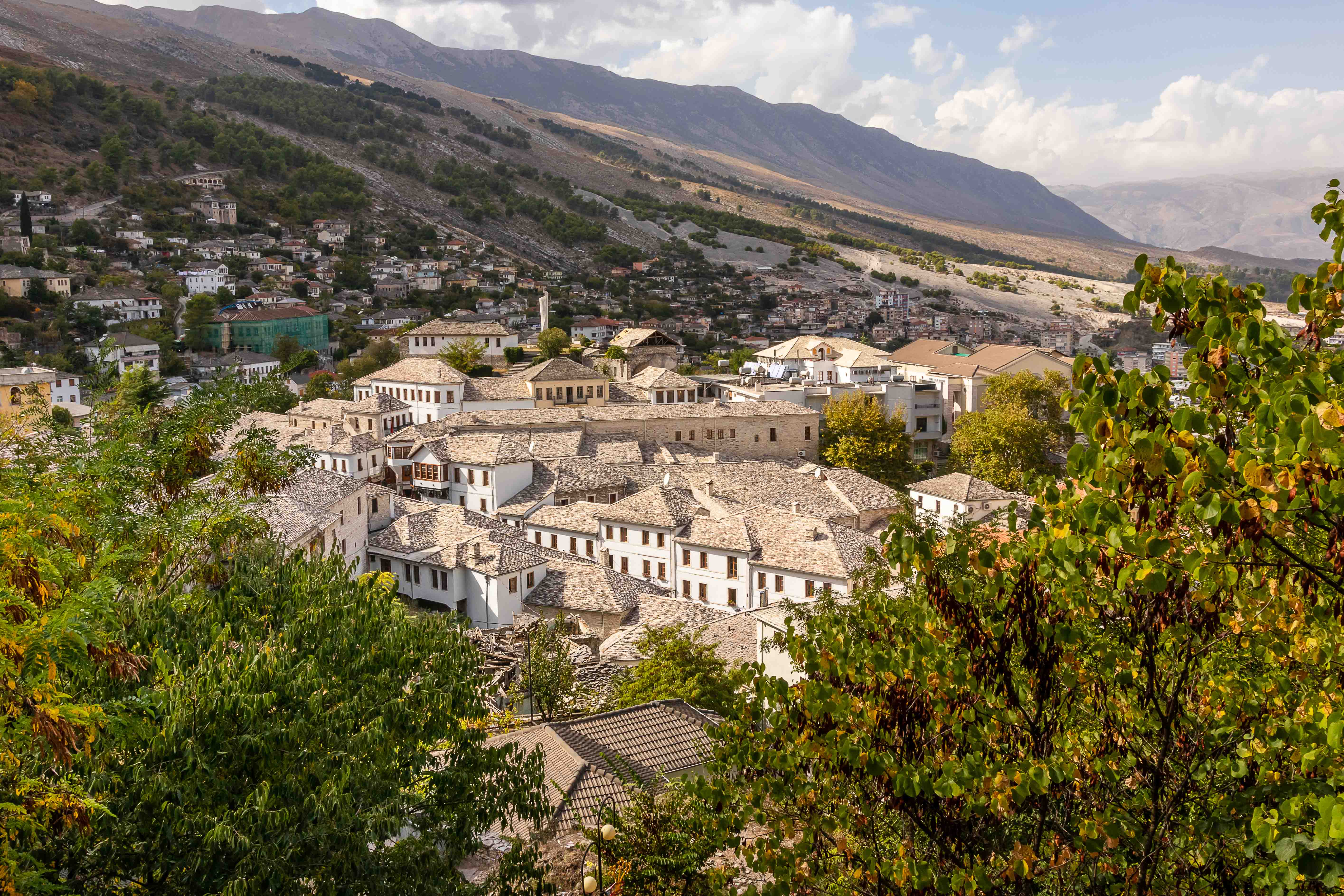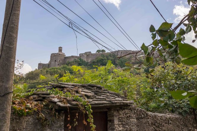 Die erste Station in dem einst abgeschotteten Land ist die Stadt aus Stein: GJIROKASTRA, eine der albanischen Touristenattraktion und UNESCO-Weltkulturerbe. Kaum angekommen, schlendern wir schon stolpernd über das grobe Kopfsteinpflaster bergauf und bergab durch die engen Gassen. Einige der prächtigen Häuser sind vorbildlich restauriert, beherbergen nun Museen oder bieten Gästen eine stilvolle Unterkunft. Doch manchen Eigentümern ist diese Last zu viel oder sie haben einfach kein Geld für den teuren Unterhalt. So verfallen viele der steinernen Monumente. Für unsere Übernachtung zwängen wir unseren Dicken durch die engen Gassen hinauf auf einen Aussichtsplatz. Zwei Alte, der eine führt sein Schaf am Strick durch die Gassen, der andere macht mit seinem 2-jährigen Urenkel einen Abendspaziergang, besuchen uns und „nötigen“ uns zu einem großen Glas Raki.