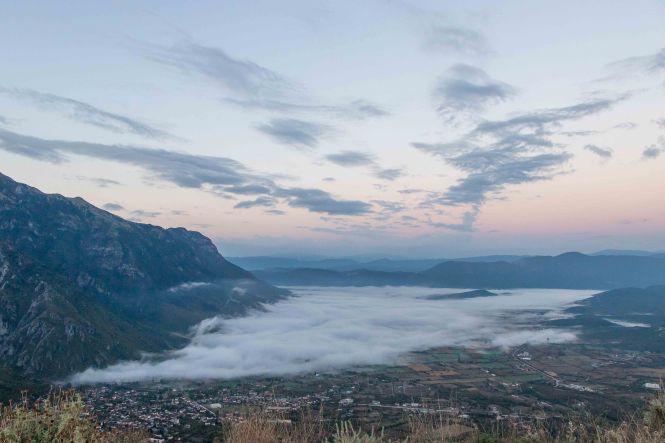 Am Morgen ist die Ebene von KONITSA und dem AOOS angefüllt mit Nebelschwaden. Von unserem Aussichtsbalkon kurven wir die vielen Serpentinen hinunter in die Ebene, halten uns jedoch immer am Rand des Wolkenmeeres, das sich nur langsam auflöst.