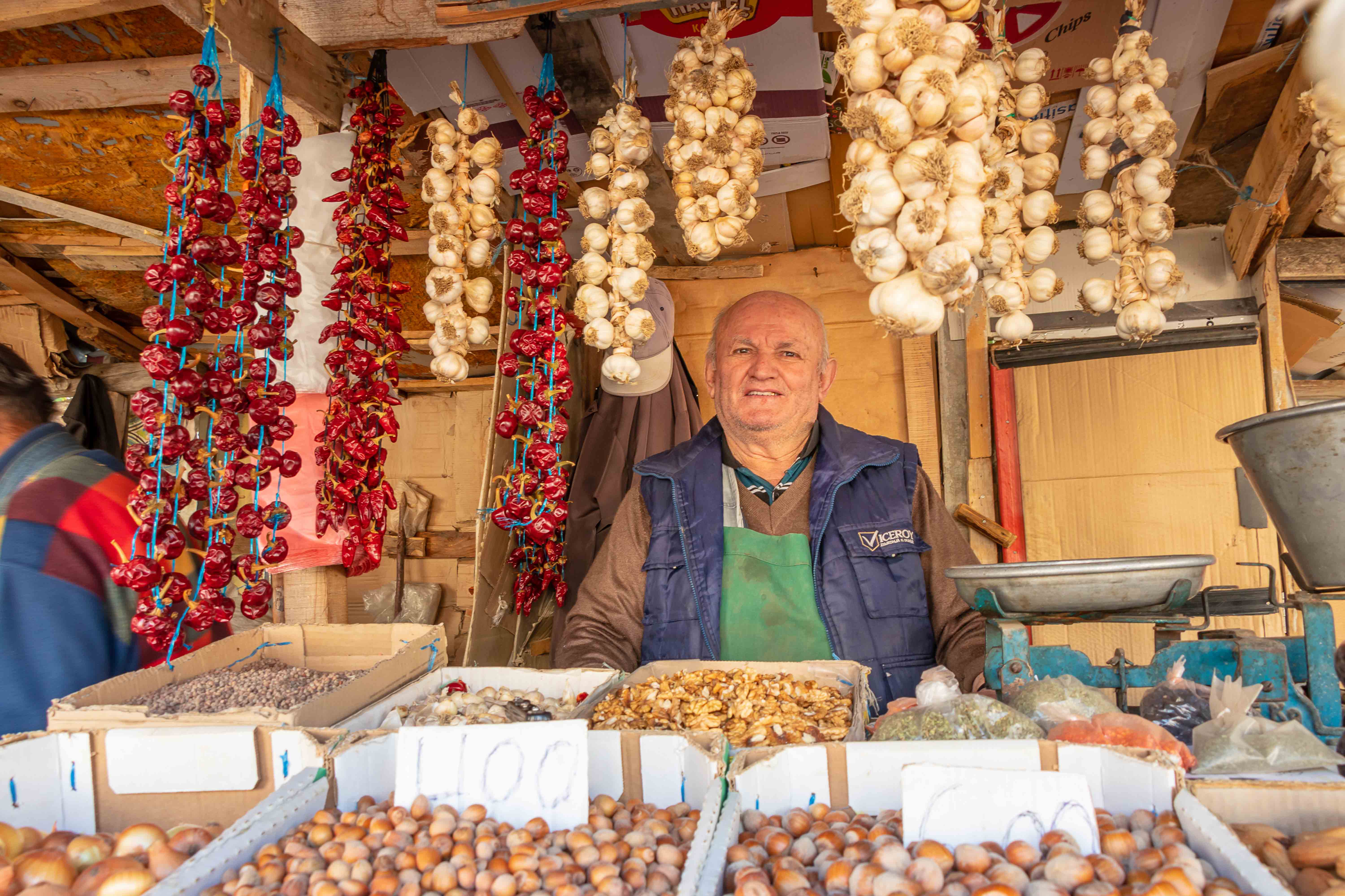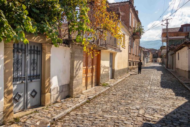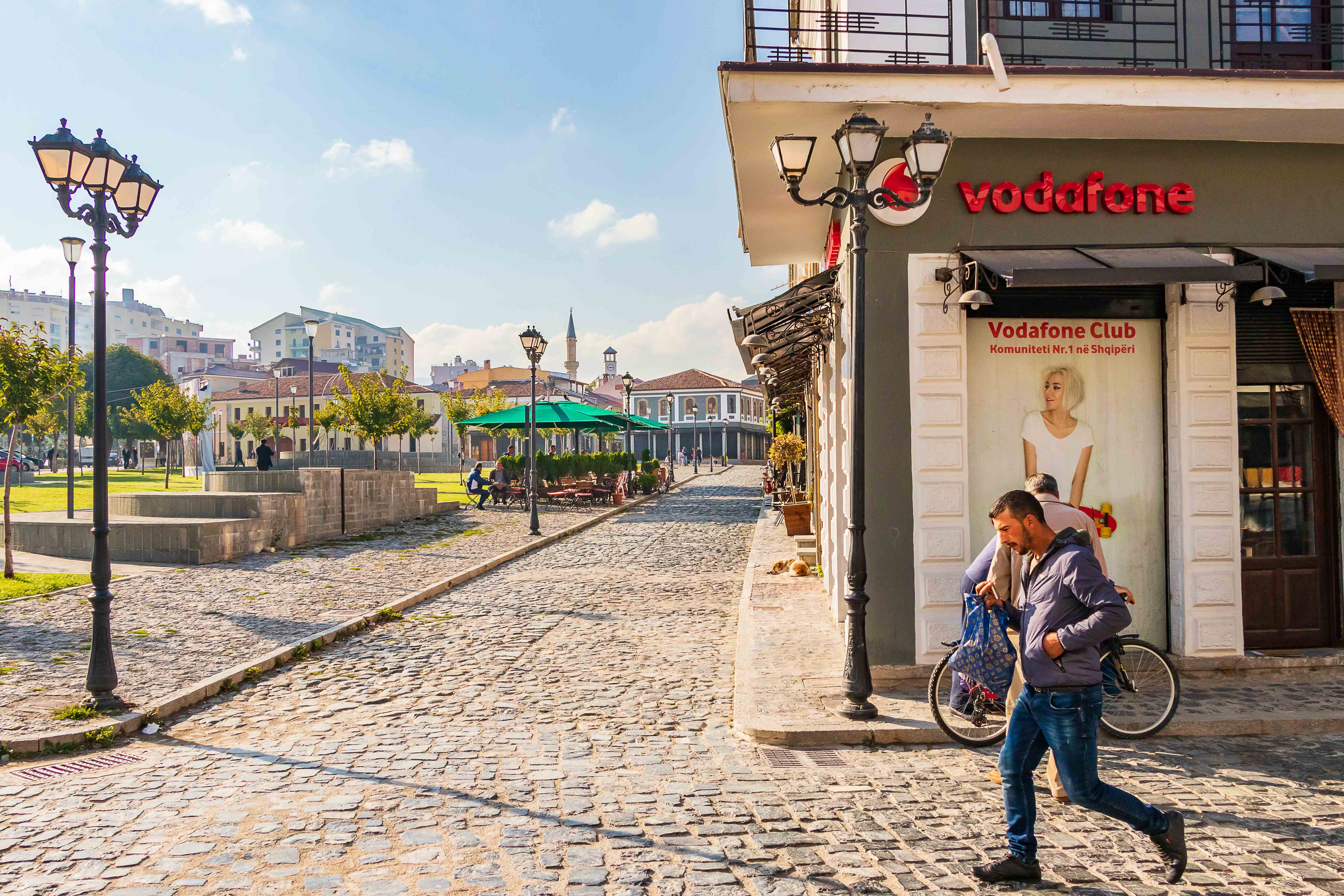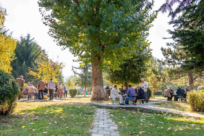 Ein netter und freundlicher Bauleiter, den Peter auf einer Wanderung bei einer Kirche getroffen hatte, schwärmte von seiner Heimatstadt: KORÇA ist die schönste Stadt im Land und die Mutter Albaniens. Also machen wir uns auf den Weg. Zu unserer Beruhigung finden wir nach einigem Suchen einen bewachten Parkplatz und starten unseren Rundgang. Wir sind ganz gespannt und dann freudig überrascht, die Stadt gefällt uns ausgesprochen gut, sie ist lebendig und attraktiv. Rund um den alten Basar haben Händler in den Gassen ihre Stände aufgebaut und bieten neben Obst und Gemüse, Käse und Raki in Plastikflaschen, Fleisch und Fisch allerlei Dinge für den Haushalt an. So gefällt uns das. In den Parks sitzen die Männer und spielen leidenschaftlich Domino, in der Fußgängerzone flanieren Jung uns Alt, die Cafés sind bei dem herrlichen Wetter gut besucht und aus manchen unscheinbaren Lokalen riecht es verführerisch.