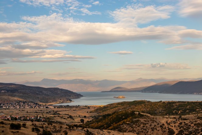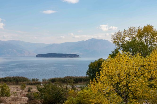 Nun sind wir schon wieder drei Wochen unterwegs und an unseren ersten „Zielen“ angelangt: den beiden PRESPA-SEEN und dem OHRID-SEE im Länderdreieck ALBANIEN, MAZEDONIEN und GRIECHENLAND. Im letzten Jahr hielt uns der frühe Wintereinbruch mit Schnee in den Bergen von der Fahrt zu den Seen im Landesinneren, immerhin 700 m hoch gelegen, ab. Dieses Mal verwöhnt uns das warme herbstliche Wetter mit angenehmen 20 Grad C. Zuerst besuchen wir den albanischen Teil des GROSSEN PRESPA-SEES. Doch das Ufer ist mit Schilf bewachsen und viele sehr arme Ortschaften halten uns ab, länger hier zu bleiben. So übernachten wir an einem höher gelegenen Picknick-Platz und genießen den wunderbaren Blick auf den See und die umliegenden Berge.