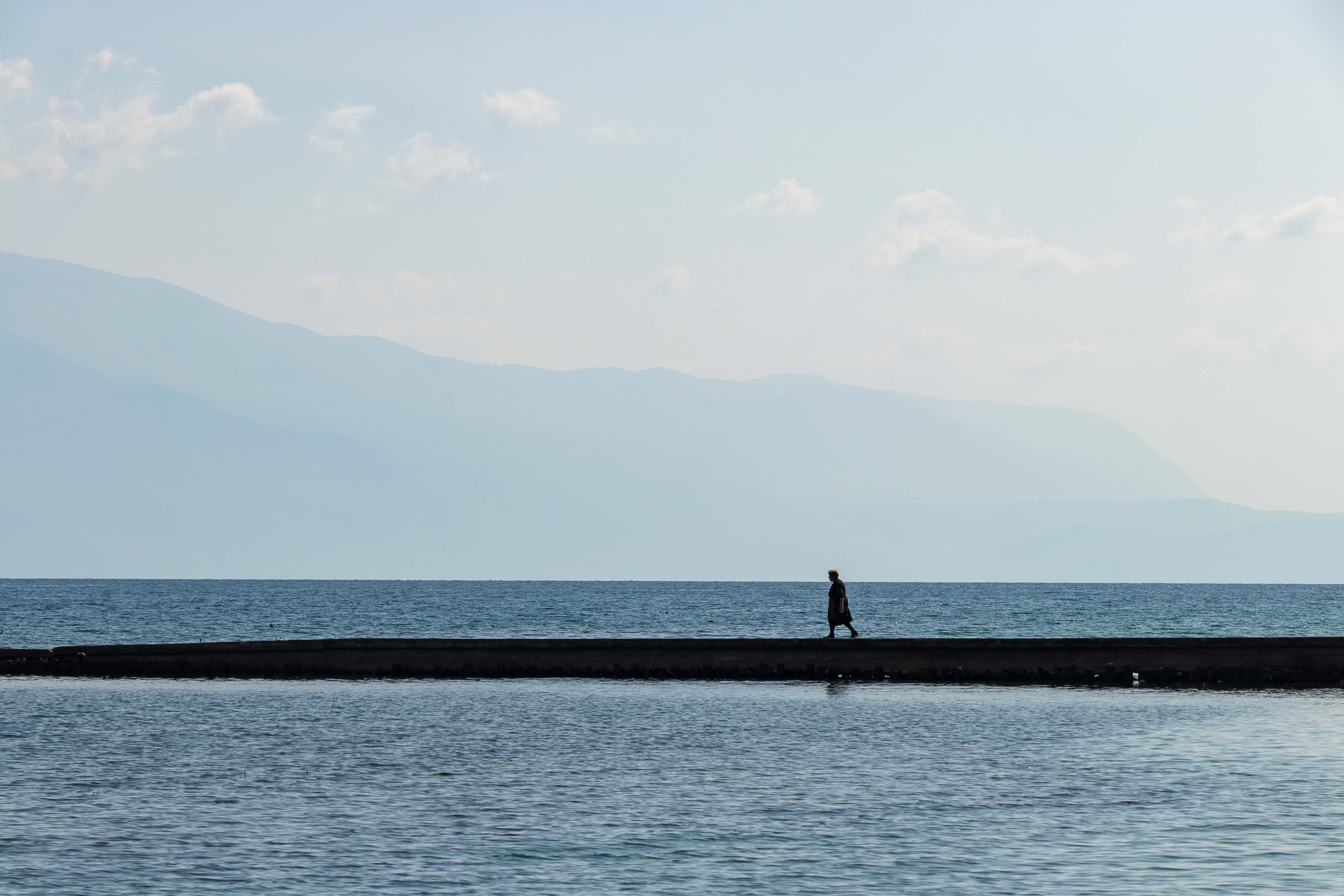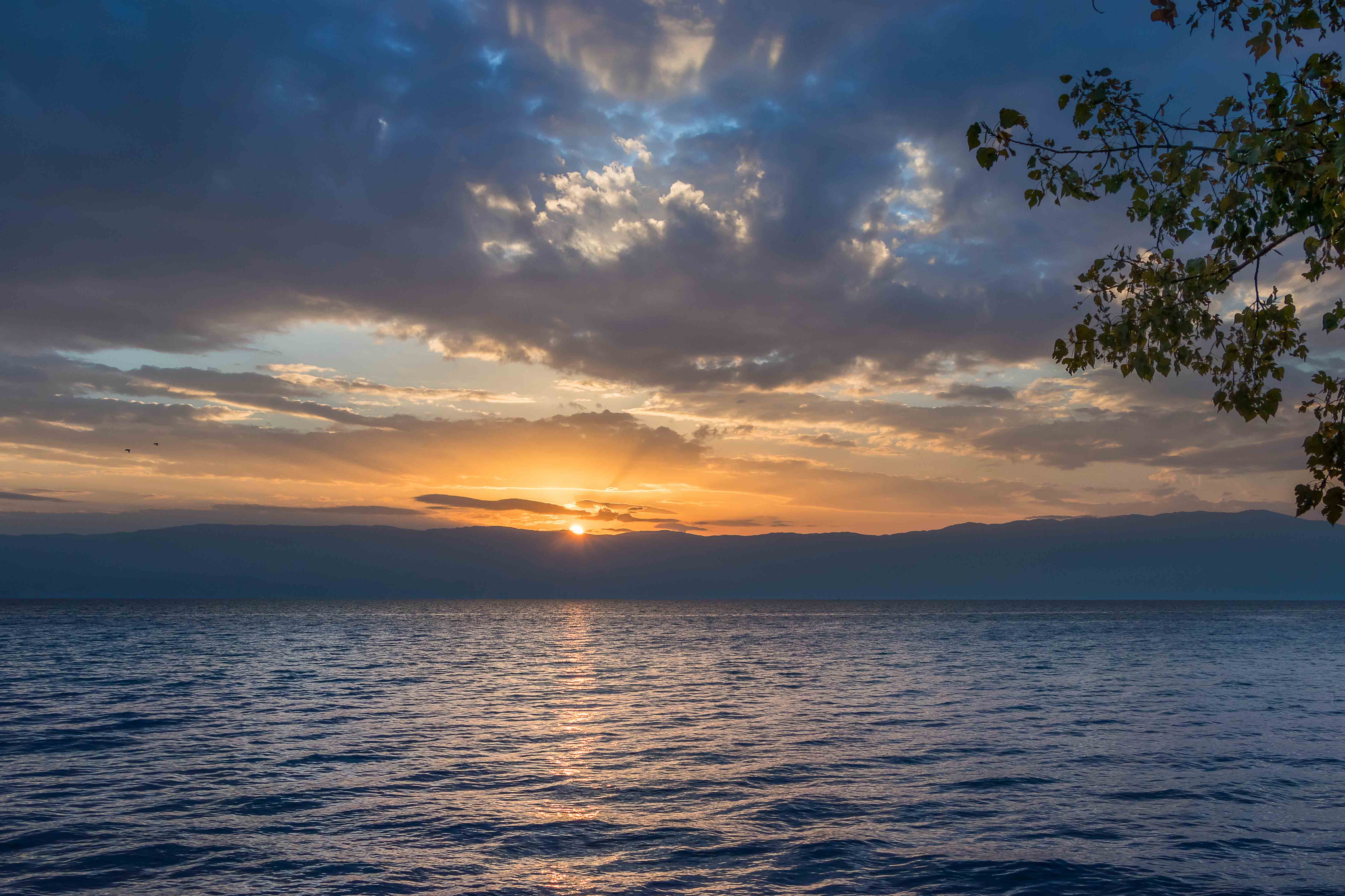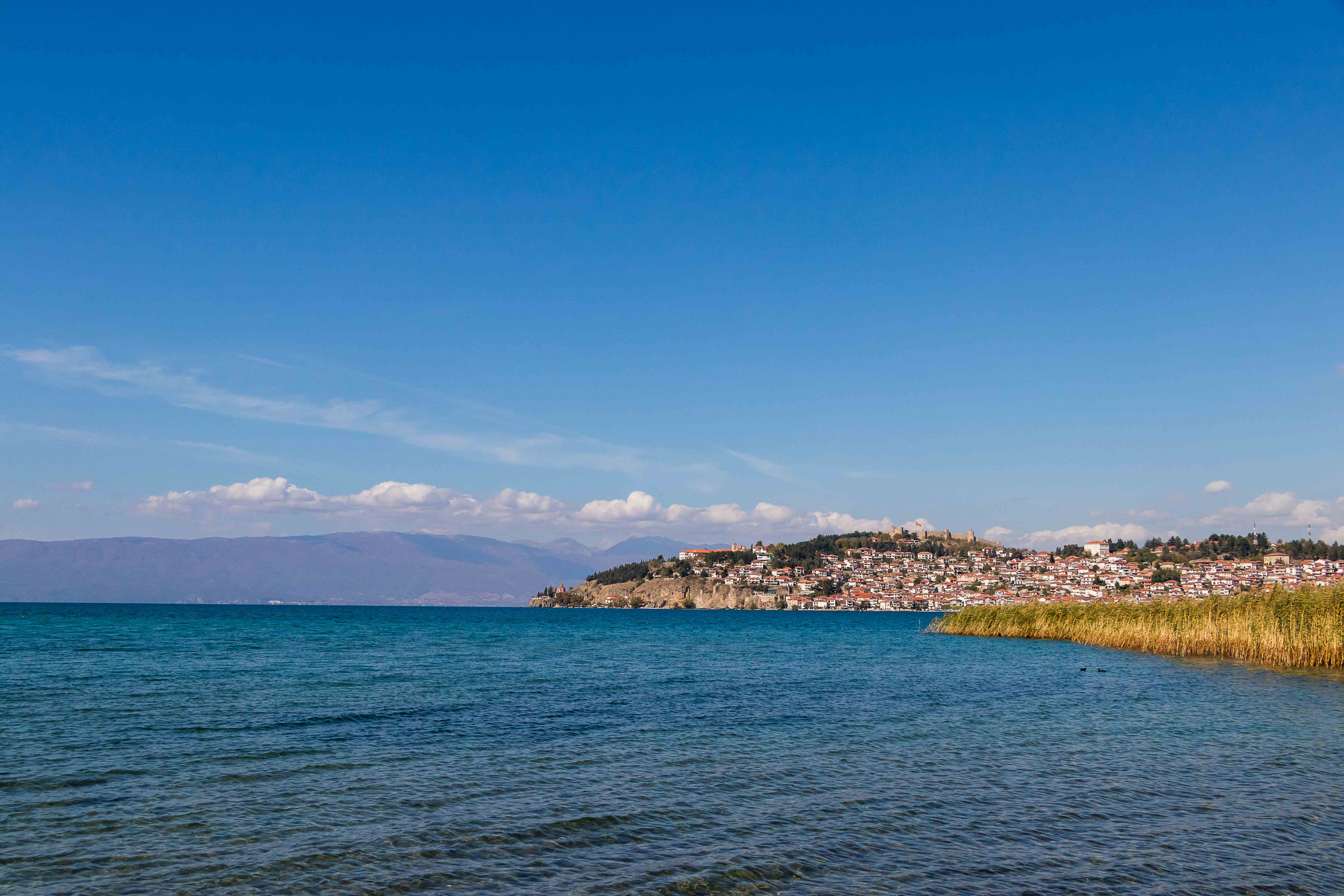 Gleich hinter den Bergen liegt der OHRID-SEE, einzigartig in der Welt und UNESCO-Weltnaturerbe. Er ist über 1 Million Jahre alt, hat das klarste Wasser aller Seen in Europa (an manchen Stellen) und es leben Fische in ihm, die es nur hier gibt (und zudem noch gut schmecken). Da wir das albanische Ufer nicht so einladend finden, fahren wir nach MAZEDONIEN weiter. Die erste Station am See ist die kleine Ortschaft STRUGA. In den Straßen ist viel los, die Menschen nutzen das warme Wetter, flanieren an der Uferpromenade und füllen die Cafés und Lokale. Auch wir setzen uns an einen Tisch am Strand und essen eine der leckeren Forellen aus dem See (was wir in den nächsten Tagen noch ein paar Mal wiederholen). Ein paar Kilometer weiter finden wir einen einsamen Platz direkt am glasklaren und jetzt recht frischen Wasser. Nach ein paar ruhigen Tagen setzen wir die Umrundung des Sees fort. Die Stadt OHRID, die sich für die vielen Touristen aus mittlerweile aller Welt etwas zu fein herausgeputzt hat, lassen wie links liegen und finden an der Grenze zu Albanien eine weite und einsame Wiese wieder direkt am Ufer. Der riesige Campingplatz ist geschlossen und die Gleitschirmflieger, hier ist das beliebteste mazedonische Fluggebiet, haben leider wieder nicht den richtigen Wind.