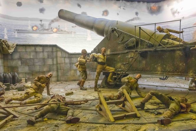 Der erste Versuch der Alliierten am 18. März 1915, die Dardanellen mit einer Schiffsattacke zu durchstoßen, wurde zum Desaster. Nach dem Misserfolg zur See waren die Alliierten der Ansicht, dass nur noch Landstreitkräfte die osmanischen Artilleriestellungen ausschalten konnten. Gedeckt von 11 Kriegsschiffen setzten 200 Handelsschiffe neben englischen und französischen Truppen auch die ANZACS, Freiwillige aus Australien und Neuseeland, am 25. April 1915 nach Gallipoli über. Dies war der Beginn eines furchtbaren neunmonatigen Stellungskrieges, den die Alliierten schließlich verloren. Am 7. Januar 1917 verließen die letzten Einheiten Gallipoli. Über 100 000 Soldaten ließen ihr Leben, mehr als 250 000 wurden verletzt.