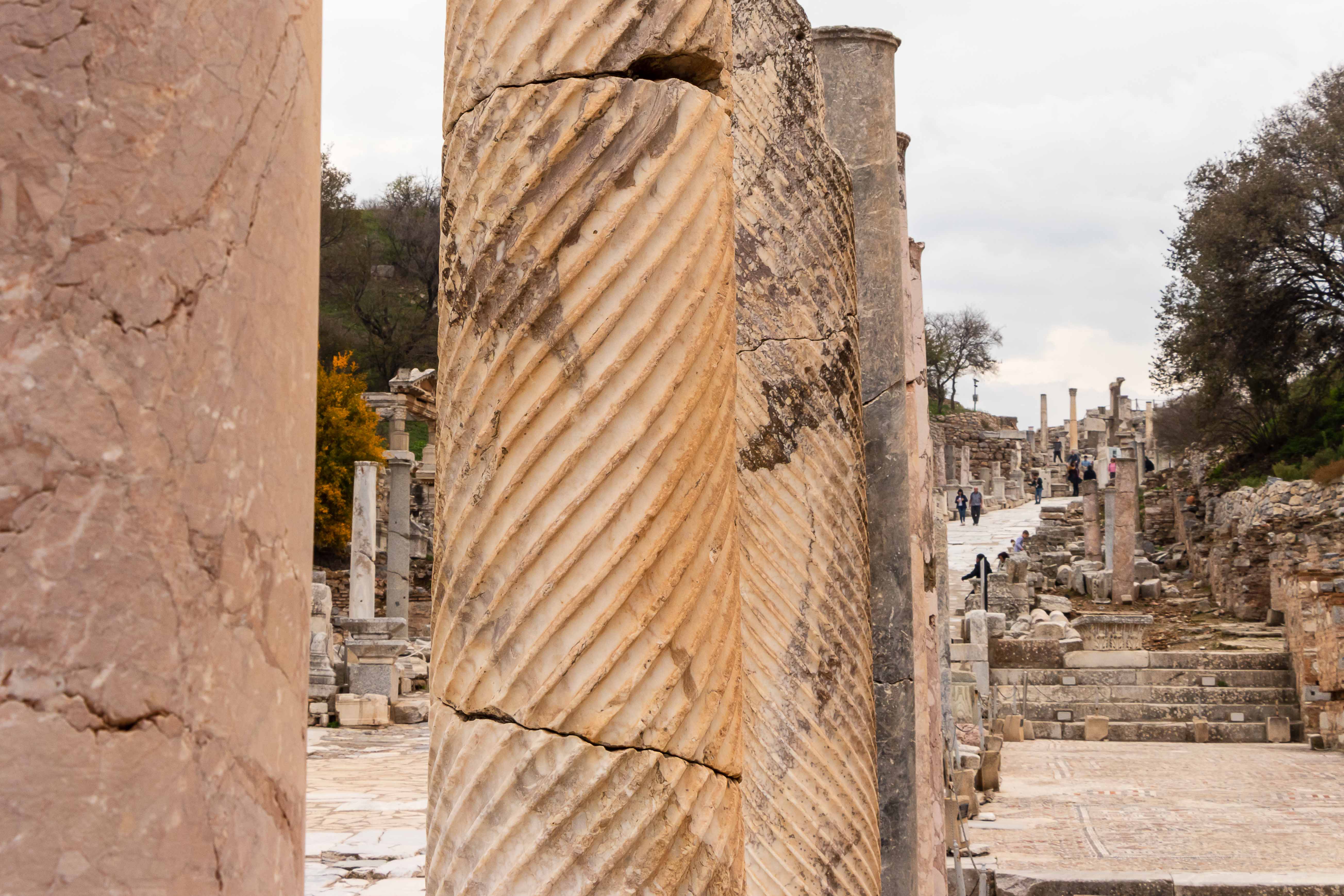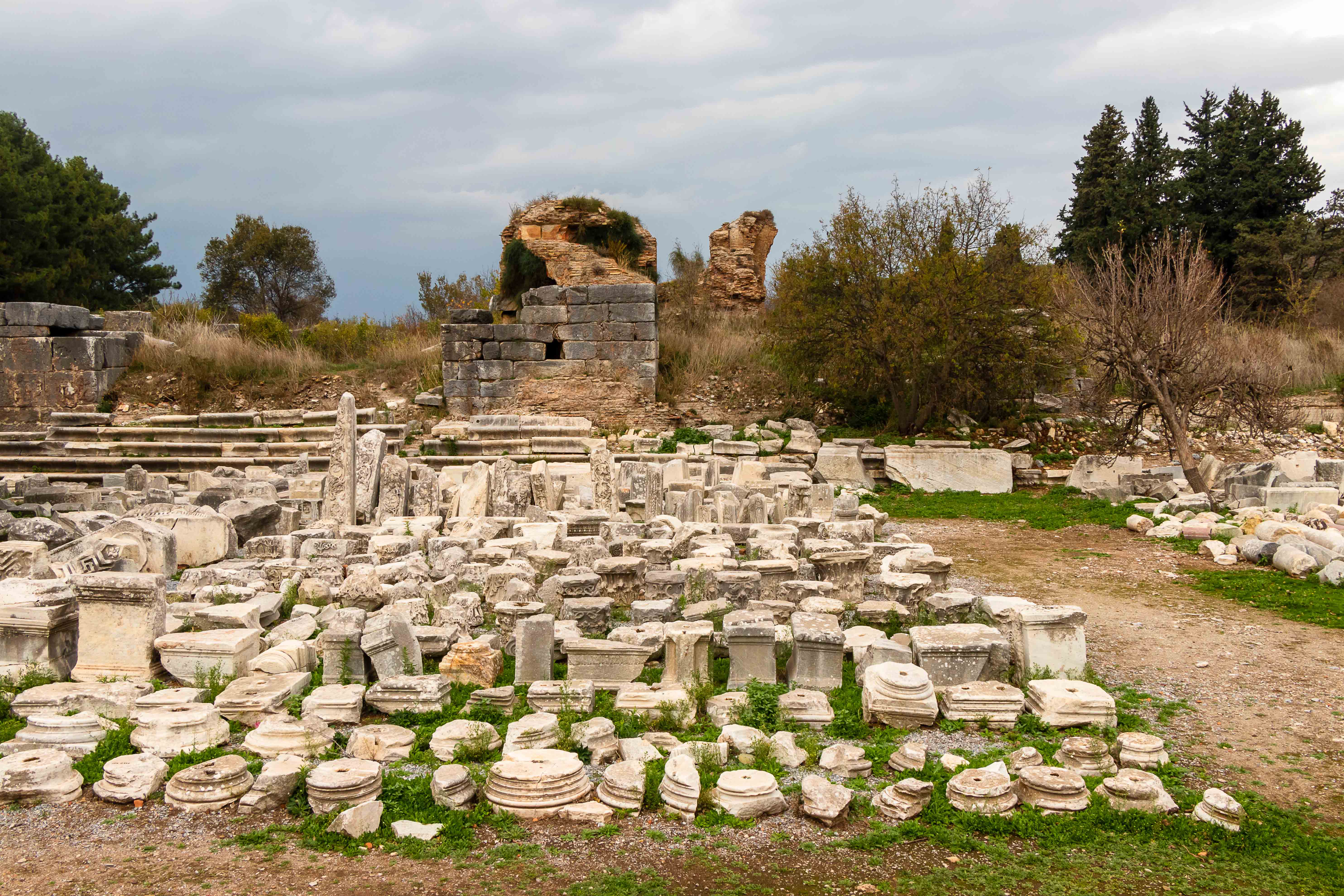 Etwas abseits steht das Artemission, ein Tempel der Artemis. Antipatros notiert zu seiner Abhandlung über die sieben Weltwunder: „ Doch als ich dann endlich den Tempel der Artemis erblickte, der in die Wolken sich erhebt, verblasste das andere. Ich sagte: Hat Helios‘ Auge außer dem hohen Olymp je etwas gleiches gesehen?“ Heute steht von den 127 Säulen nur noch eine einzige. Sie erinnert uns an die einzelne Säule im Heratempel in Sizilien.