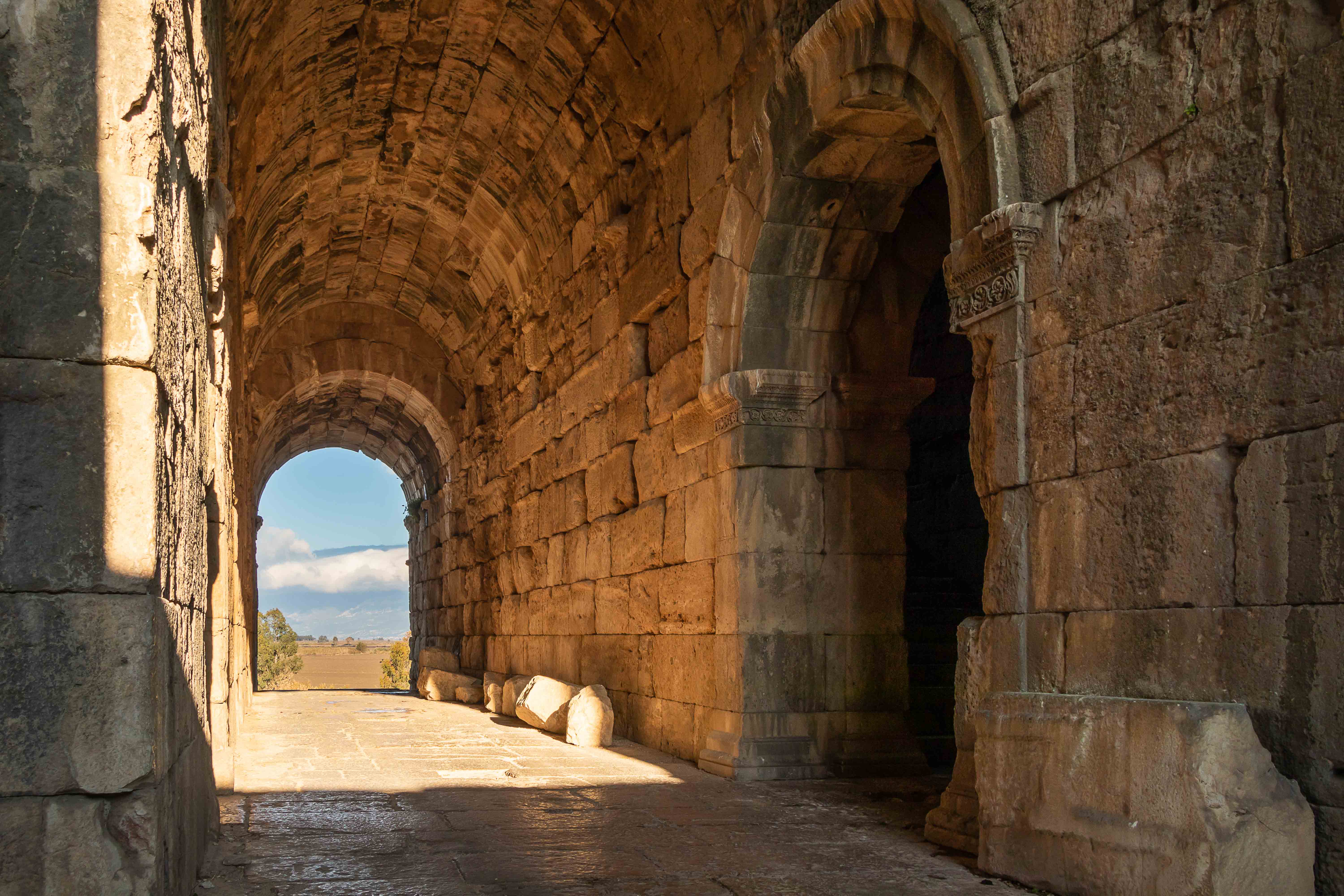 Wir fahren hinunter in die weite Schwemmlandebene des GROSSEN MÄANDERS. Kaum vorstellbar, dass hier 494 v. u. Z. die Mileter gegen die Perser eine große Seeschlacht fochten. Jetzt sind hier die größten Baumwollfelder der Agäis. Auf der anderen Seite des Tals liegt das ehemals mächtige MILET das 90 Tochterkolonien gründete. Eigentlich wollten wir nur kurz vorbeischauen, doch dann lockt das riesige Theater zu einer ausgiebigen Besichtigung. Das von den Griechen gegründete und von den Römern erweiterte Theater faste 15 000 bis 25 000 Zuschauer. 30 m hoch ragt es heute noch auf und wird von einem Kastell aus dem 8 Jh. gekrönt. Die damaligen Bewohnern konnten sich bestimmt nicht vorstellen, dass ihre mächtige und einflussreiche Stadt irgendwann an Bedeutung verlieren und vergessen wird, bis sie ein paar neugierige Archäologen wieder ausgruben. Wie vermutlich auch die Bewohner der heutigen Megacities. Aber irgendwann ändern sich die Handelsströme und verlagern sich die Produktionsstätten und die Menschen ziehen an andere Orte. Wie die Welt wohl in ein paar hundert Jahren aussieht?