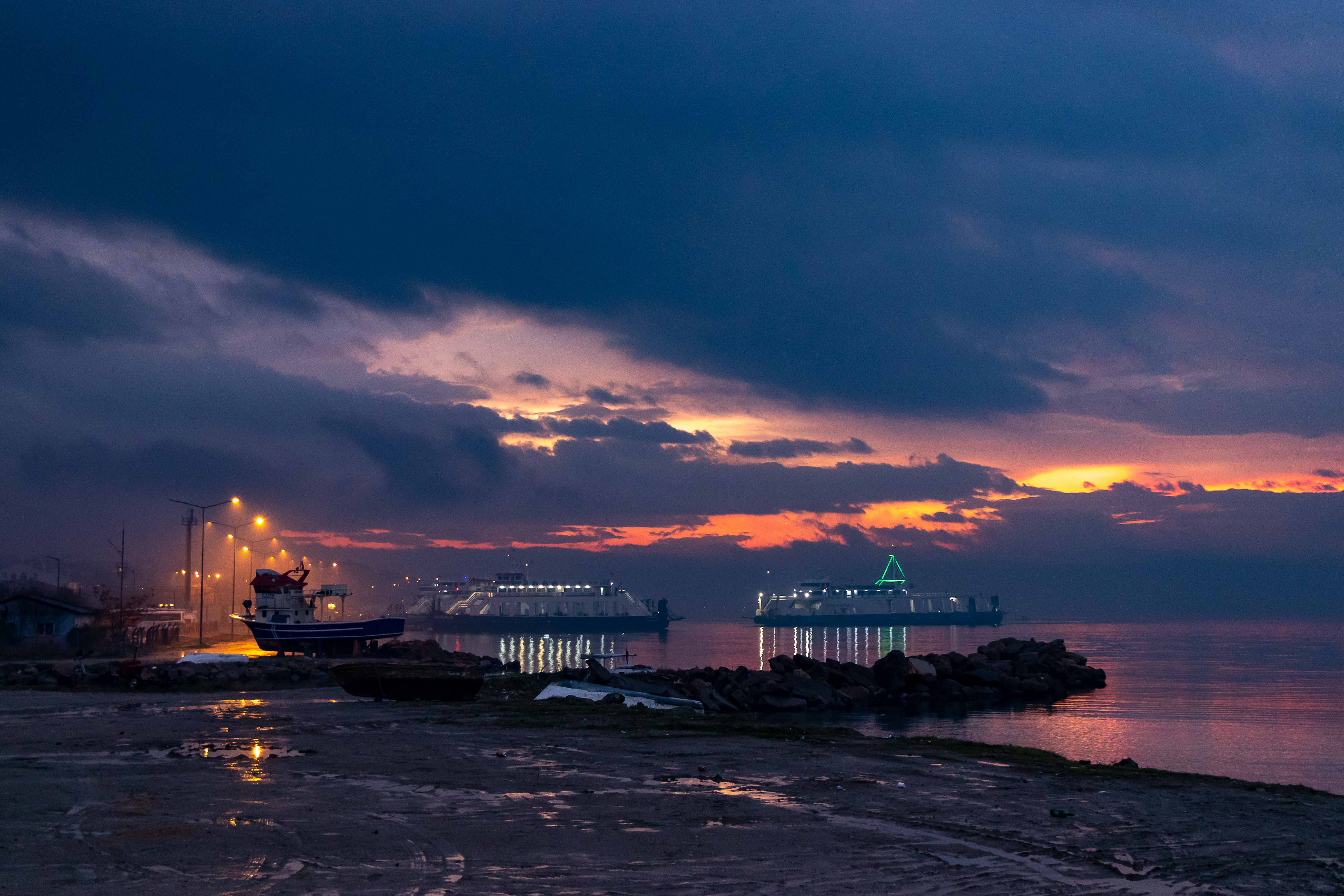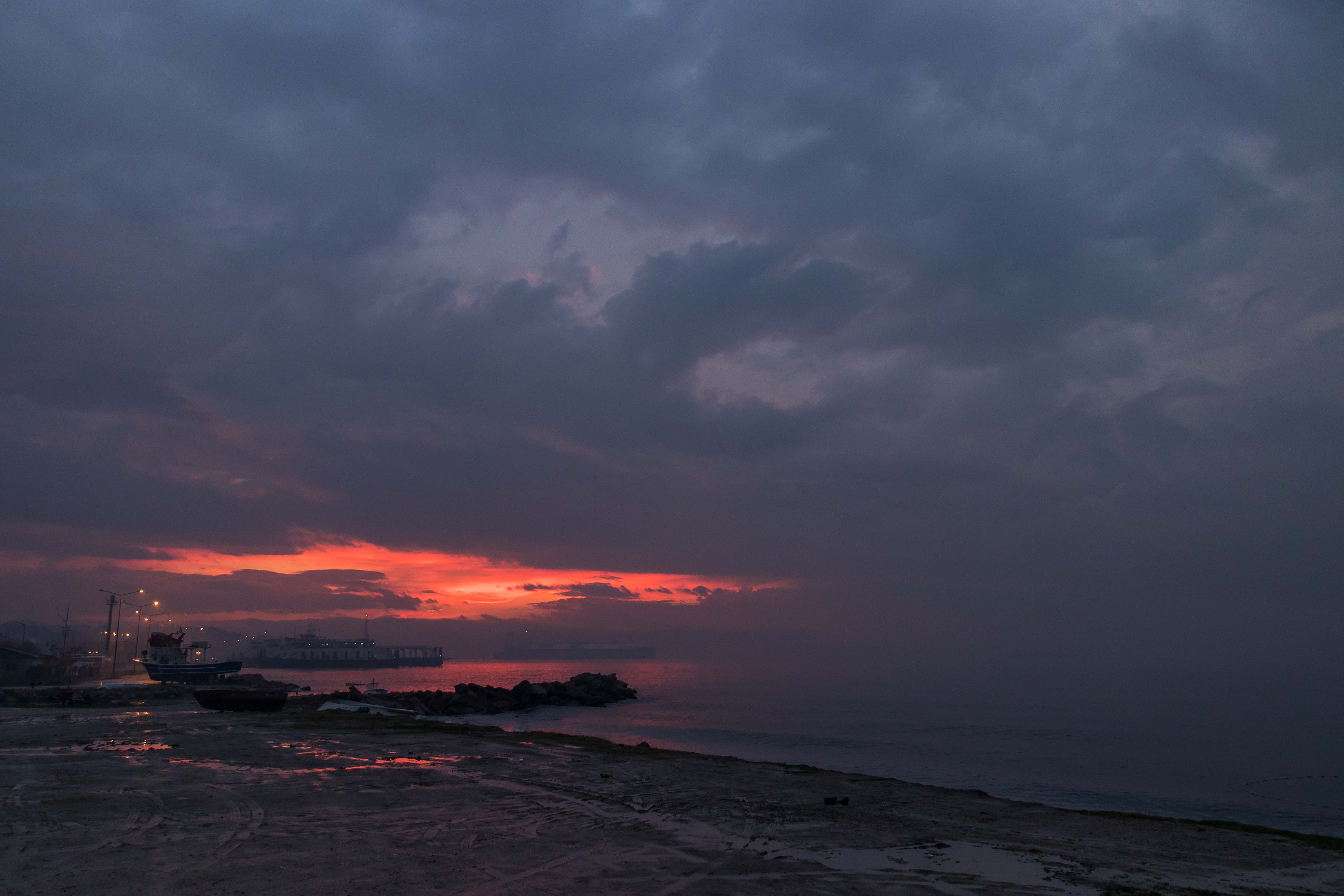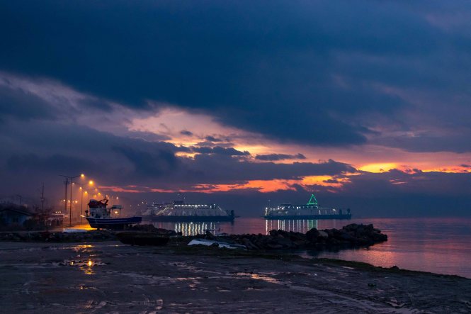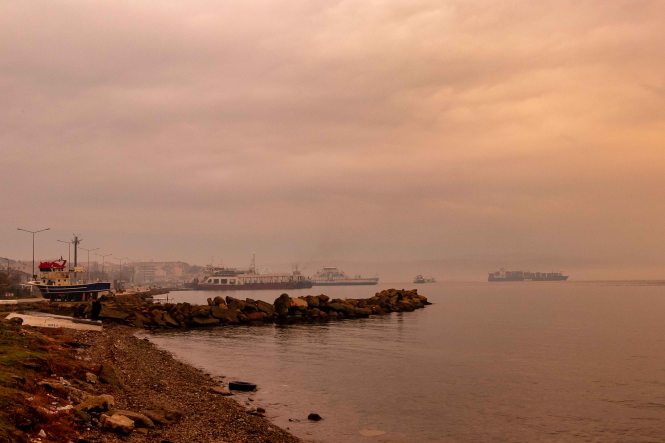 Am Morgen leuchten die Wolken in der aufgehenden Sonne blutrot, danach wird es die nächsten Tage fast ununterbrochen regnen. Die erste Strecke führt durch ein schönes Tal, dann prägen unendliche Felder die Landschaft. In ESKIŠEHIR kaufen wir das Nötigste für den Tag ein und fahren dann auf breiter und guter Straße flott weiter, lediglich in BURSA stoppen wir für die Mittagsrast. Am späten Nachmittag erreichen wir bei ÇARDAK das asiatische Ufer an den DARDANELLEN. Sofort können wir auf die Fähre fahren und in ein paar Minuten hat uns Europa wieder. In GELIBOLU stauen sich die Lastkraftwagen über viele hundert Meter, um nach Asien zu kommen. Wir suchen den uns schon bekannten Platz direkt an der Meerenge auf. Die Luft riecht nach Braunkohle und ist gelb gefärbt. Müde fallen wir, nach der für uns ungewöhnlich langen Fahrt, ins Bett. Ein paar Raki erleichtern das Einschlafen zusätzlich.