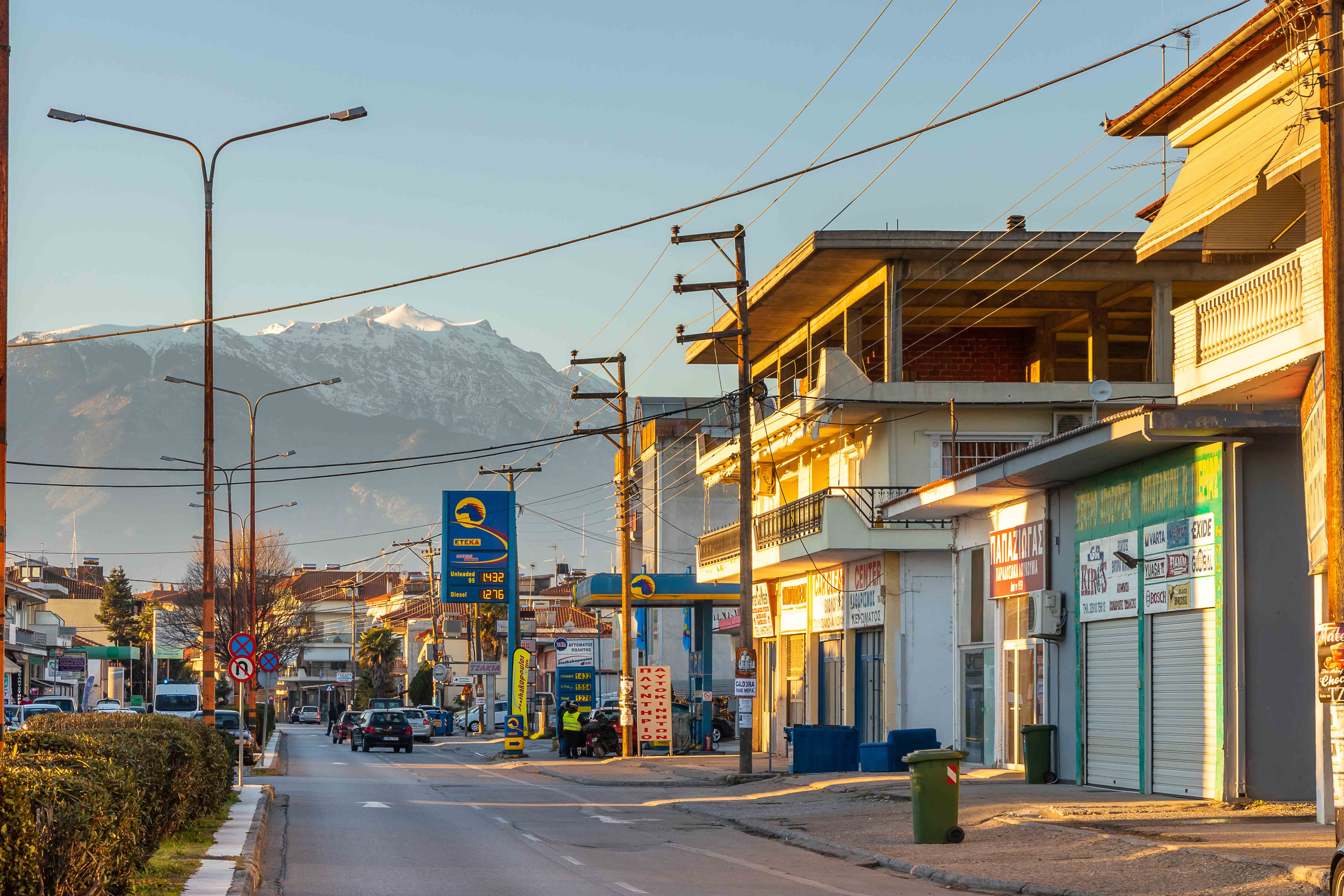 Wieder werden wir mit einem bunten Sonnenaufgang bei wolkenlosen Himmel wach. Nach den beiden Aufwärmkaffees fahren wir wieder los, diesmal wirklich nach Süden. Wir wählen die Bergroute und umrunden den majestätischen OLYMP, der sich mit einem glänzend weißen Haupt präsentiert. Zeus muss es dort oben bestimmt ganz arg frieren. Oder er ist schon wieder unterwegs und sucht sich zum Leidwesen seiner Frau ein junges und wunderschönes Mädchen. Wir genießen auf der Fahrt die Weitblicke in die winterliche Bergkette des PINDOS-GEBIRGES und durcheilen weite Flusstäler, in denen der Weizen bereits leuchtend Grün sprießt. Letztendlich erreichen wir hinter LAMIA die THERMOPHYLEN, den Engpass zwischen Meer und Gebirge, den Spartaner 480 v. u. Z. gegen die anrückenden Perser bis zum letzten Mann verteidigten. Heute ist die Gegend ruhiger und wir genießen ausgiebig das warme Wasser der Thermalquellen (Bilder folgen nach der Erholung).
