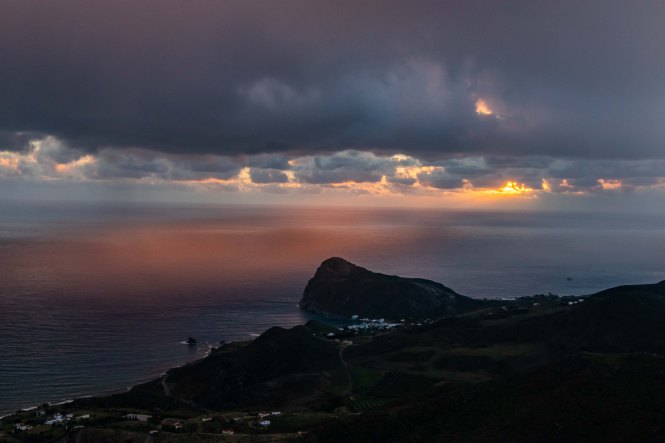 Peter spaziert am Vormittag zur ROTEN BUCHT, am Nachmittag dreht er eine Runde über den Aussichtsberg von MÁTALA. Das sonnige Wetter hält bis in den Nachmittag hinein an, bis dann der Nordwestwind wieder dunkle Wolken mit ein paar Regentropfen und Hagelkörnern herbei schafft.