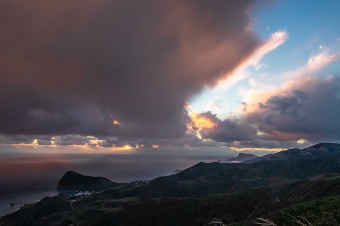 Für die Nacht fahren zurück und hinauf zu einem Aussichtsbalkon. Es regnet bei starkem Wind heftig. Als Peter das obligatorische Standortfoto macht, bemerkt er einen Plattfuß am Dicken ( den ersten, seid wir ihn haben). Kaum eine Stunde später ist der Reifen gewechselt, eine mickrige Schraube war der Übeltäter. Zur Belohnung führt das Wetter uns ein Wolken- und Lichttheater vor. Wer will da schon einen langweiligen blauen spanischen Himmel. In der Nacht leuchten wieder Tausende von Sternen und der Wind nimmt zu.
