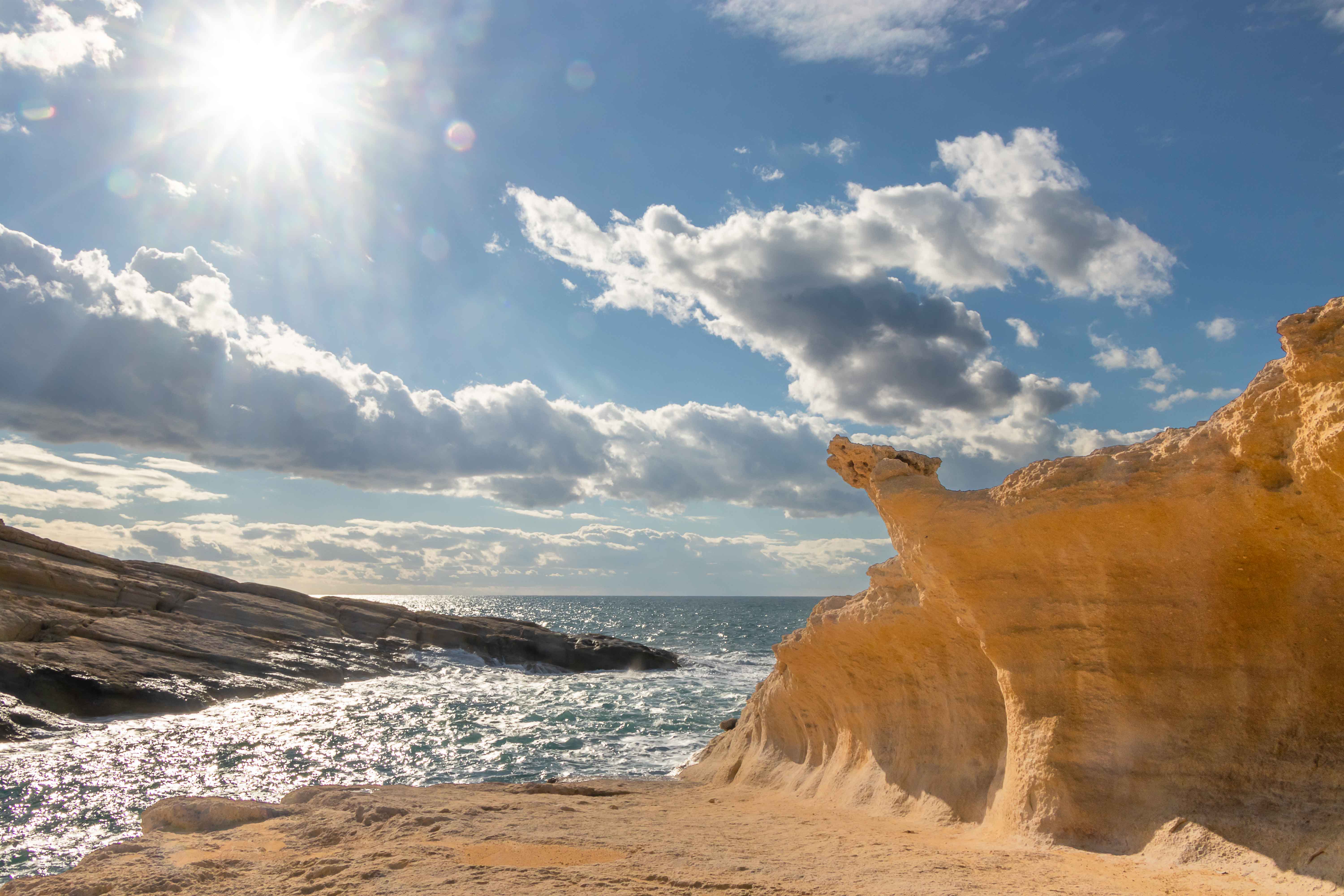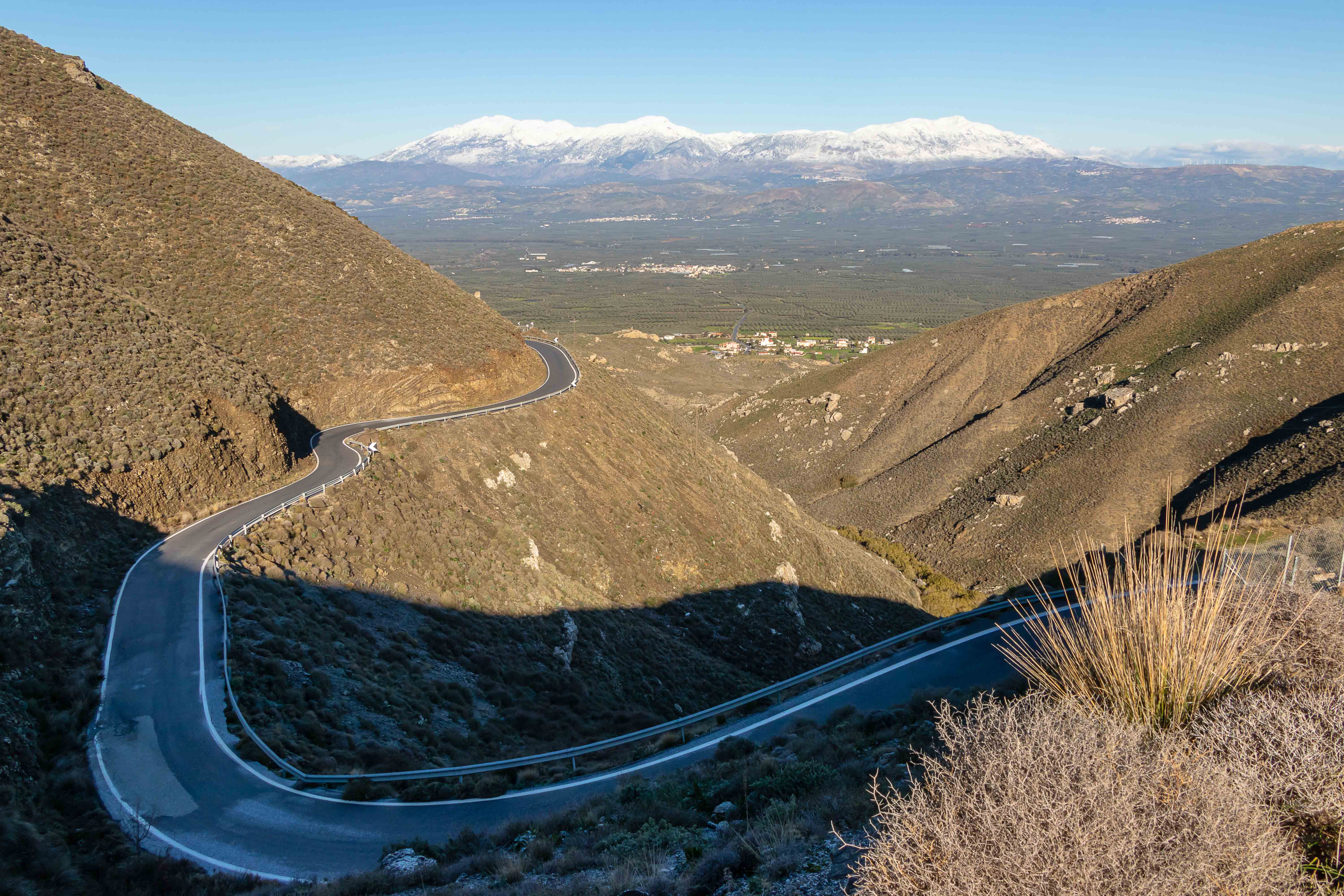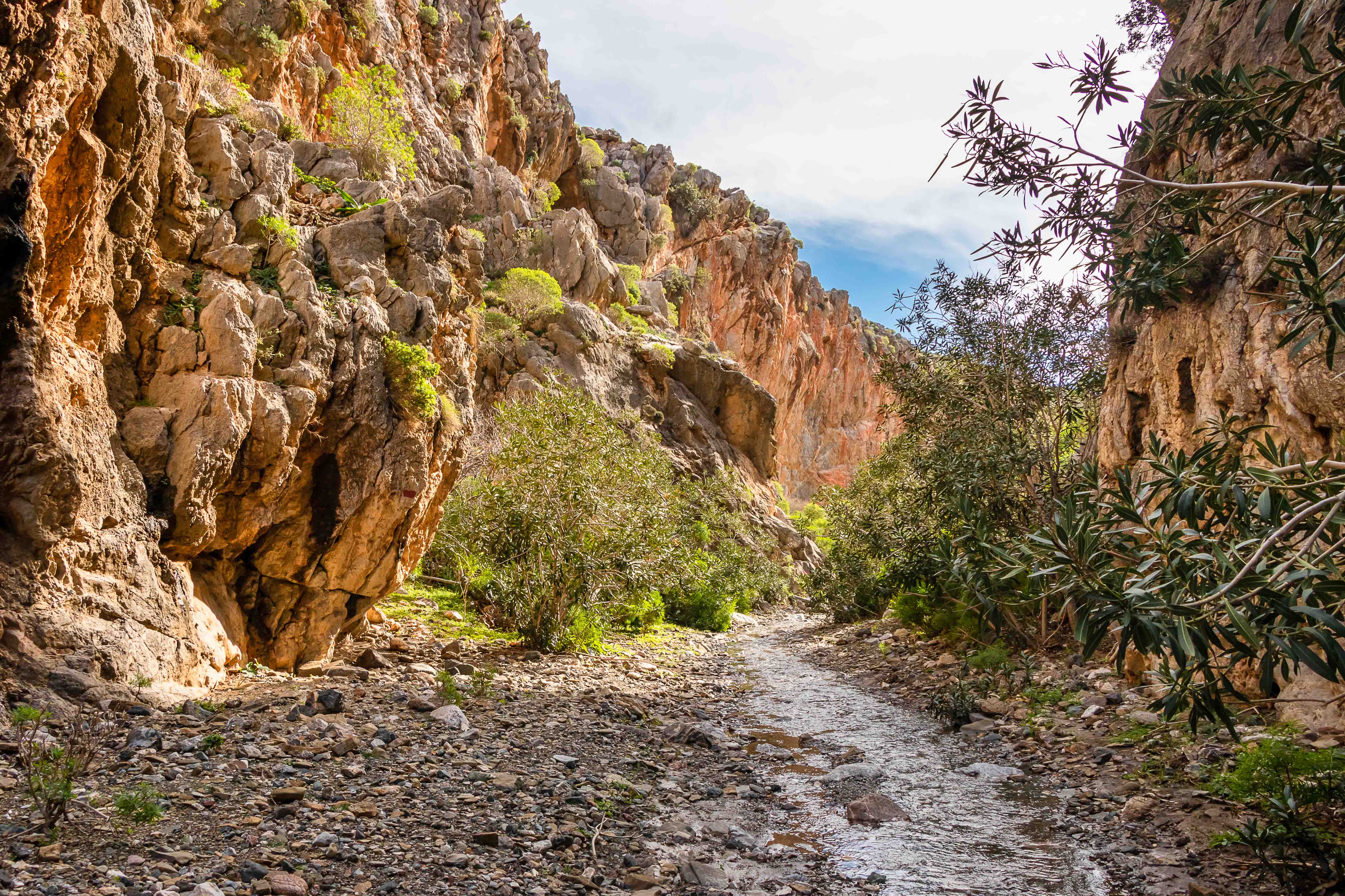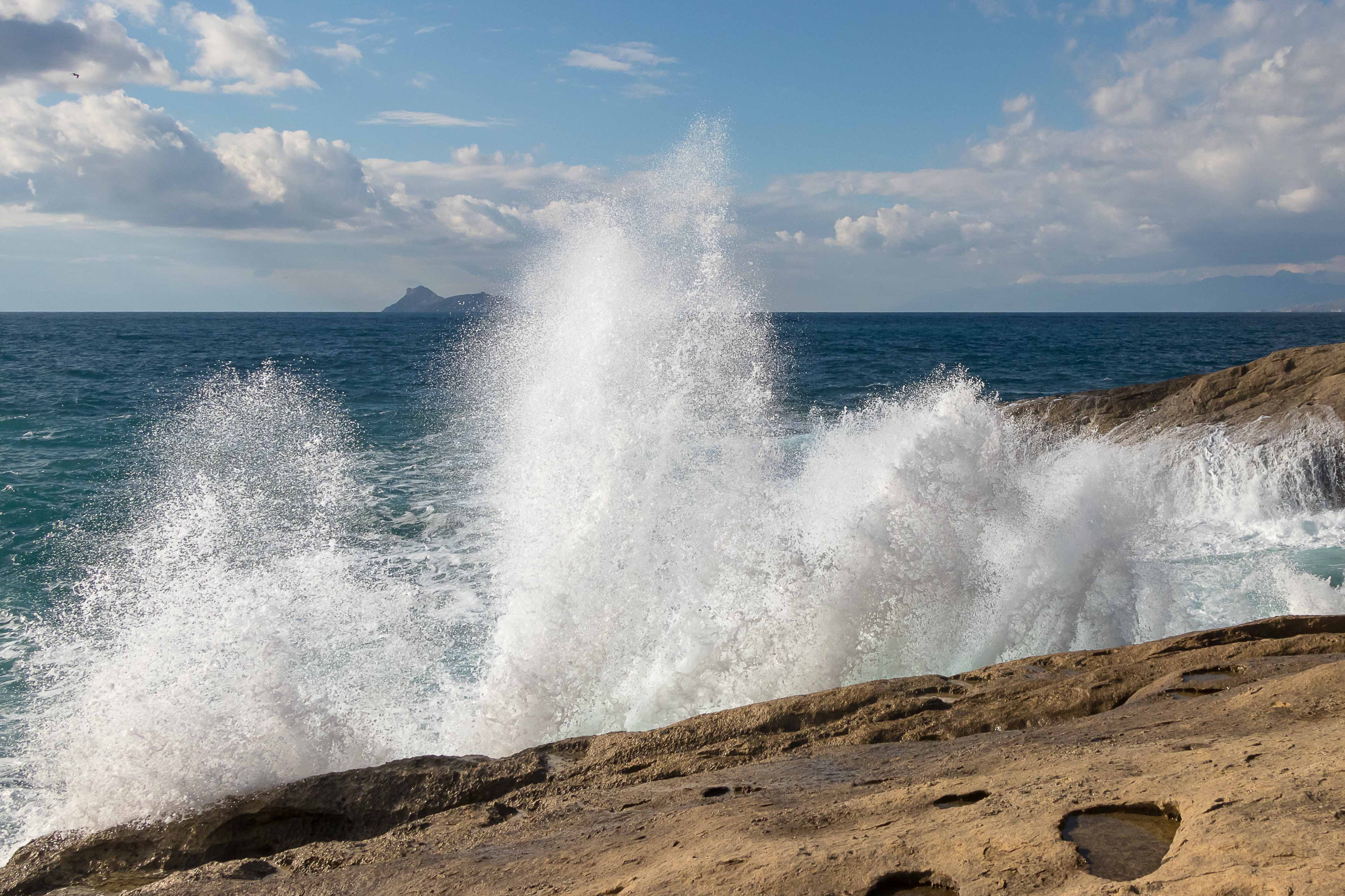 Mit der Wanderung auf den KOFINAS wird es heute leider nichts, die Straße und der Gipfel sind voller Schnee. Wir kehren lieber um, fahren hinunter in die weite MESSARÁ-EBENE, dann noch einmal hinauf auf einen Pass, von dem wir den weinenden Löwen von LÉNTAS sehen (der eher Ähnlichkeit mit einen Elefanten hat). Als sich Afrika von Kreta trennte, verpasst der Löwe den Absprung, fing alsdann bitterlich das Weinen an und versteinerte über seinen Kummer. In 10 Millionen Jahren wird er mit KRETA wieder in AFRIKA ankommen, da sich die Ägäis mit 3 cm pro Jahr nach Süden schiebt. Wir fahren bis zu einem neuen Hafen (der EU sei Dank), in dem sich eine ganze Menge Kreter versammeln. Peter wandert durch die kleine und enge TRACHOULAS-SCHLUCHT zur gleichnamigen Bucht. Geier kreisen im starken Nordwind. Im Windschatten am langen Sandstrand ist er herrlich warm, sodass ich natürlich ins Wasser springen muss.
