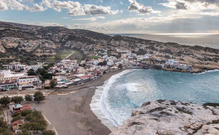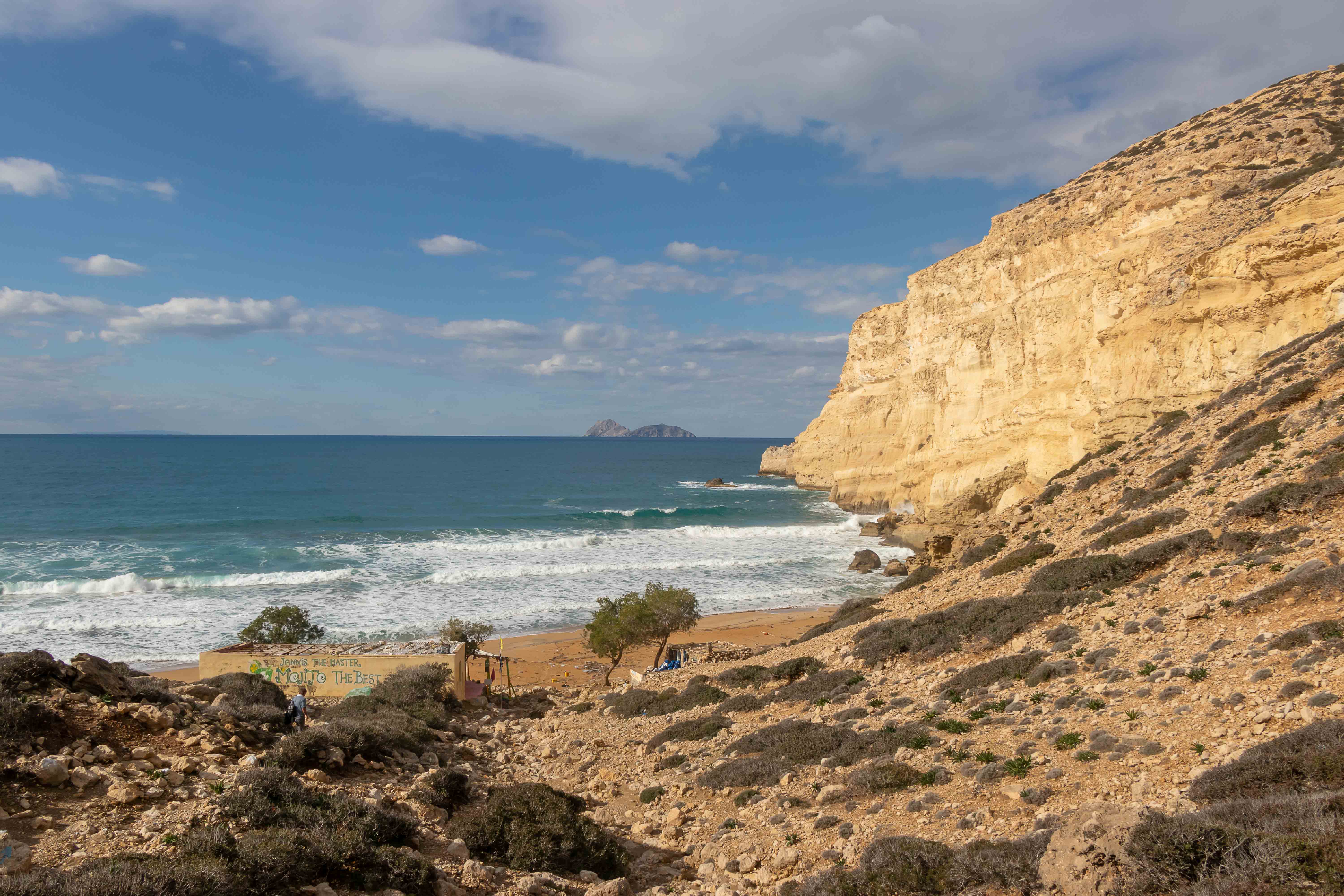 Wir kommen nach MÁTALA, in den 60er Jahren die Hochburg der Hippies. Aus aller Welt kamen sie, darunter viele US-Amerikaner, die nicht nach Vietnam wollten. Auch Cat Stevens und Bob Dylan waren hier. Die Höhlen sind mittlerweile gesperrt, aber immer noch strahlt das Dorf den Flair der Blumenkinder aus. Einige sind bis heute geblieben, zumindest der Kleidung und dem Aussehen nach.