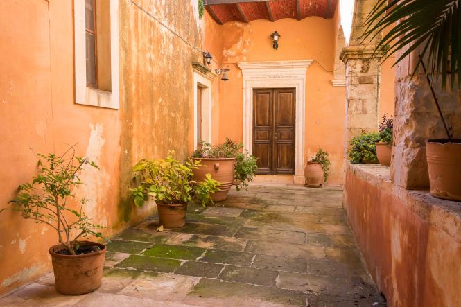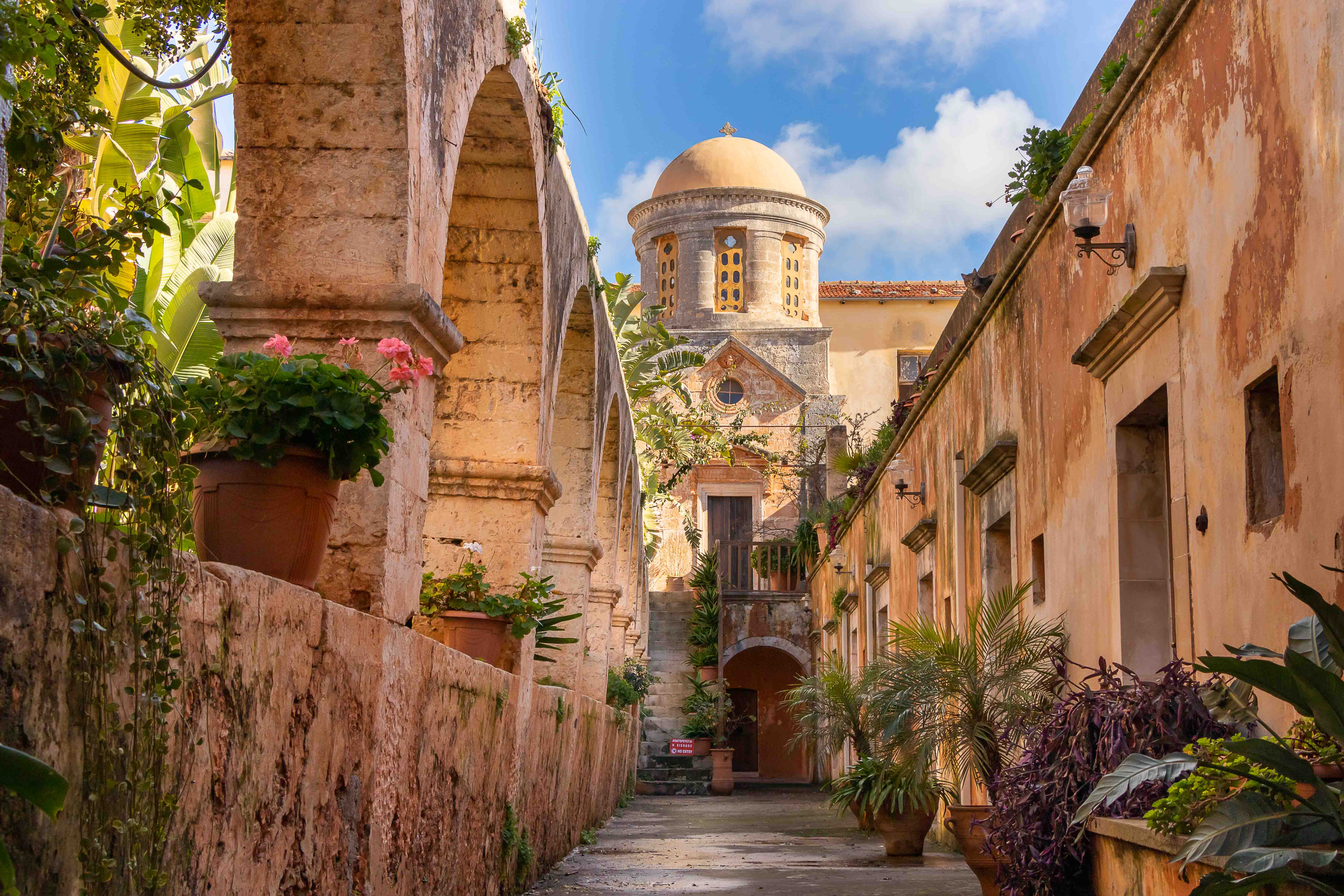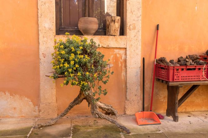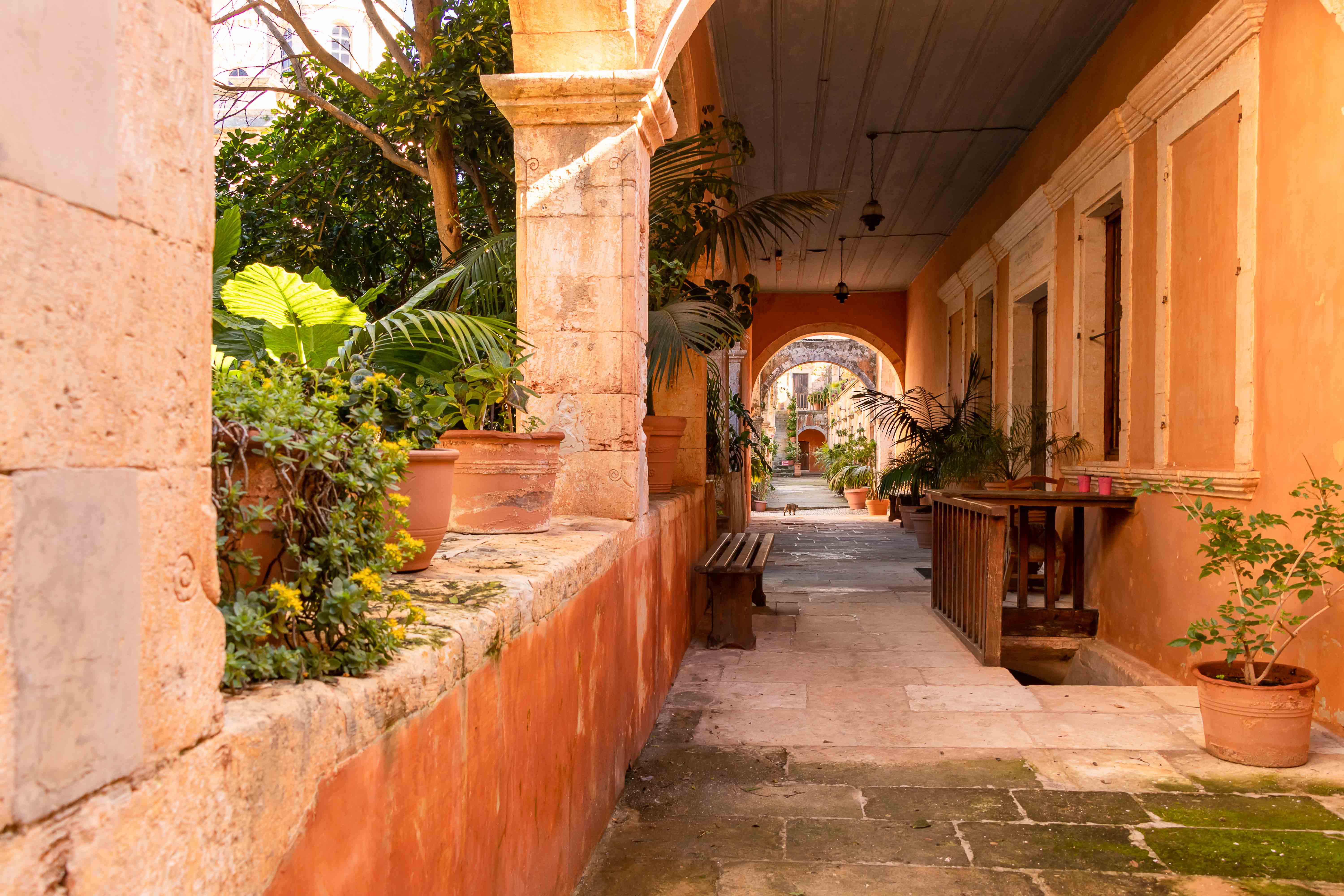 Und schon geht es weiter zum KLOSTER AGÍA TRIÁDA. Aus drei Reisebussen strömen englische Touristen, so sparen wir zumindest den Eintritt, obwohl wir zahlen wollten. Eine imposante Treppe führt hinauf zum Eingang, die gemütlich aussehende Klosterkirche prägen viele runde Kuppeln. Die Anlage mit den vielen Pflanzen und versteckten Winkeln strahlt, trotz der für uns ungewohnt vielen Besucher, eine angenehme Ruhe aus.