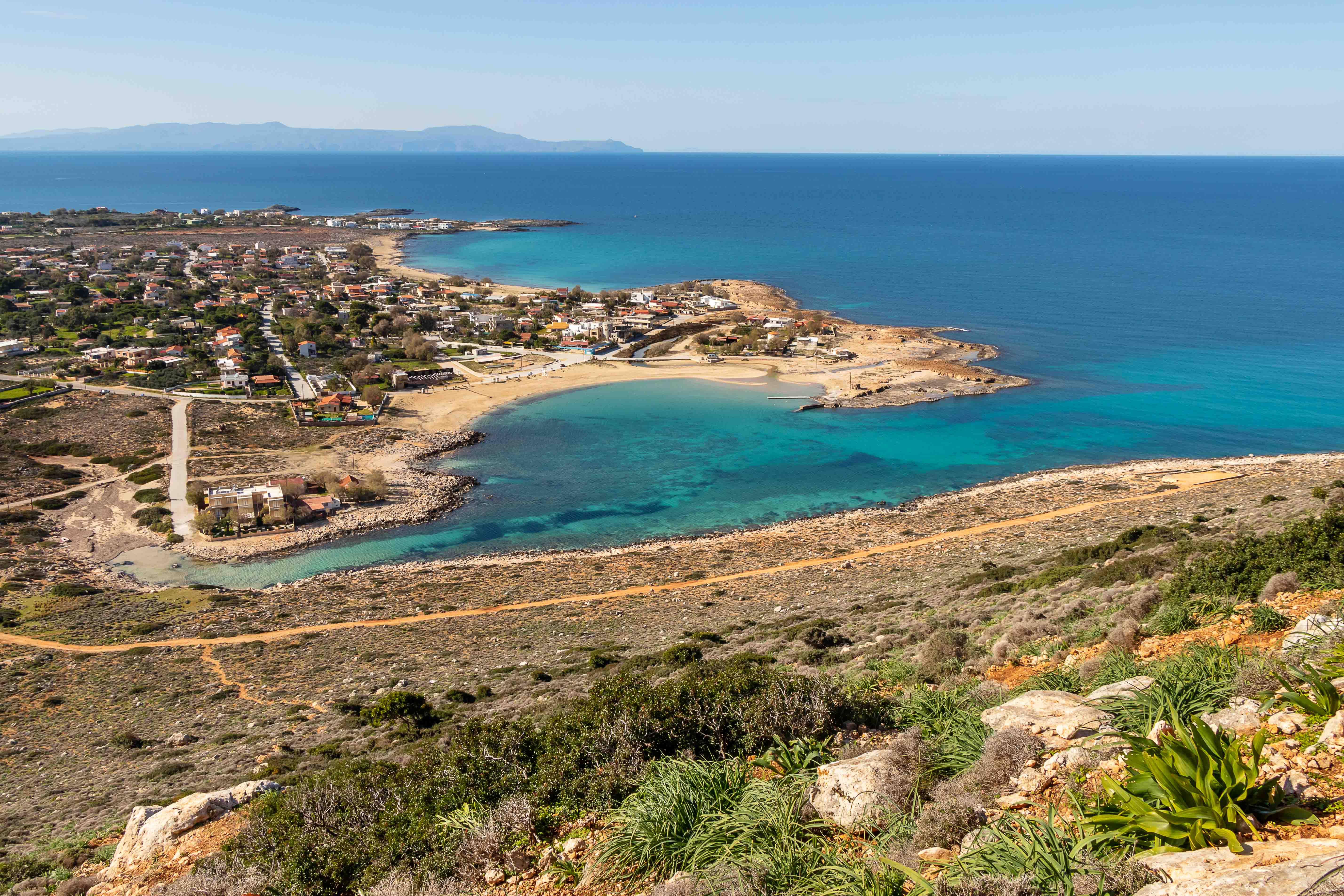 Dann geht es ebenso schnell wieder hinunter, erste blaue Flecken am Himmel geben uns Hoffnung auf etwas sonnigeres Wetter. Und wir haben Glück: die gewaltige Bergkette der LEFKÁ ÓRI erstrahlt über den dunkelgrünen Olivenhainen, mit dem gelb blühenden Klee, in der Sonne im frischen Weiß. Nach einer Runde durch die Dörfer der Halbinsel DRÁPANOS finden wir am Strand von KALÍVES einen Platz für den Rest des Tages. Hier wärmt uns die Sonne, die Wellen plätschern nur leicht an den Strand, doch für ein Bad ist es noch etwas zu kalt.