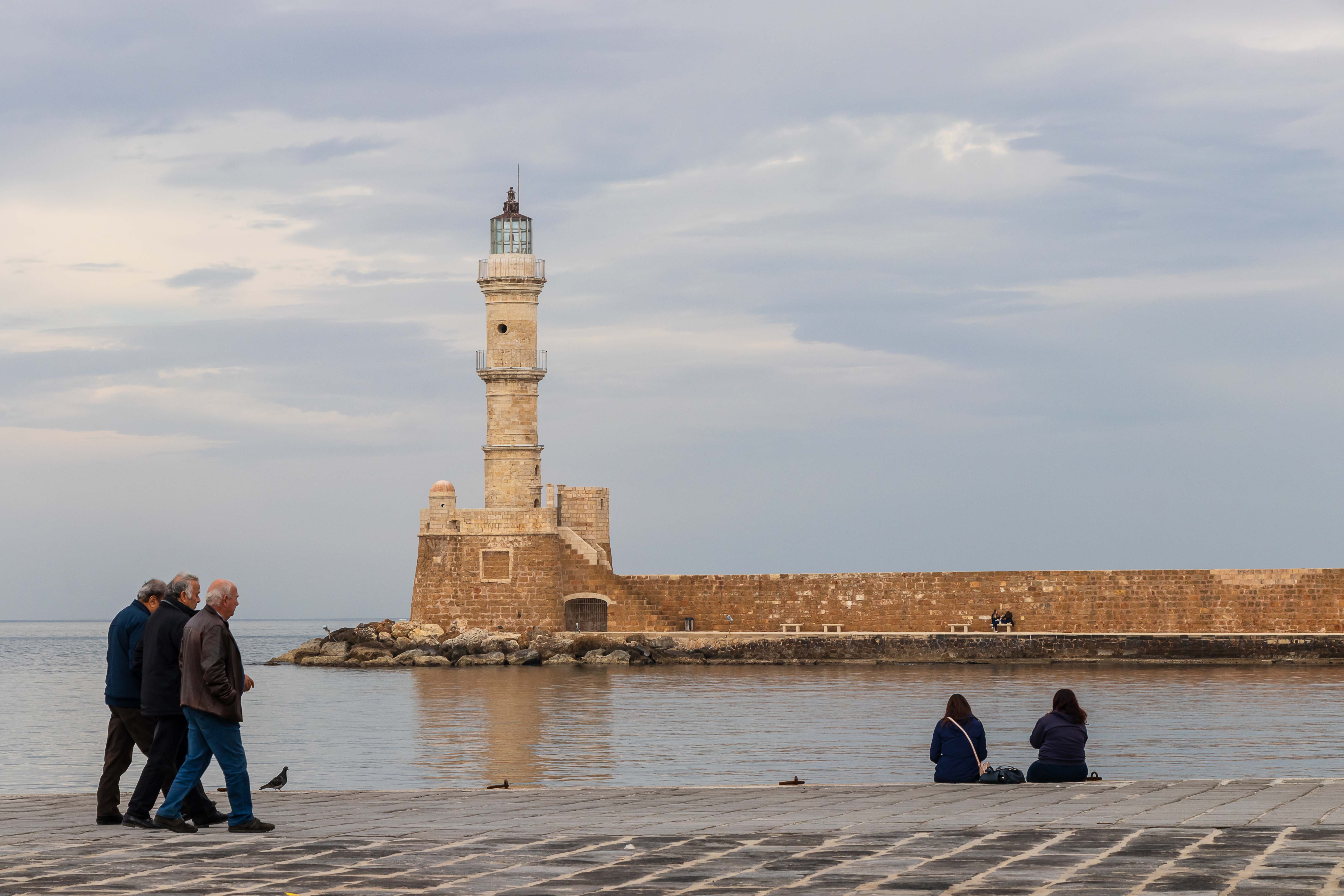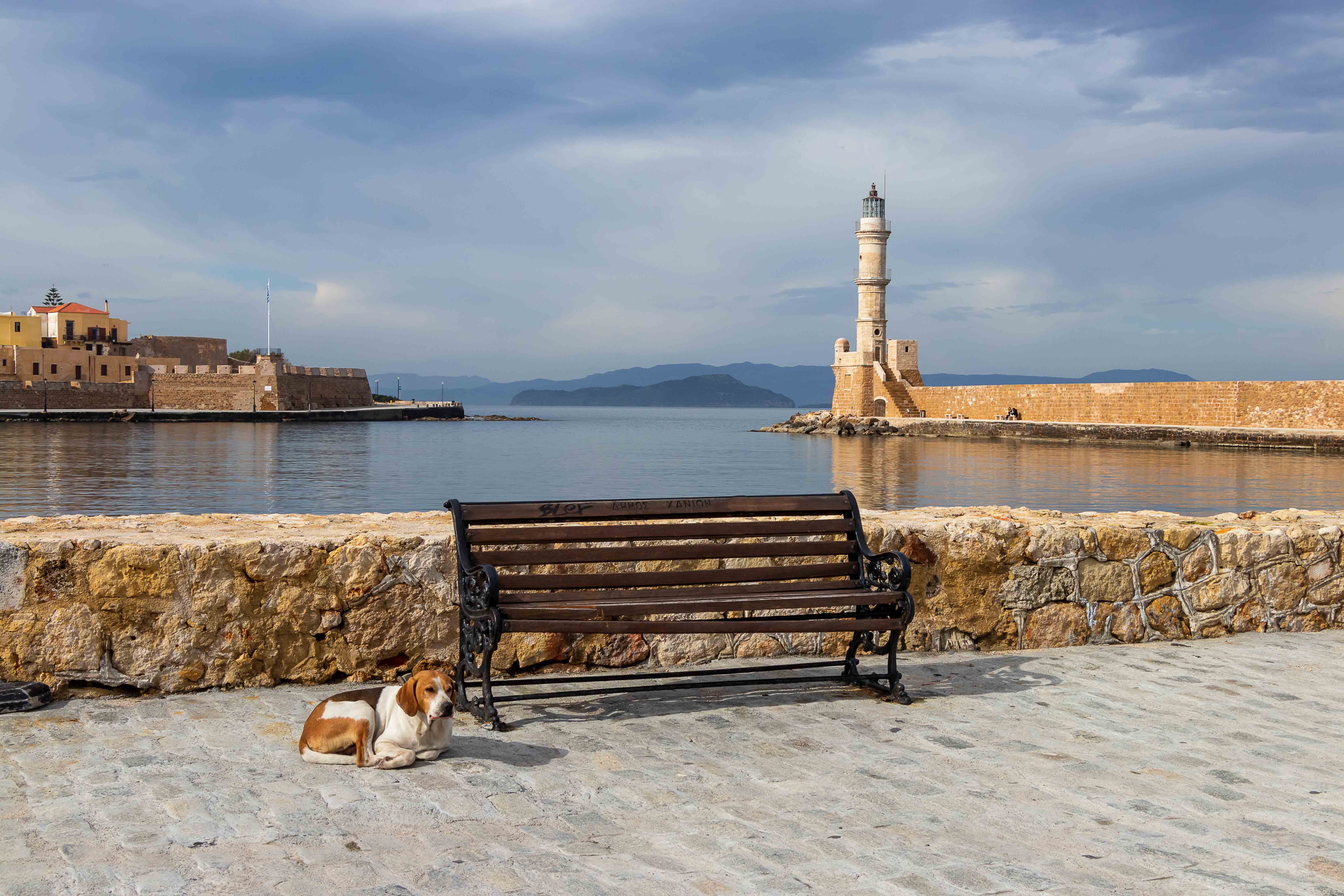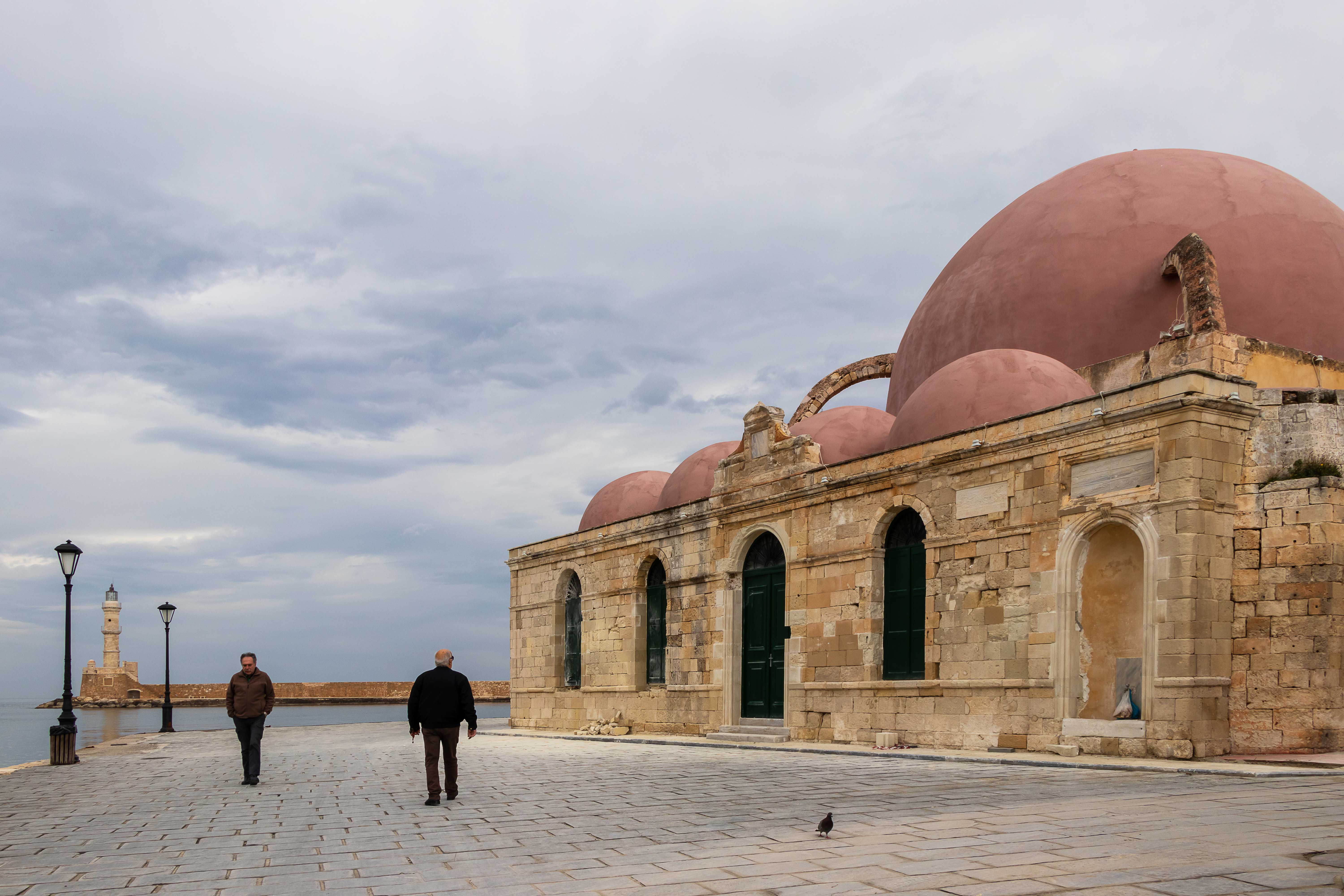 CHANIÁ wurde stark von den Venezianern geprägte und liegt malerisch an dem weiten Hafenbecken, darüber ragen die mächtigen WEISSEN BERGE in die hoch aufschießenden Wolken. Rechtzeitig zum Stadtbummel lässt die Sonne die pastellfarbenen Häuser an der Promenade aufleuchten. Eine Kindergartengruppe marschiert freudig singend durch die Gassen, Jugendliche sitzen schatzend in den Kaffees, Männer spazieren am langen Kai entlang und schielen nach den jungen Mädchen.