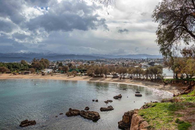 Der Wetterbericht sagt wieder einmal wolkenreiches und regnerisches Wetter voraus; wir stellen uns auf zwei gemütliche Tage in STAVRÓS ein. Doch zwischen den schneebedeckten Bergen der LEFKÁ ÓRI und der Küste spitzt immer wieder einmal blauer Himmel durch.