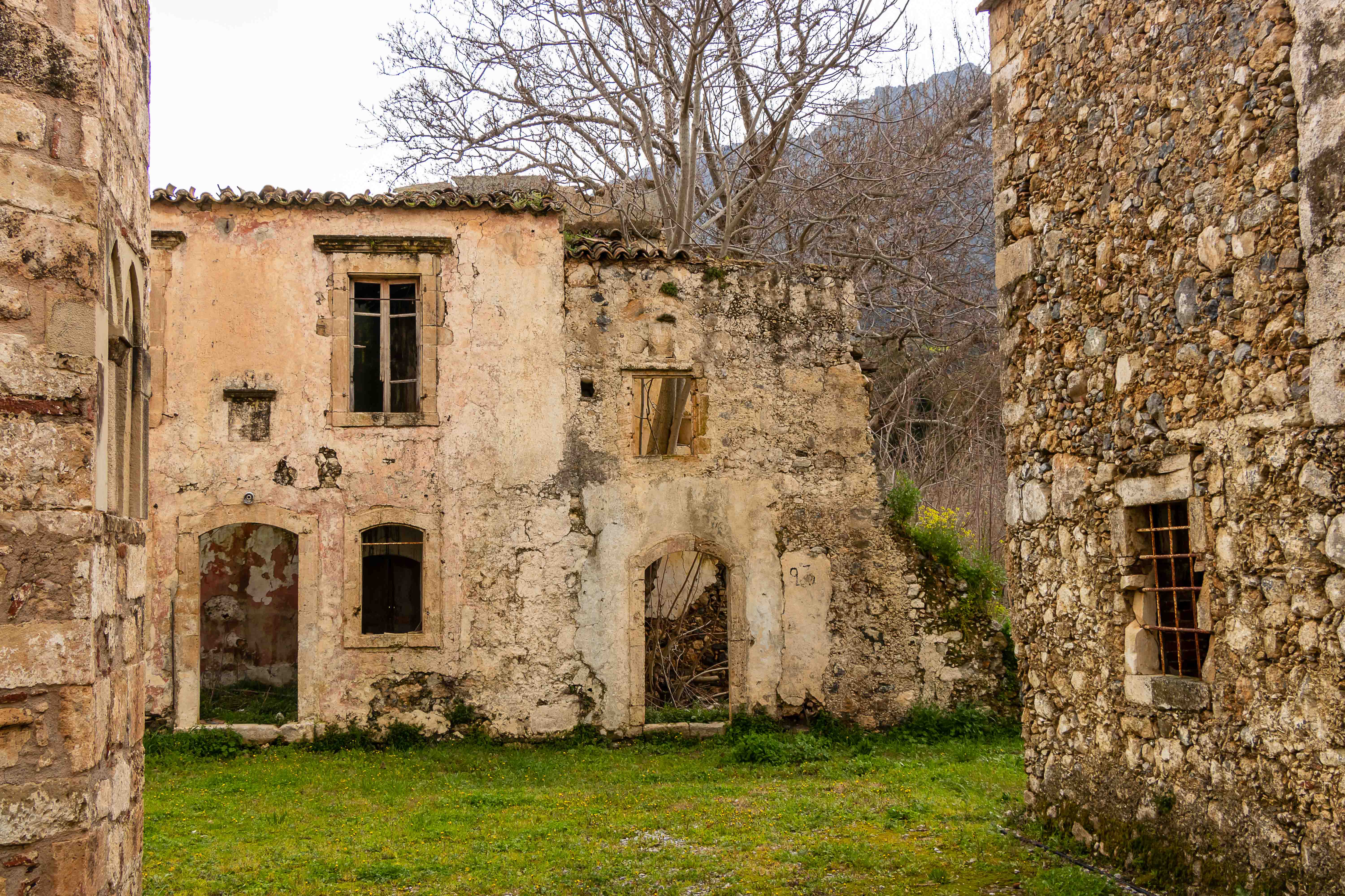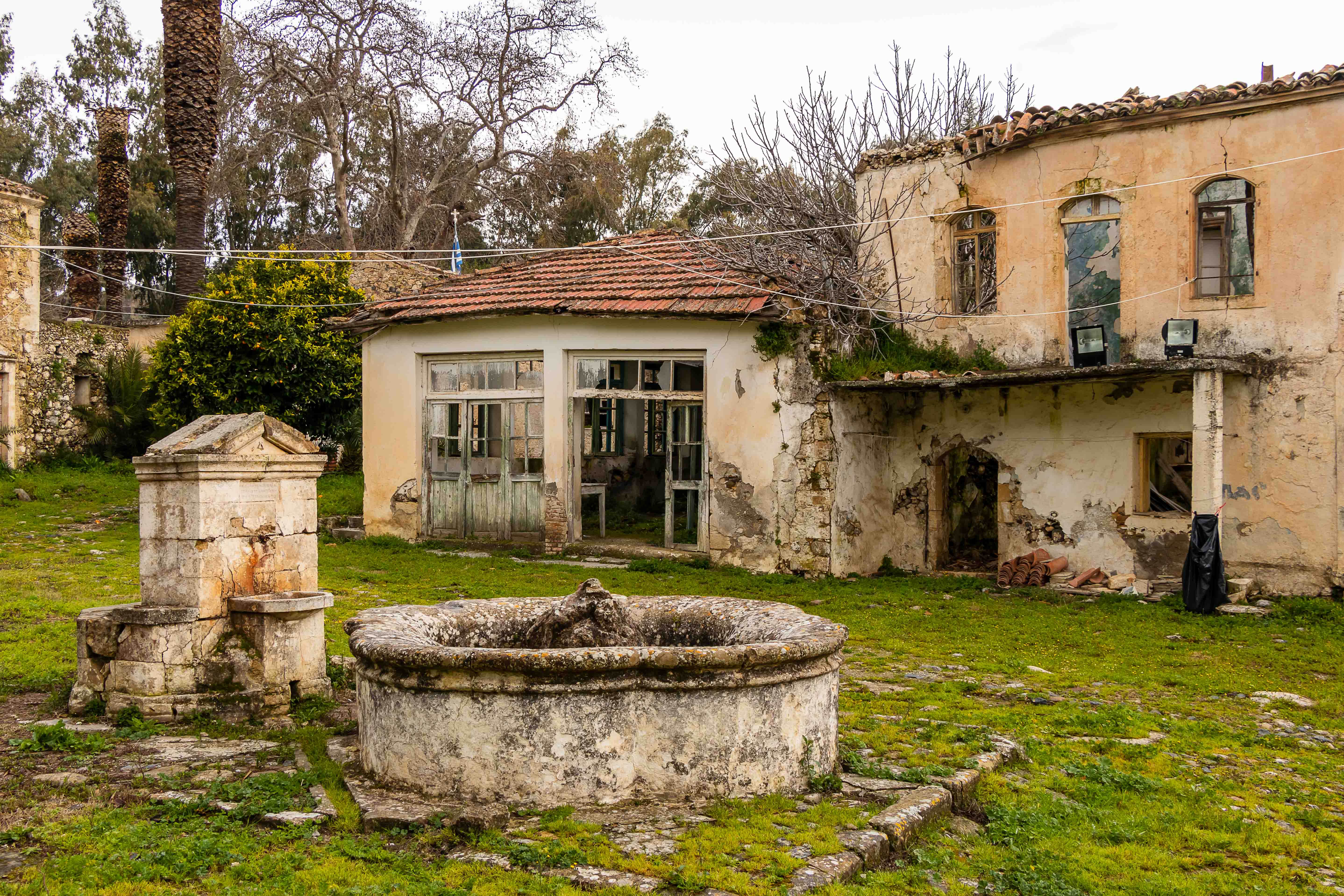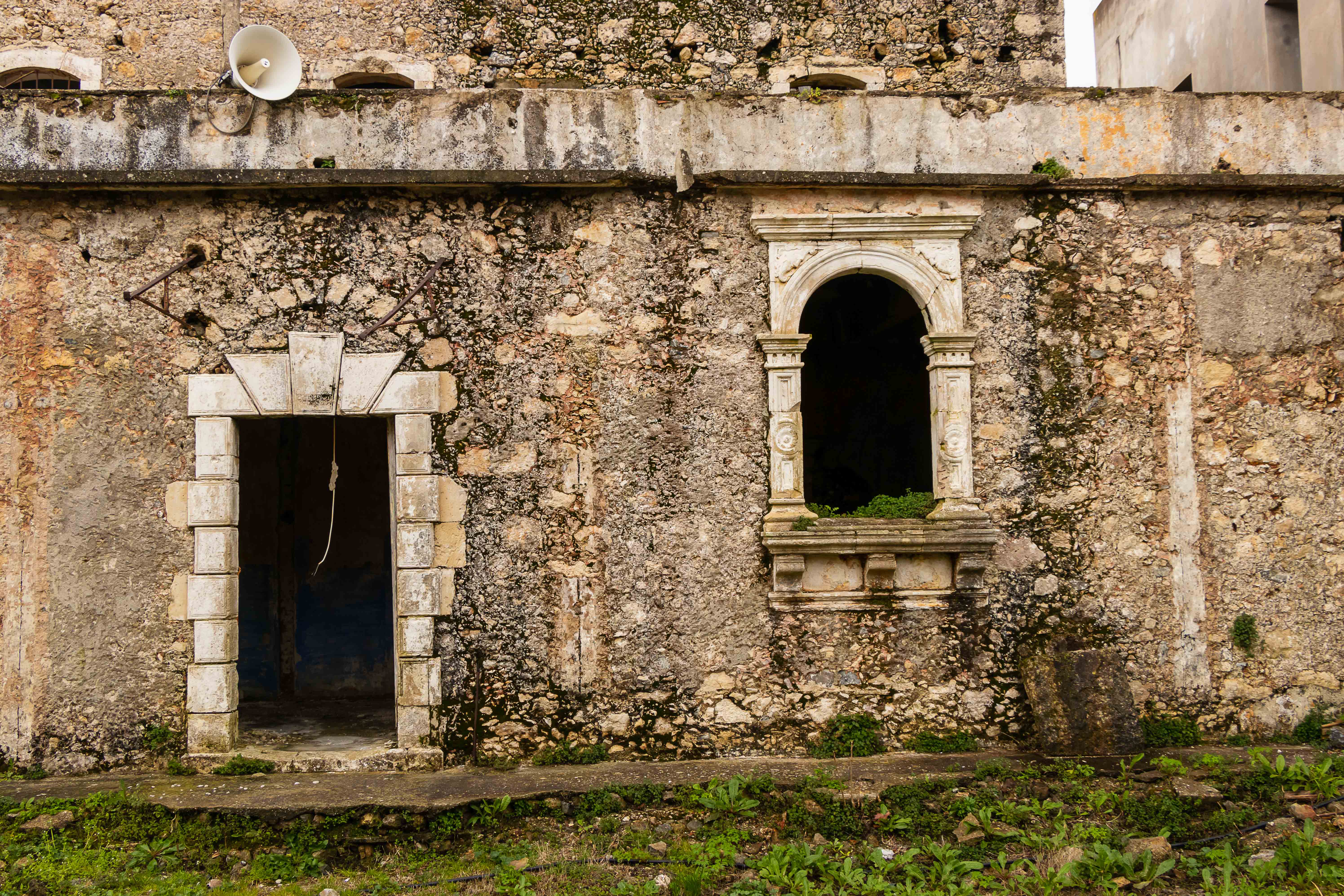 Nur ein paar Kilometer weiter stehen hinter einer Allee abgestorbener Palmen die verwahrlosten Ruinen des KLOSTERS ASOMÁTON. Seltsam muten die Betonwände eines unvollendeten Neubaus an.
