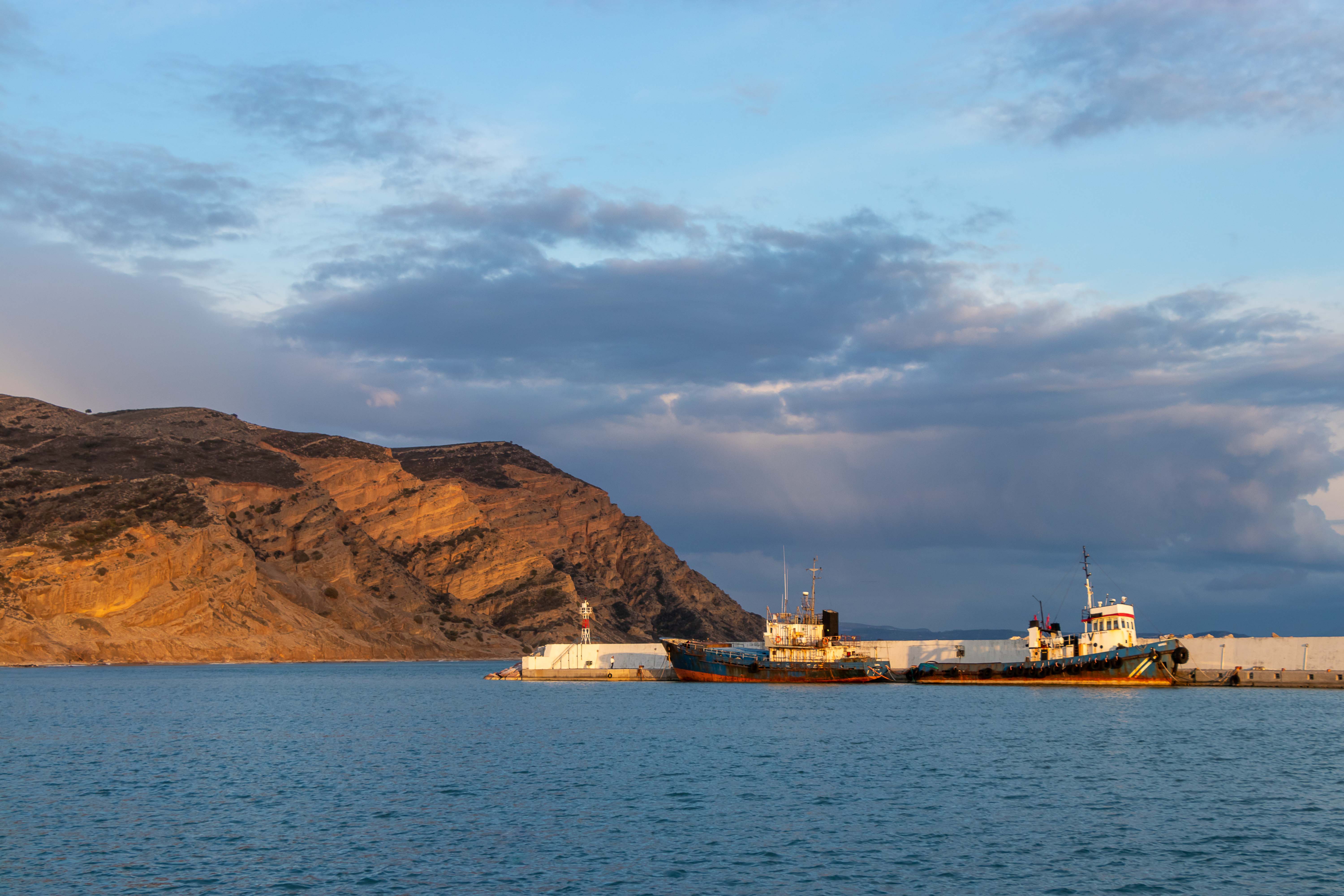 Bei herrlichstem Sonnenschein verlassen wir den schönen Strand von KOMITÁDES und fahren über die Küstenberge nur ein Stück weiter an die Promenade von PLAKIÁS. Wir haben uns entschieden, die nächsten sonnigen Tage noch zu genießen und den vorhergesagten Sturm mit Regen auf KRETA abzuwarten. Vielleicht fahren wir dann beim ersten ruhigeren Wetter zurück auf das Festland. Aber nun sitzen wir erst einmal an der weiten Bucht in der Sonne, die, wenn der Wind einmal aussetzt, schon richtig warm ist. Gerade richtig für uns, viel wärmer muss es gar nicht sein. Da der Wind aus Norden immer wieder einmal durchbricht, fahren wir für die Nacht in den windgeschützten kleinen Hafen.