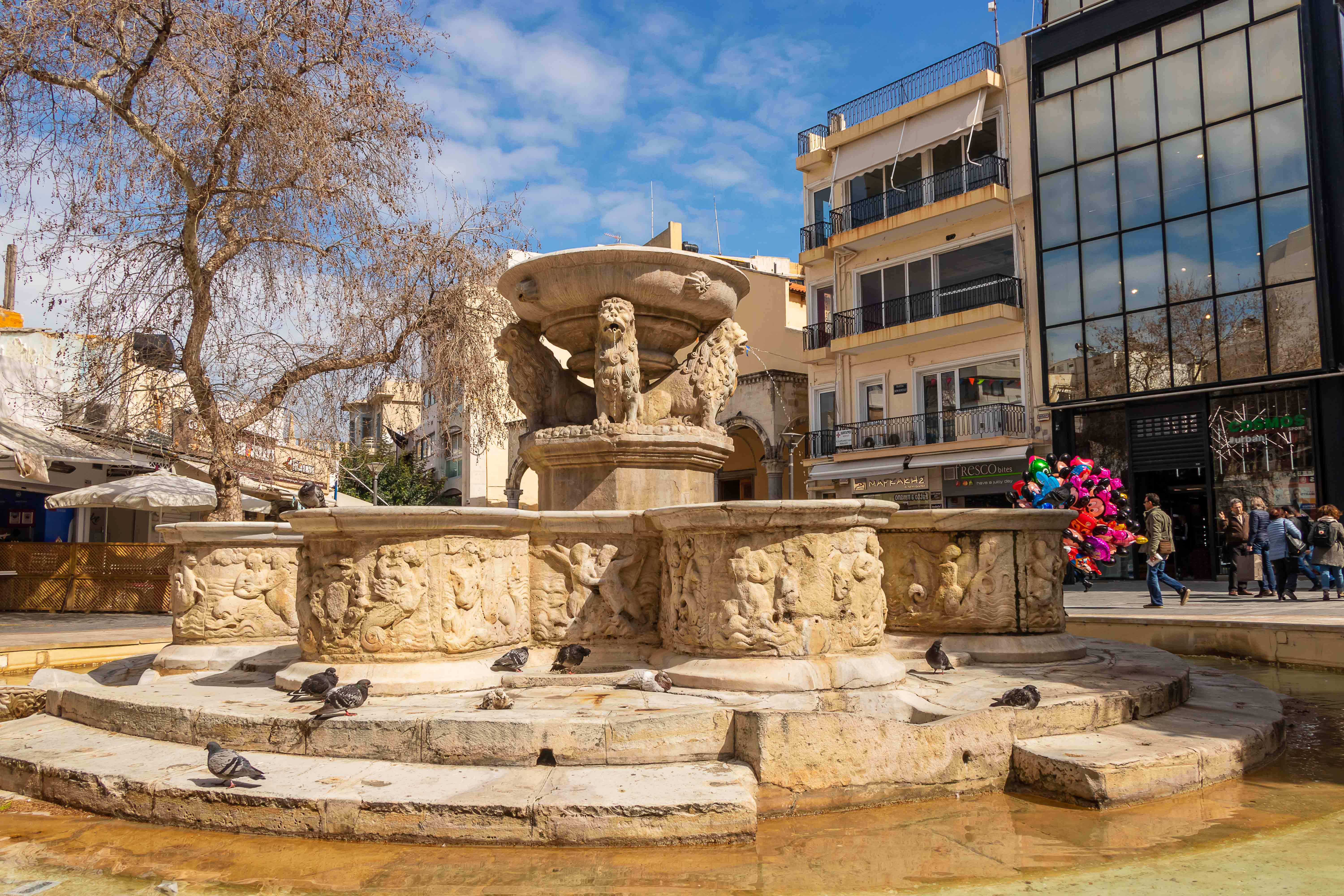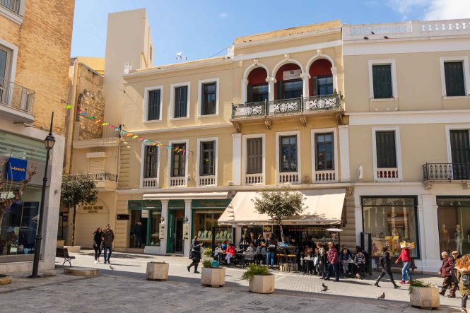 Zur Mittagszeit fahren wir in den neuen Hafen der kretischen Hauptstadt. Wir drehen eine Runde durch die Fußgängerzone von IRÁKLION. Einige venezianische Bauten sind noch erhalten, ansonsten dominieren die gesichtslosen Gebäude der Neuzeit.