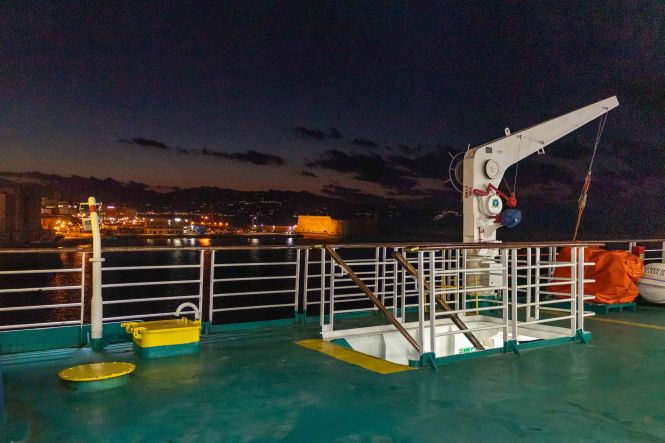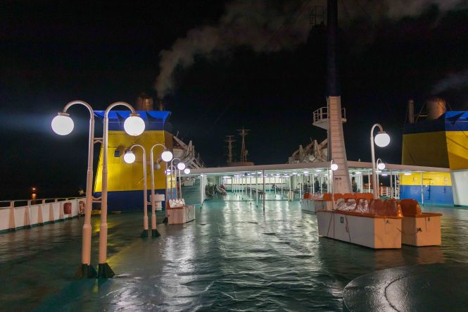 Mit dem letzten Licht fahren wir, eingewiesen von unaufgeregten Mitarbeitern, in den Bauch der Kriti II der ANEK LINES. Ein freundlicher Stewart bringt uns auf das Zimmer, wir genießen die geräumige Kabine mit den großen Betten, duschen ausgiebig und hoffen auf eine ruhige Überfahrt. Uns ist schon etwa wehmütig zu Mute: KRETA, die Insel der freundlichen und hilfsbereiten Menschen, der Winde, der Schluchten, der weiten und jetzt einsamen Strände, der unendlichen Olivenhaine und der riesigen Berge. Es war zwar der regenreichste und stürmischste Winter seit „Menschengedenken“, doch es gab auch sonnige und ruhige Tage. Immerhin war Peter bei herrlichstem Wetter gute zwei Dutzend Male auf kleineren und größeren Wanderungen unterwegs. Wir werden bestimmt irgendwann wieder kommen. Gerne auch im Winter, da haben wir diese grandiose Natur fast für uns alleine.
