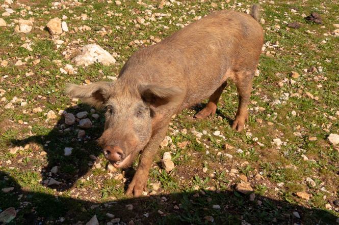 Bei ASTAKÓS finden wir für die Nacht einen fast ruhigen Strand. Nur ein Schweinepaar mit neun munteren Ferkeln besucht uns, jedes anders gemustert: rosa, schwarz, gescheckt und eines gestreift wie ein Frischling. Da haben sich wohl Wild- und Hausschwein gesucht und gefunden.