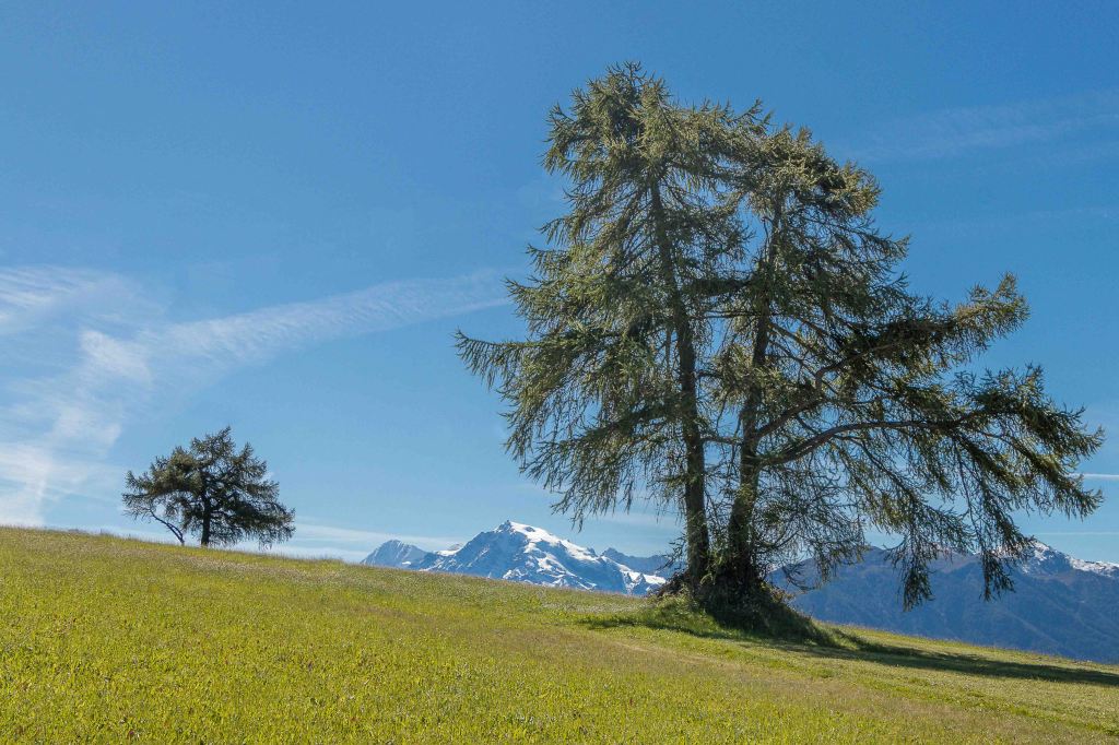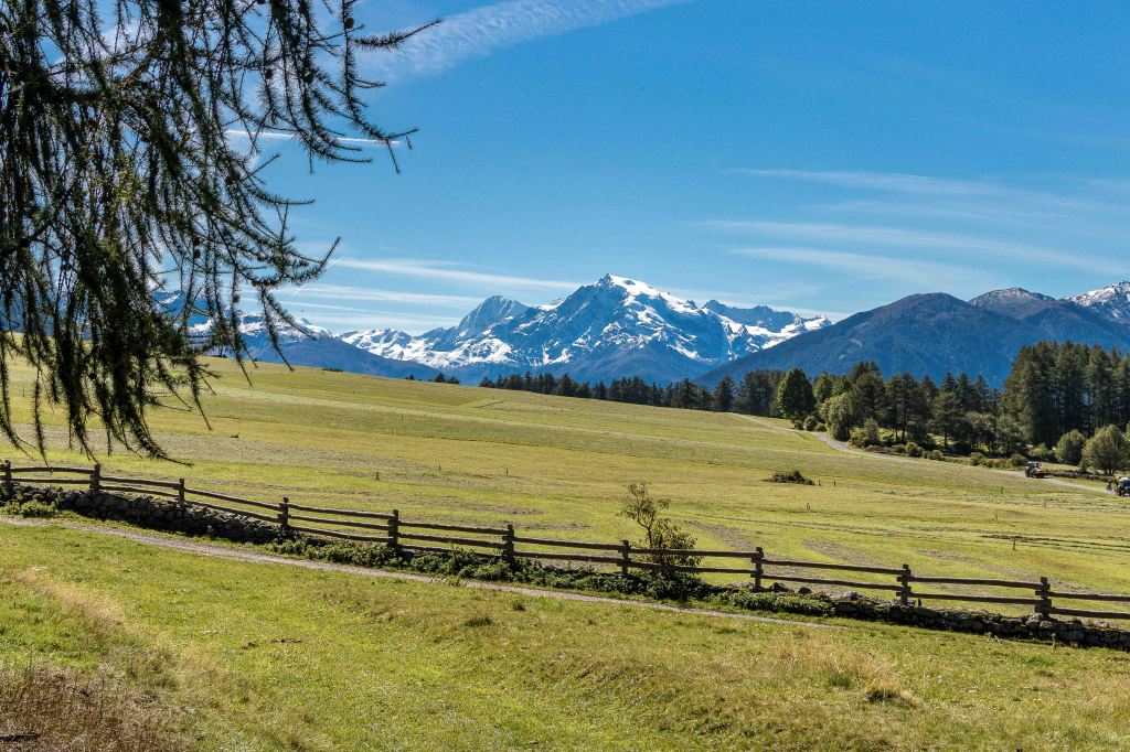 Hier ist es uns zu voll, die Wander- und Fahrradsaison zieht noch viele Urlauber an. So suchen wir unseren schon bekannten Übernachtungsplatz auf und genießen den Blick auf den frisch verschneiten majestätischen ORTLER. Die Bauern bringen den letzten kargen Grasschnitt nach Hause.