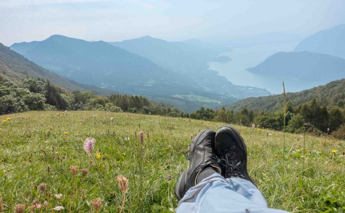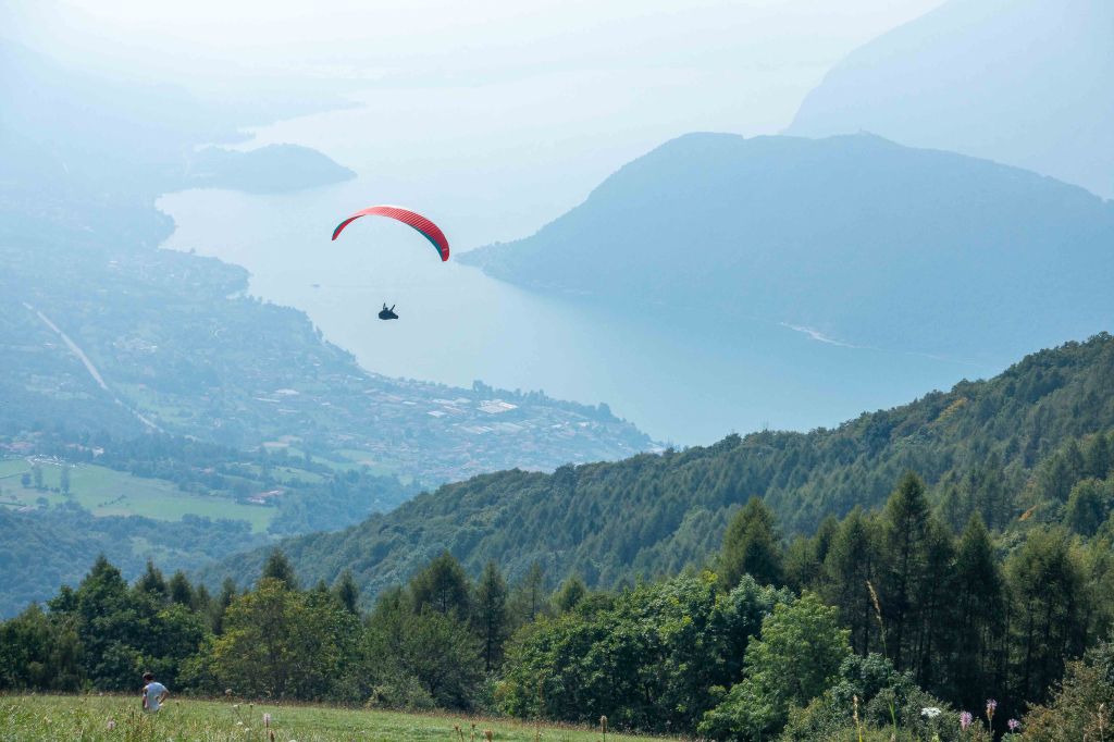 Nach der langen Fahrt über fünf Pässe, ein sechster folgte, erreichen wir den ISEOSEE. Nach dem Einkauf in PISIOGNE fahren wir gleich hinauf zur TRATTORIA PORTOLE. Sie liegt hoch über dem ISEOSEE, vor der Haustüre ist ein großer Landeplatz. Freudig begrüßen uns die Wirtsleute Gulia und Enzo, sind wir doch schon das vierte oder fünfte Mal hier. Das erste Mal, vor etwa zehn Jahren, durften wir im Garten im Zelt mit Blick auf den See und die Insel übernachten, waschen konnten wir uns in Gesellschaft des Hausschweins. Heute sperrt uns Enzo die Zufahrt zum Landeplatz auf. Peter läuft jeden Tag die 600 Höhenmeter hinauf zum Startplatz. Steil und schweißtreibend ist der Weg, doch die Flüge in dieser wunderbaren Landschaft entschädigen für die Anstrengung.