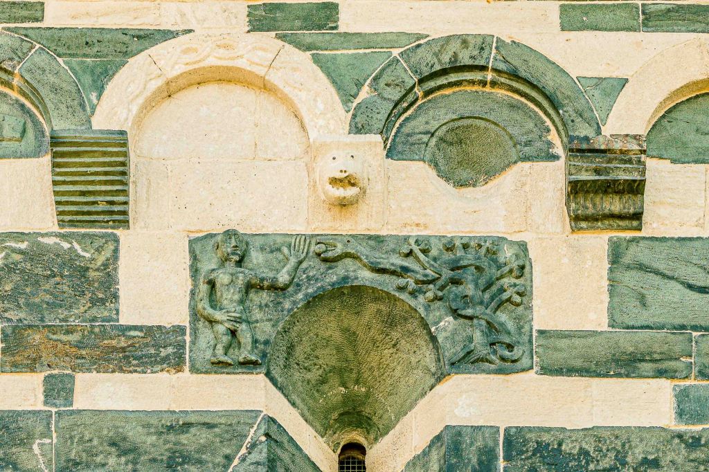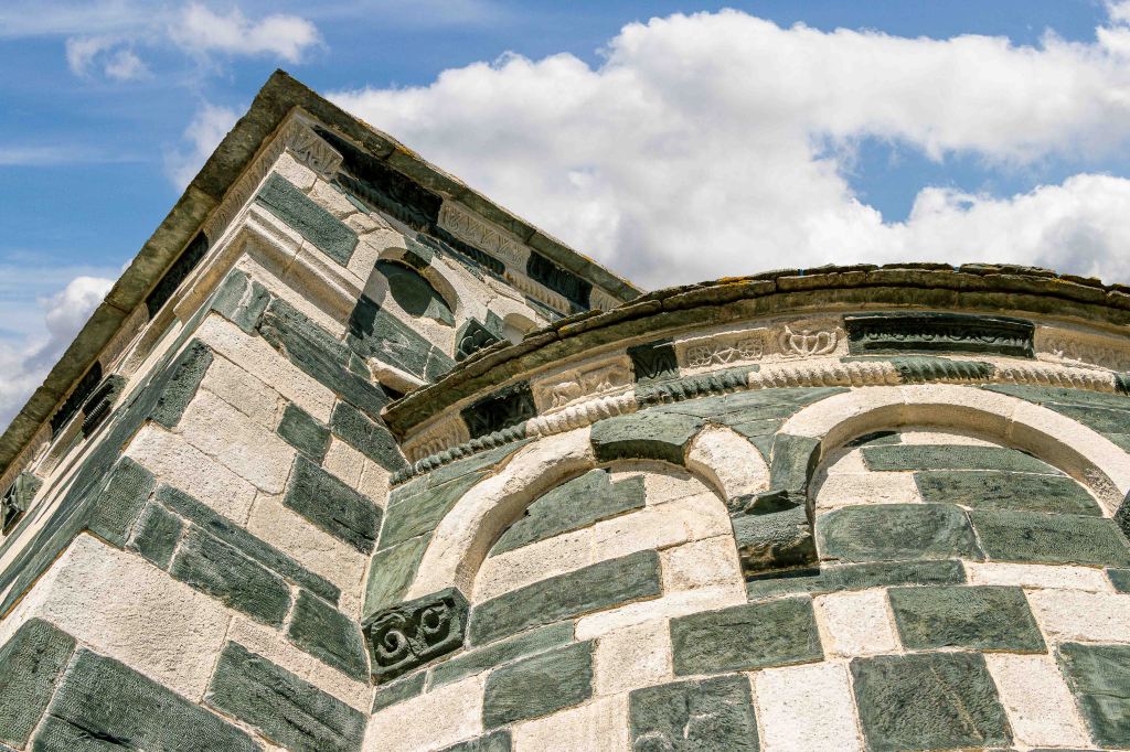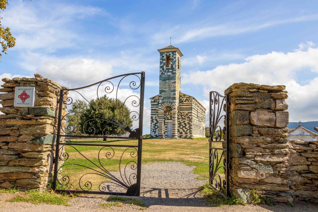 Ein Schmuckstück ist die frühromanische Kirche SAN MICHELE DE MUTATO aus dem Jahre 1280 n. Chr. Die Muster aus grünem Serpentin- und weißem Kalksteinblöcken sowie die vielen Skulpturen machen sie zu einem der schönsten Sakralbauten Korsikas. Wir vespern ausgiebig unter dem Schatten der ausladenden Platanen.
